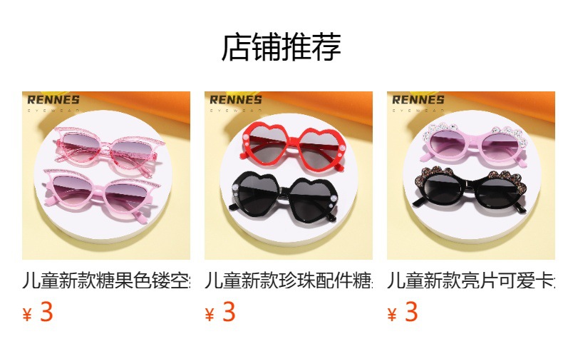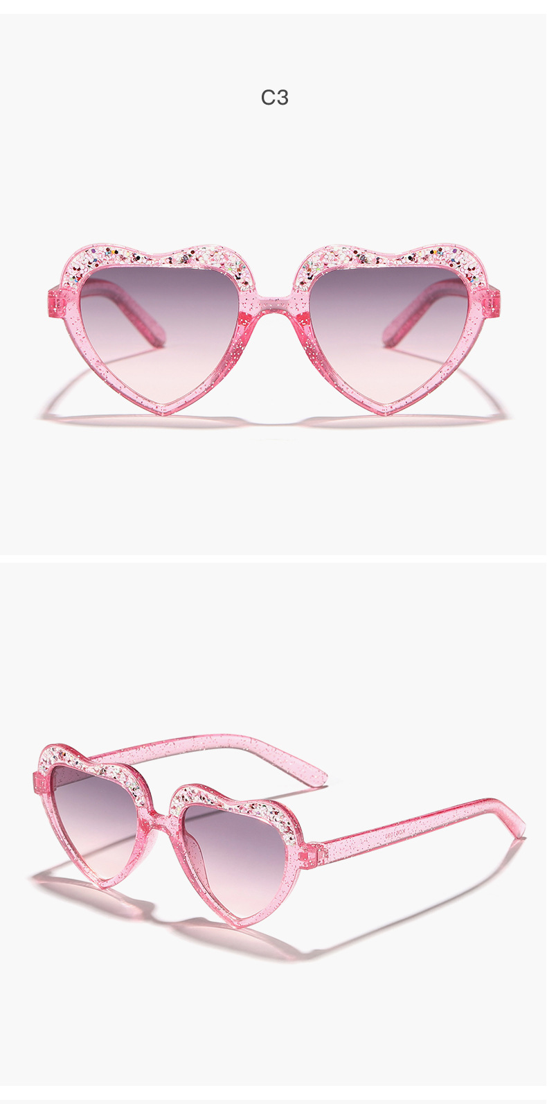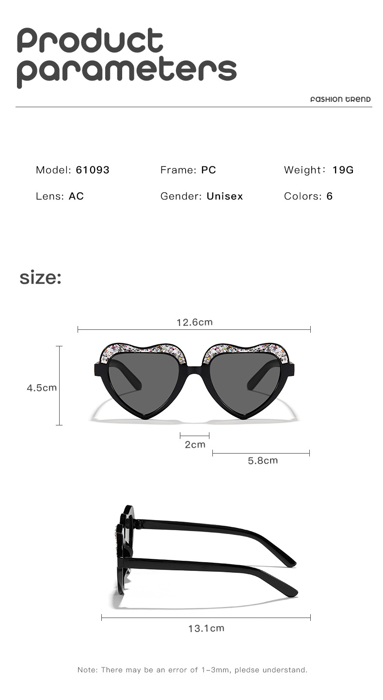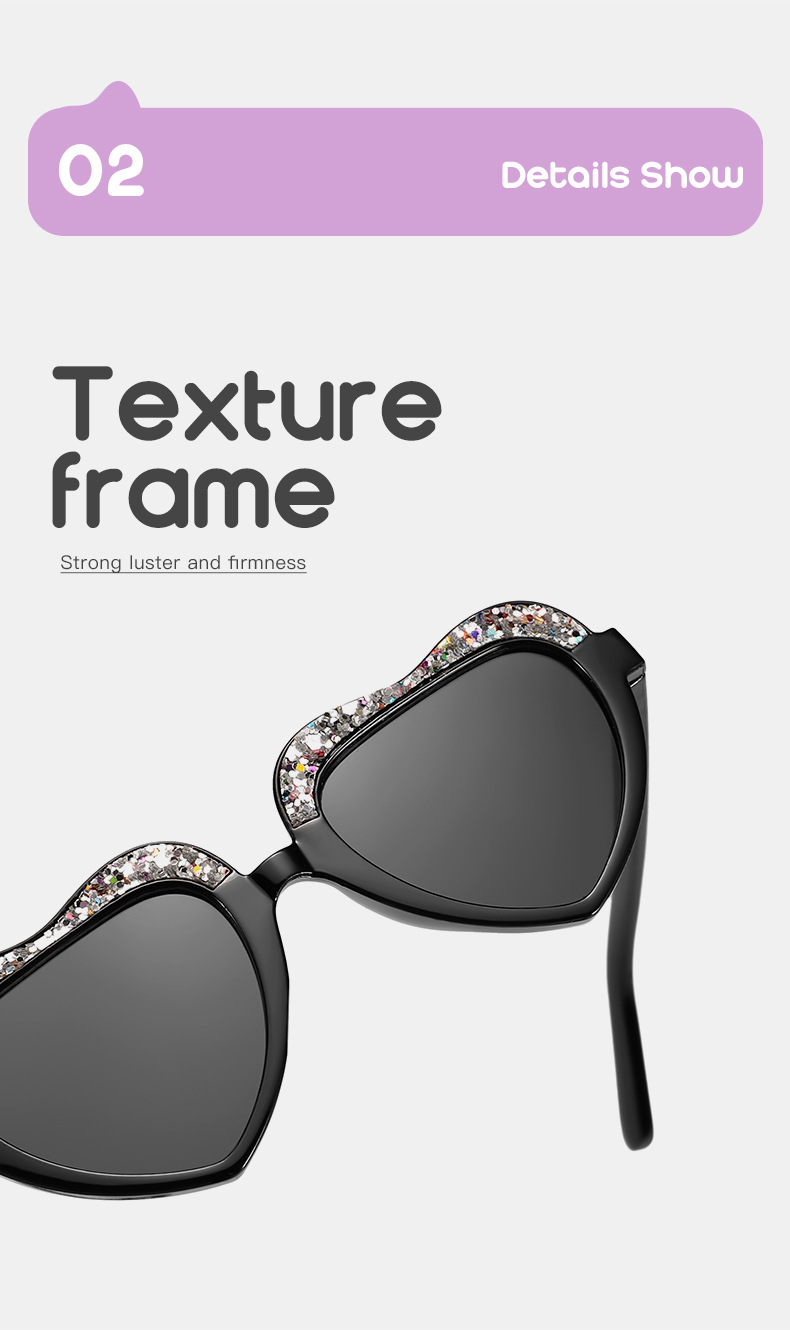 Nuevo estilo para niños, color caramelo fino, marco de amor, gafas de sol para exteriores, gafas de sol para niños y niñas, decoración de escenario personalizada, gafas de sol