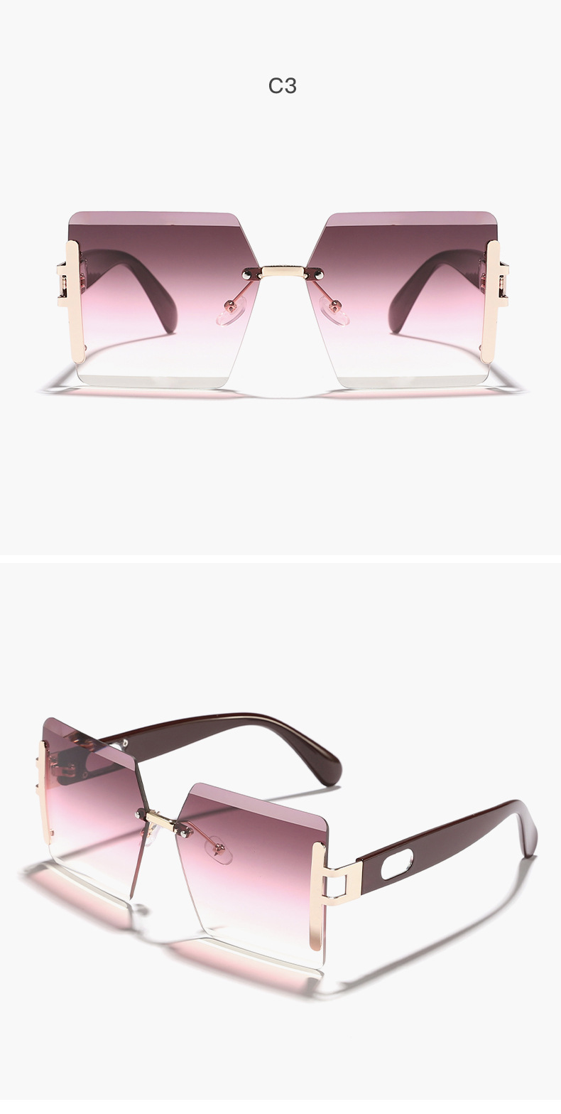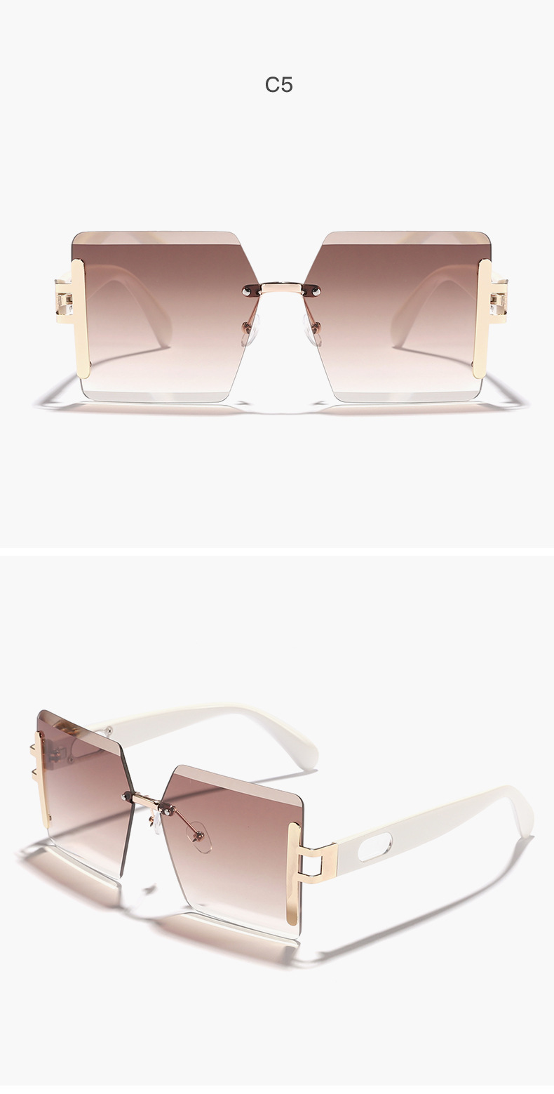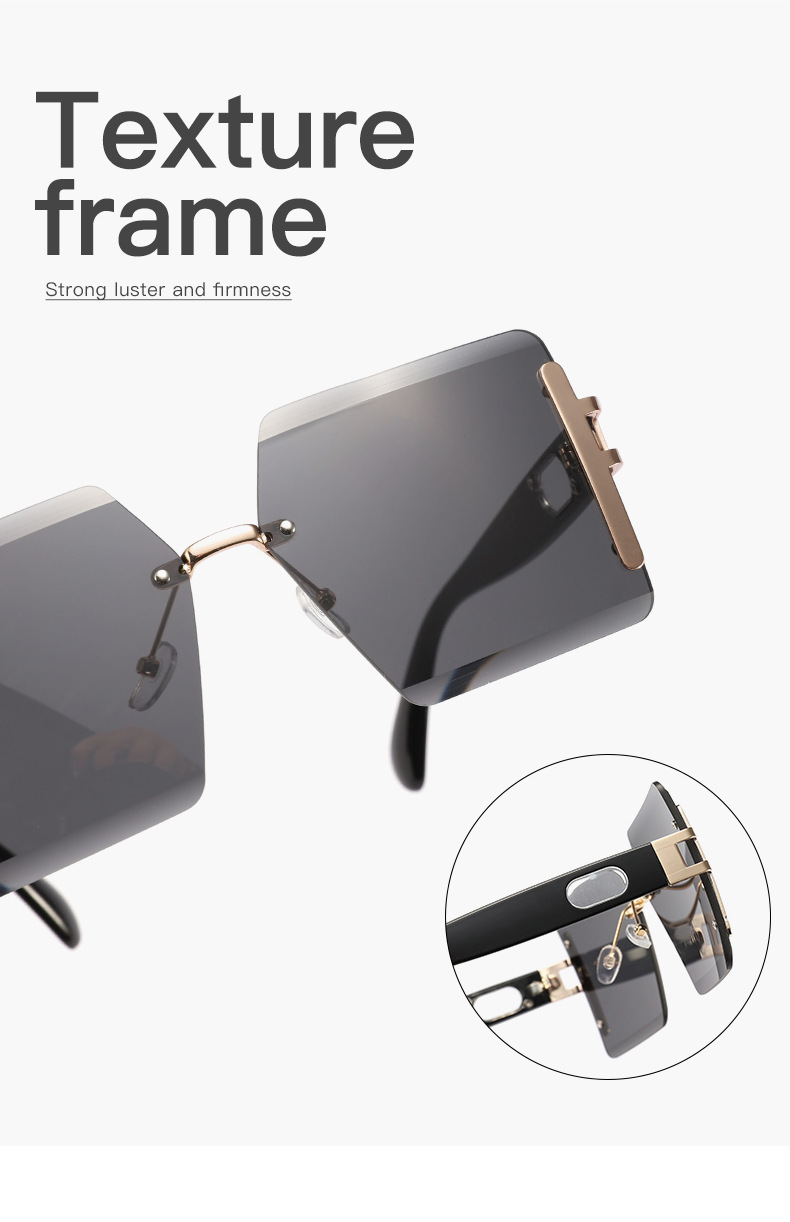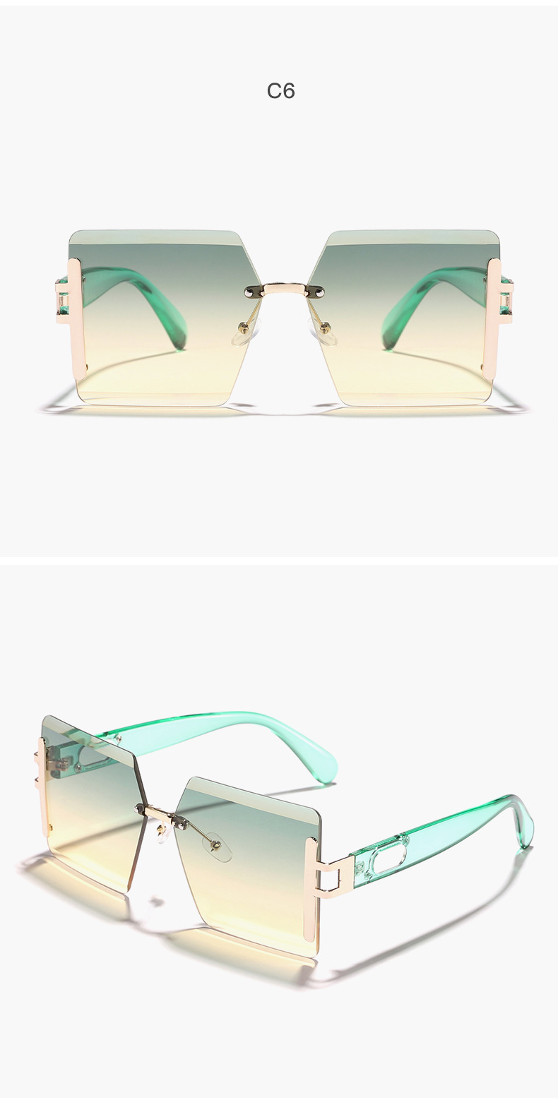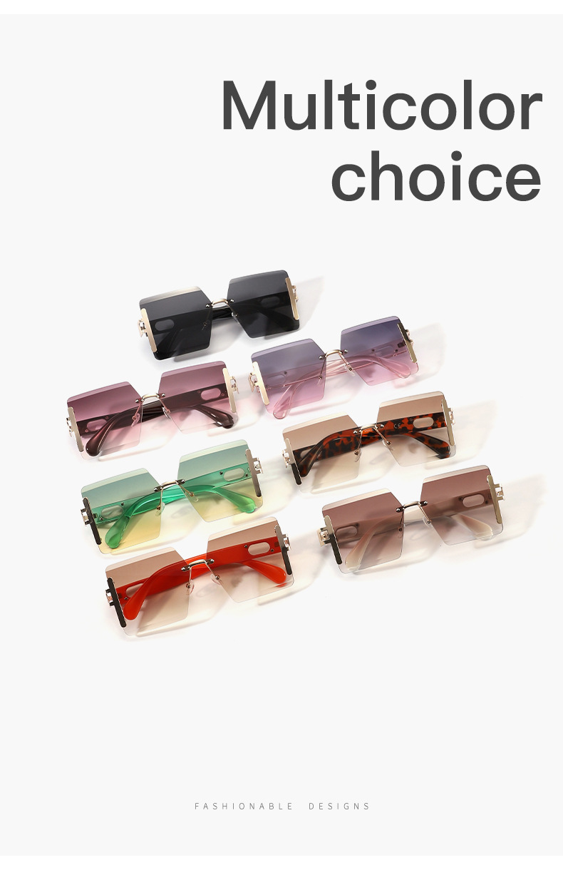 Nuevas gafas de sol cuadradas sin marco multicolores transfronterizas, gafas de sol de protección solar de pasarela de lujo ligero europeo y americano para mujeres Sunglasses