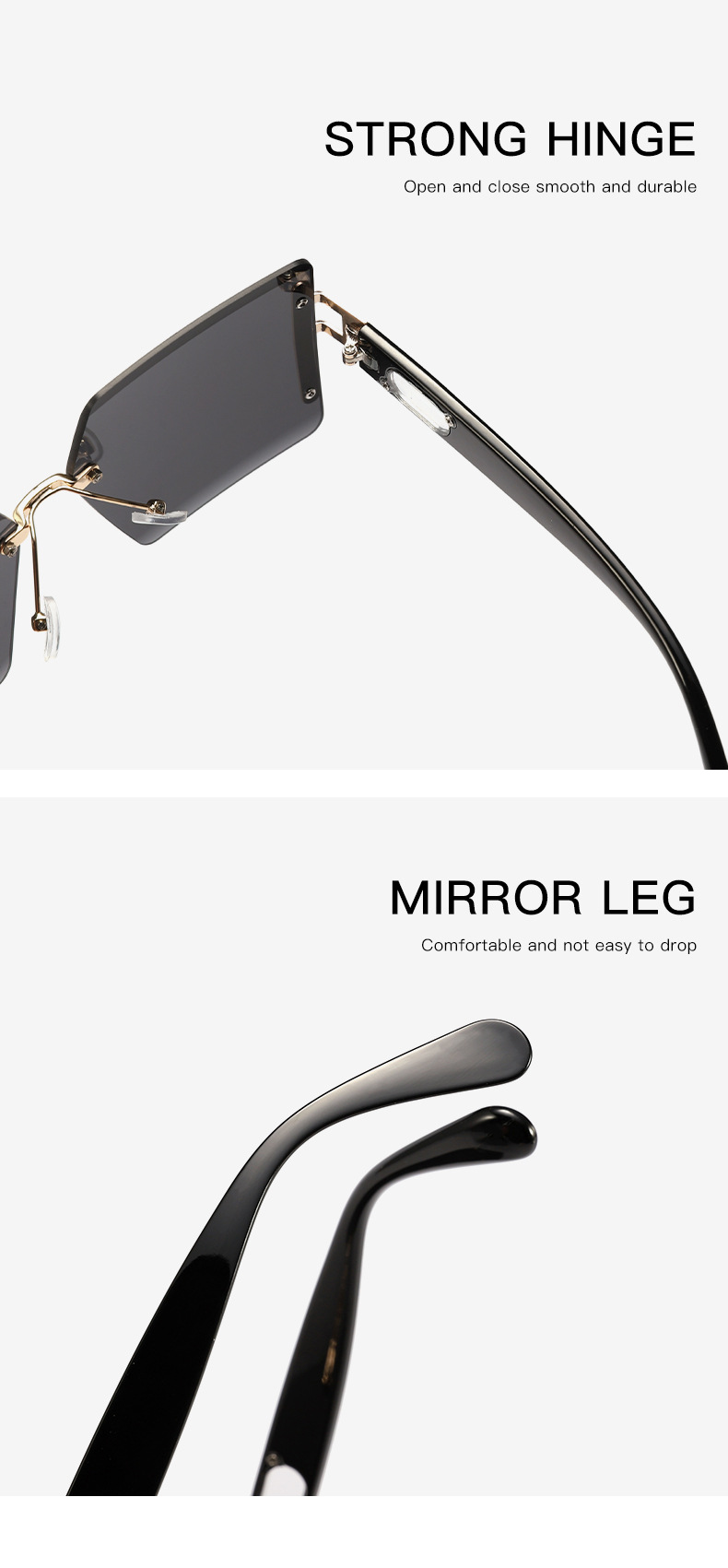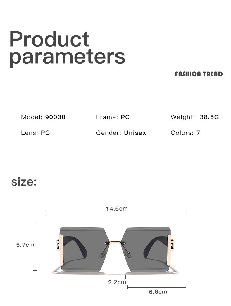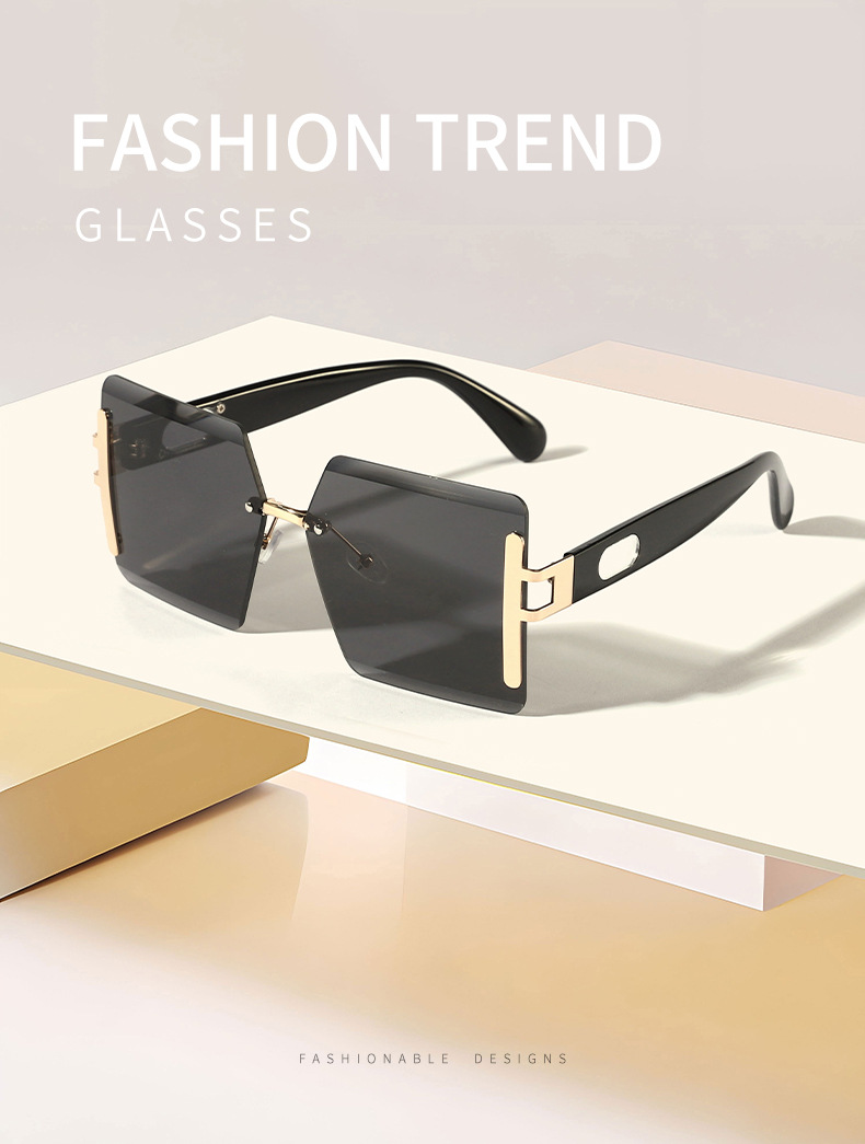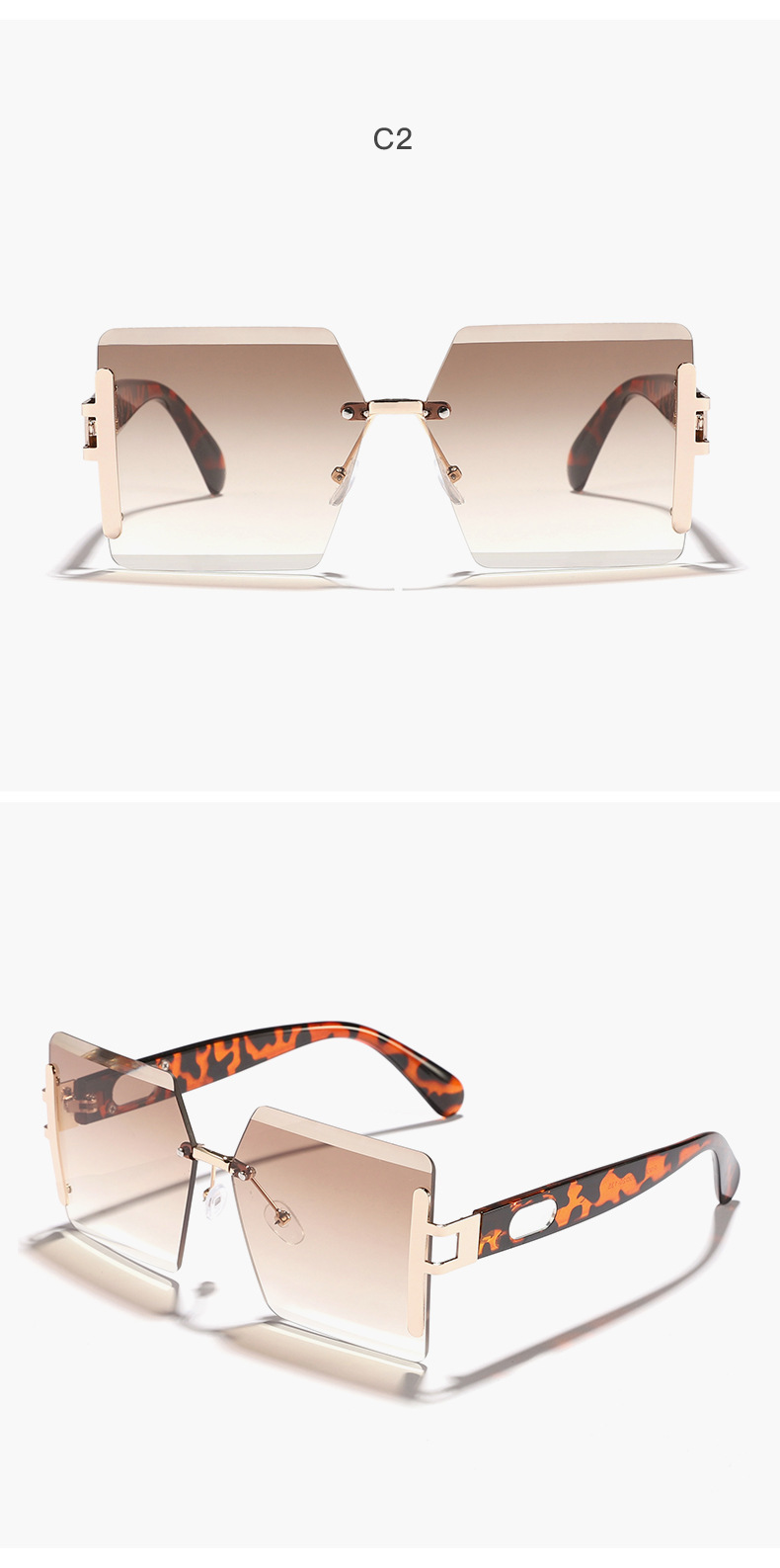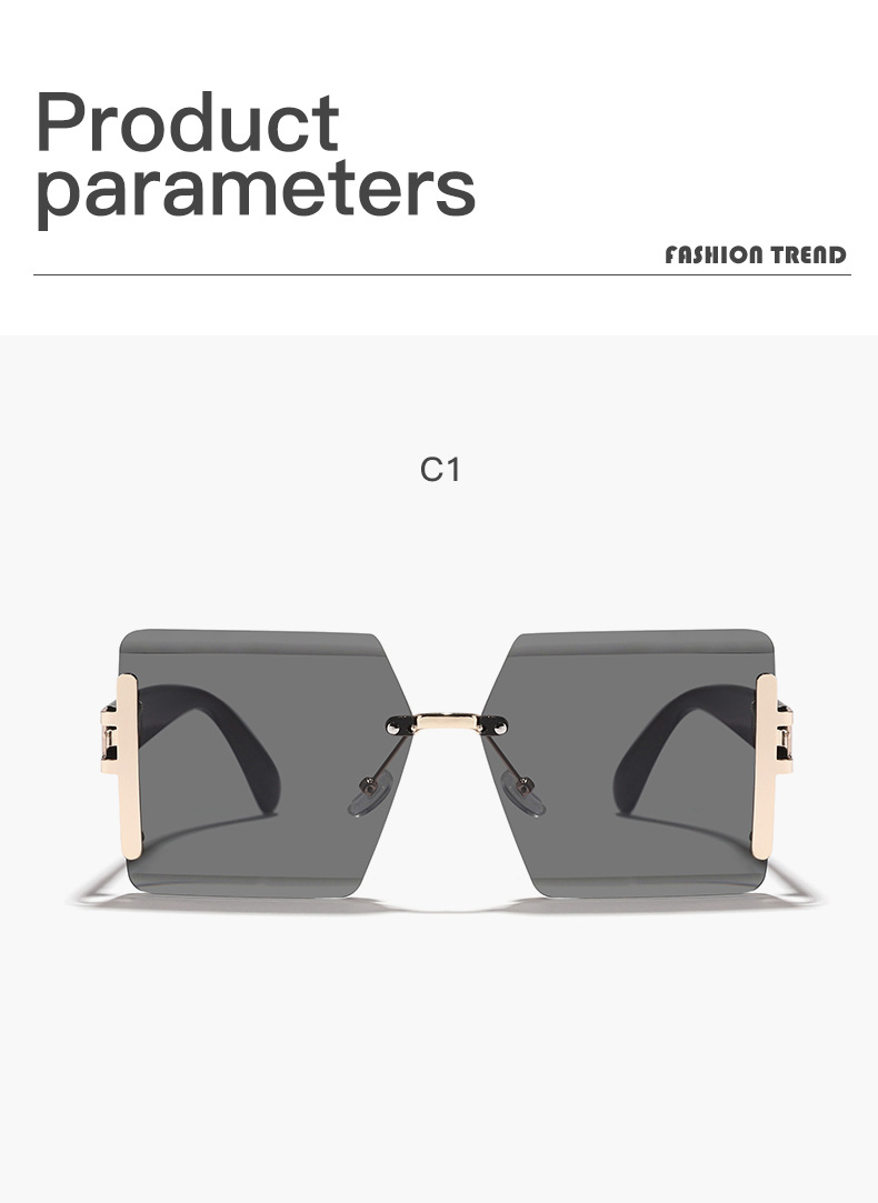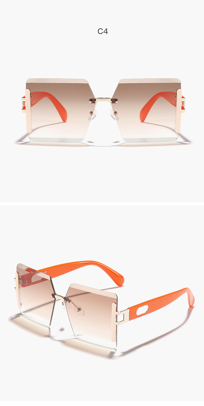 Nuevas gafas de sol cuadradas sin marco multicolores transfronterizas, gafas de sol de protección solar de pasarela de lujo ligero europeo y americano para mujeres Sunglasses