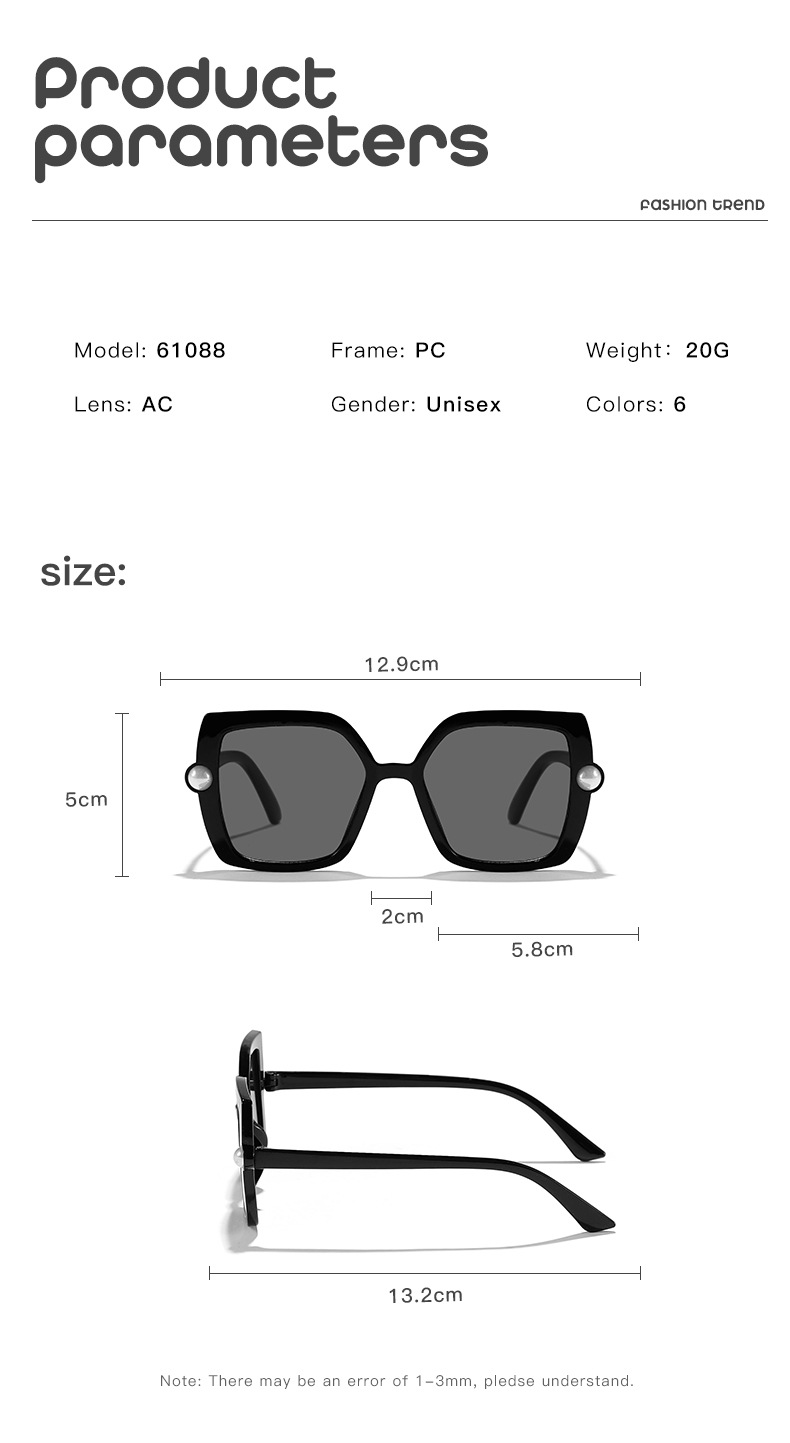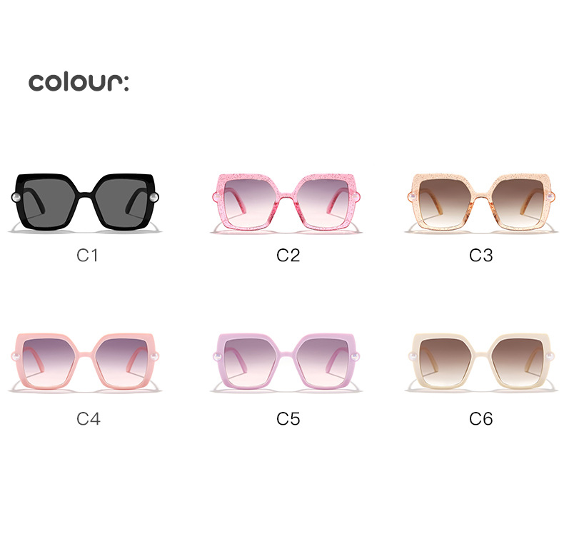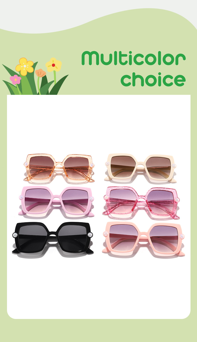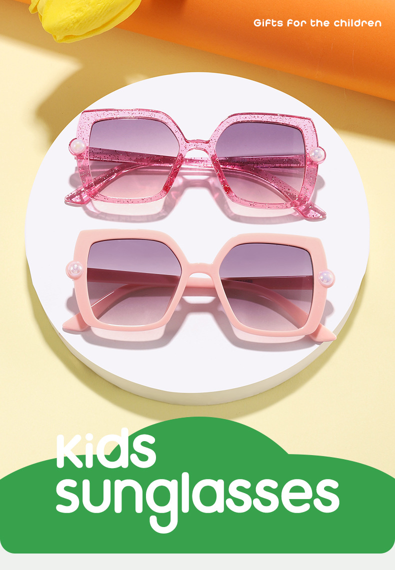 Nuevos accesorios de perlas transfronterizos para niños Gafas de sol para exteriores cuadradas de color caramelo Gafas de sol de tiro callejero para bebés lindos