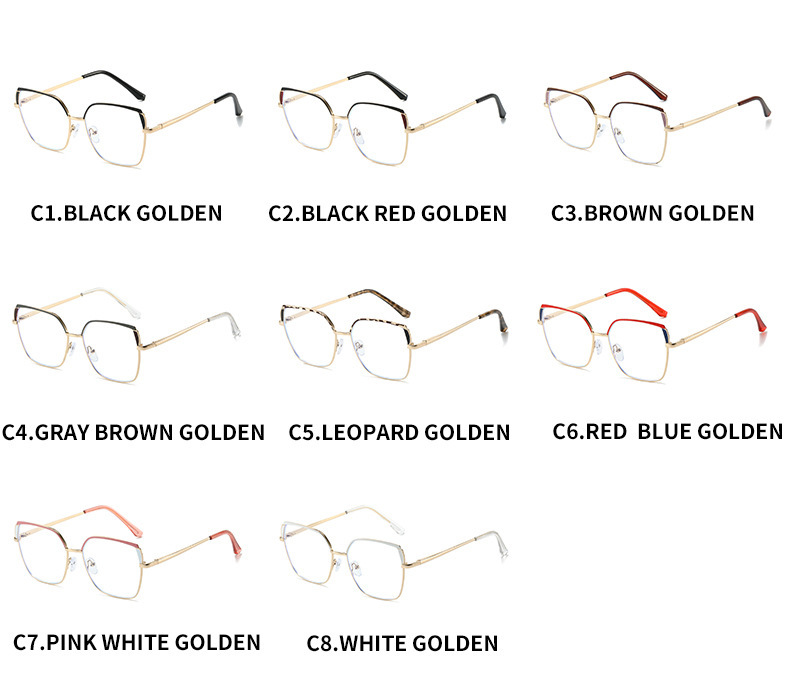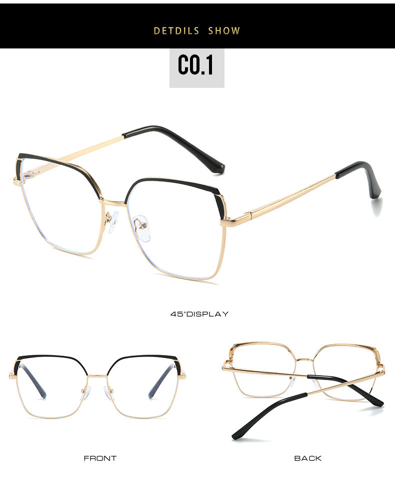Gran marco cuadrado espejo llano metal anti-Luz Azul 2023 nueva cara llana europea y americana se puede equipar con gafas de miopía marco color a juego moda