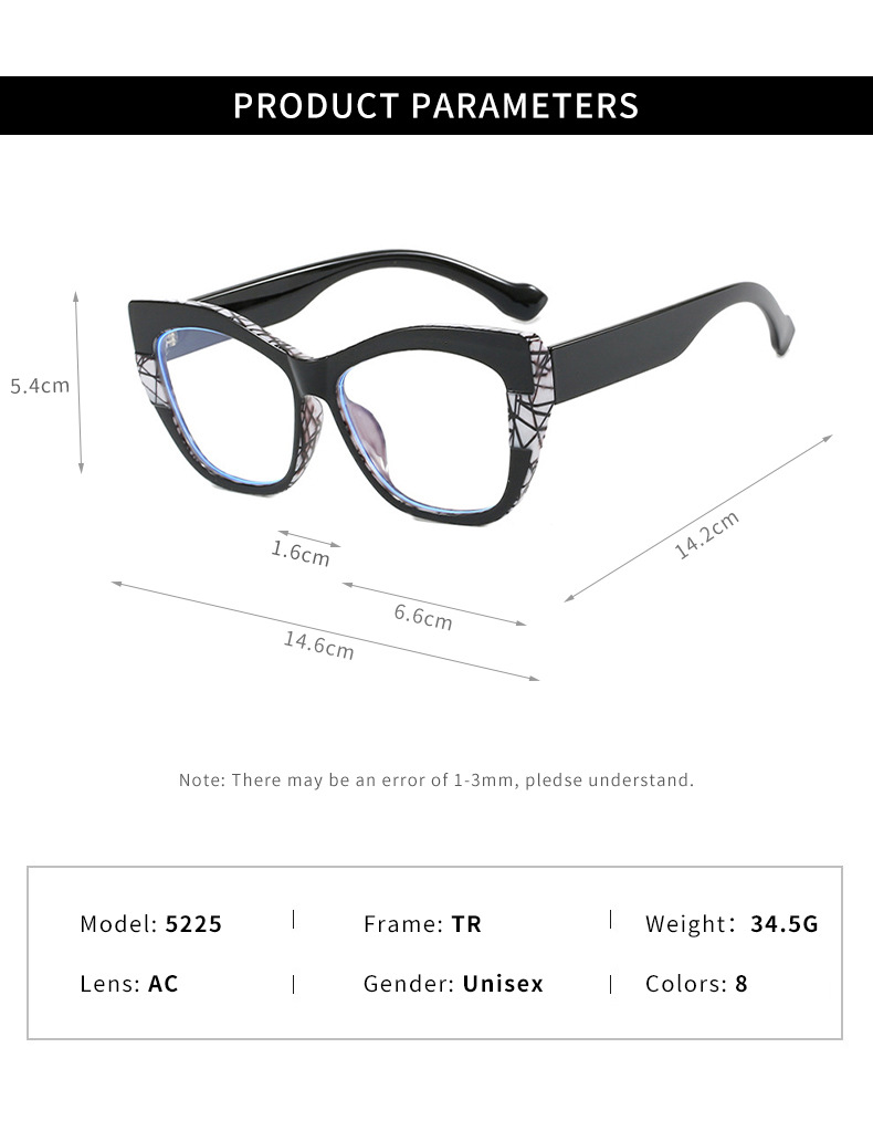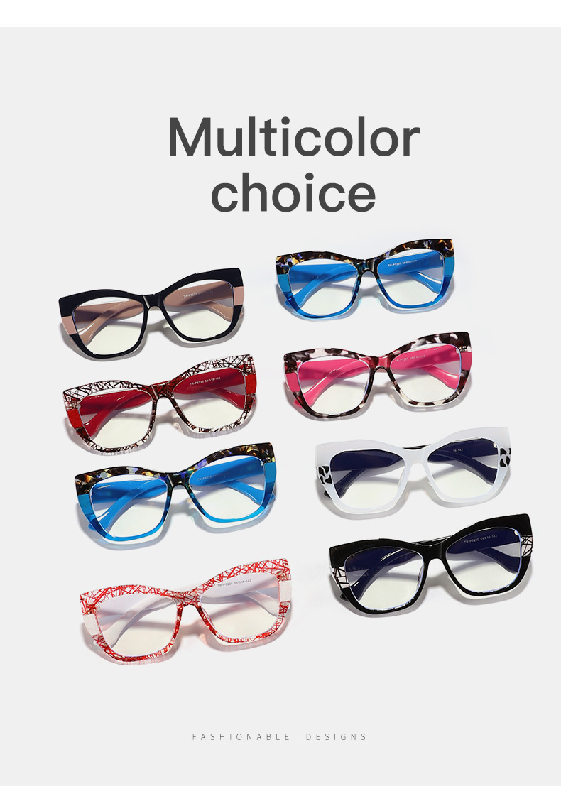 Nuevo TR90 Premium Sense Hit Color Pack Flower Sin maquillaje Gafas anti-luz azul Gafas europeas y americanas con montura grande de ojo de gato con montura de miopía