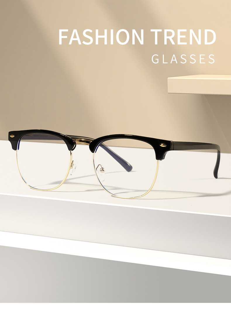 Gafas a prueba de luz azul de estilo empresarial de caja simple transfronteriza para hombres y mujeres, gafas de montura de miopía para estudiantes de metal