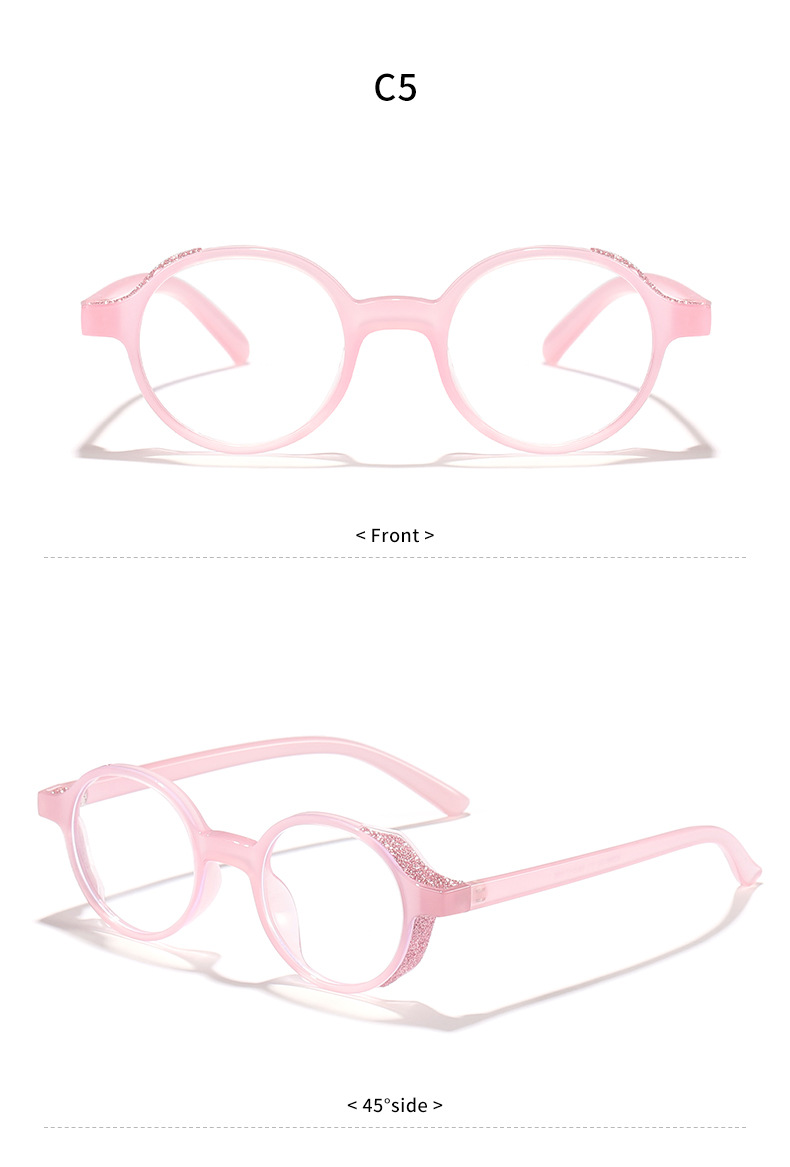 Nuevo estilo de campus transfronterizo, brillo fino, color caramelo, marco redondo, espejo plano anti-luz azul, gafas de marco de miopía para estudiantes masculinos y femeninos