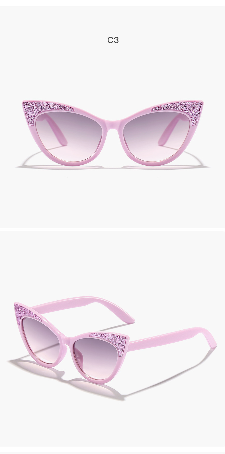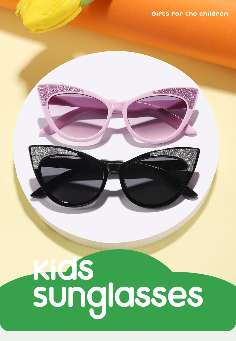 Nuevas gafas de sol de orejas de gato finas y brillantes para niños transfronterizos, color caramelo, gafas de sol al aire libre para bebés lindos