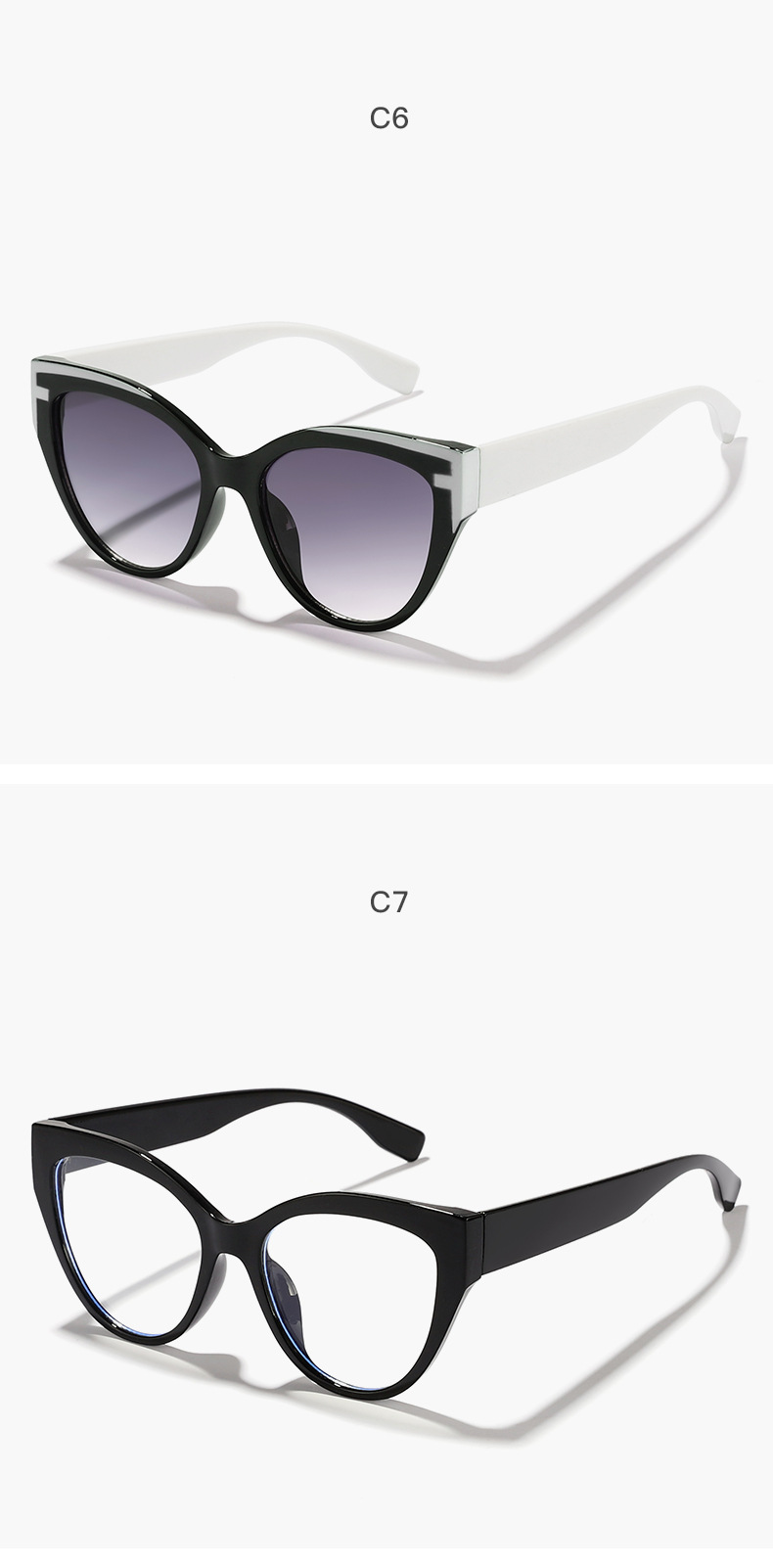 2024 nuevas gafas de sol de color de contraste bohemio de ojo de gato al aire libre gafas anti-azul de moda de estilo americano
