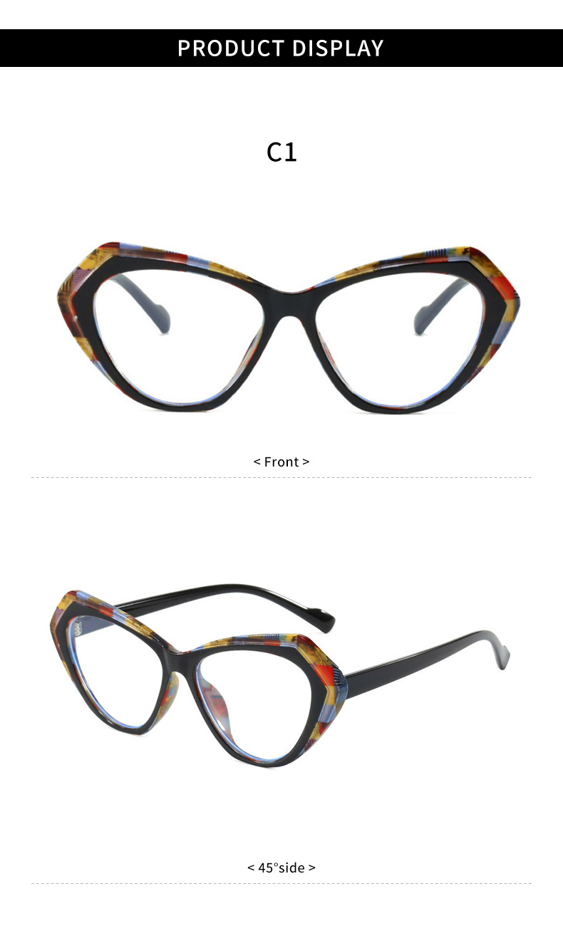 Nuevo ojo de gato irregular a juego de colores europeo y americano espejo plano anti-luz azul TR90 gafas de marco de miopía sin maquillaje