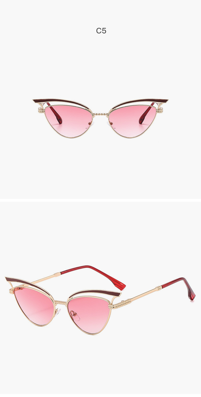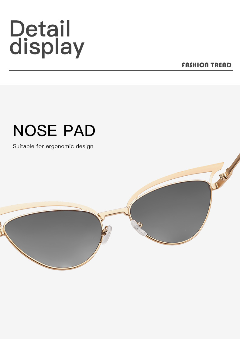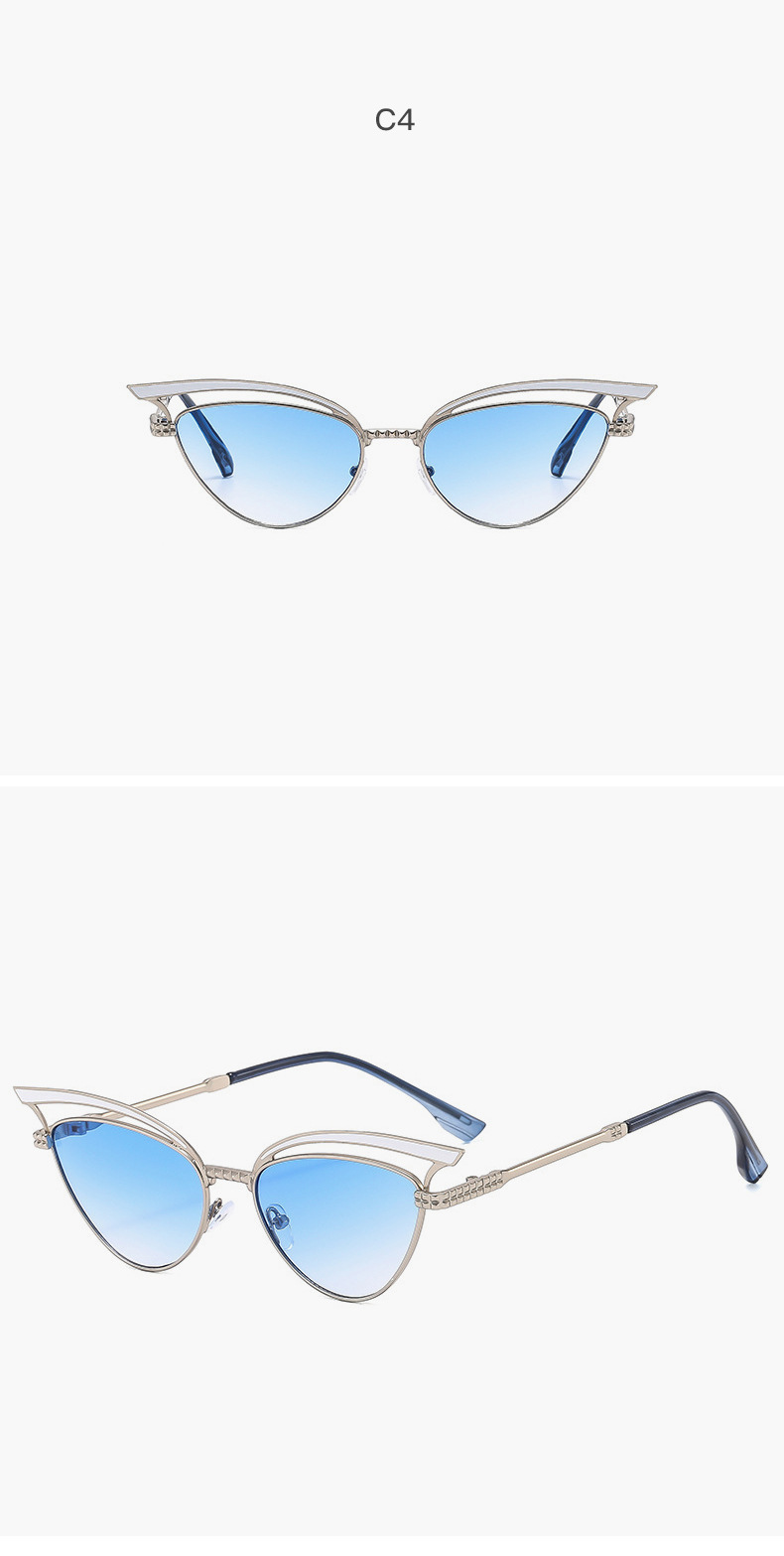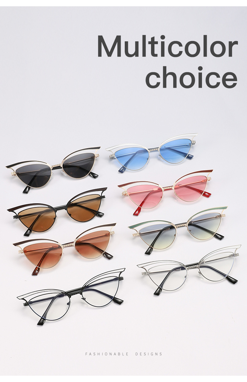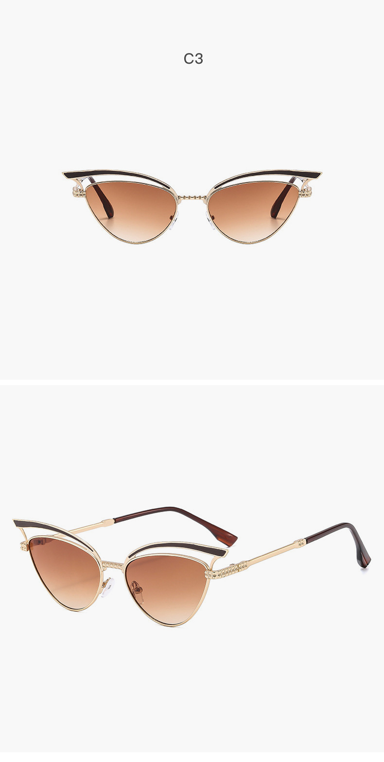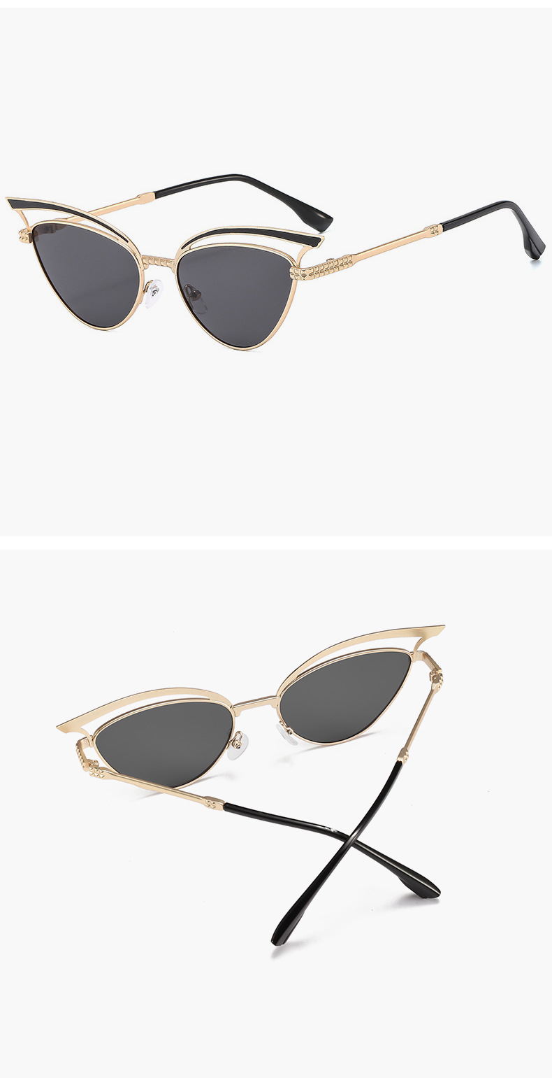 2024 nuevas gafas de sol de ojo de gato huecas de metal personalizadas, el mismo estilo, gafas de sol para exteriores esenciales de forma cóncava