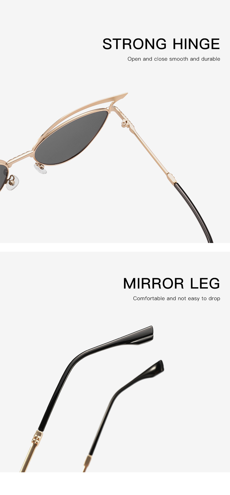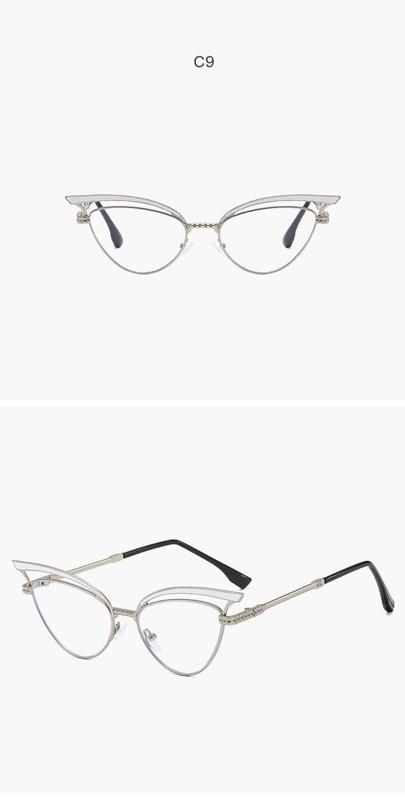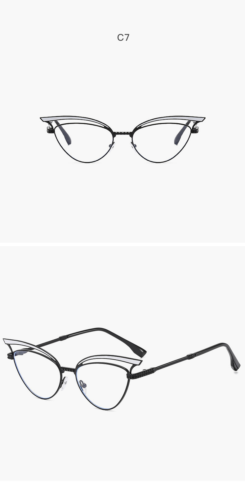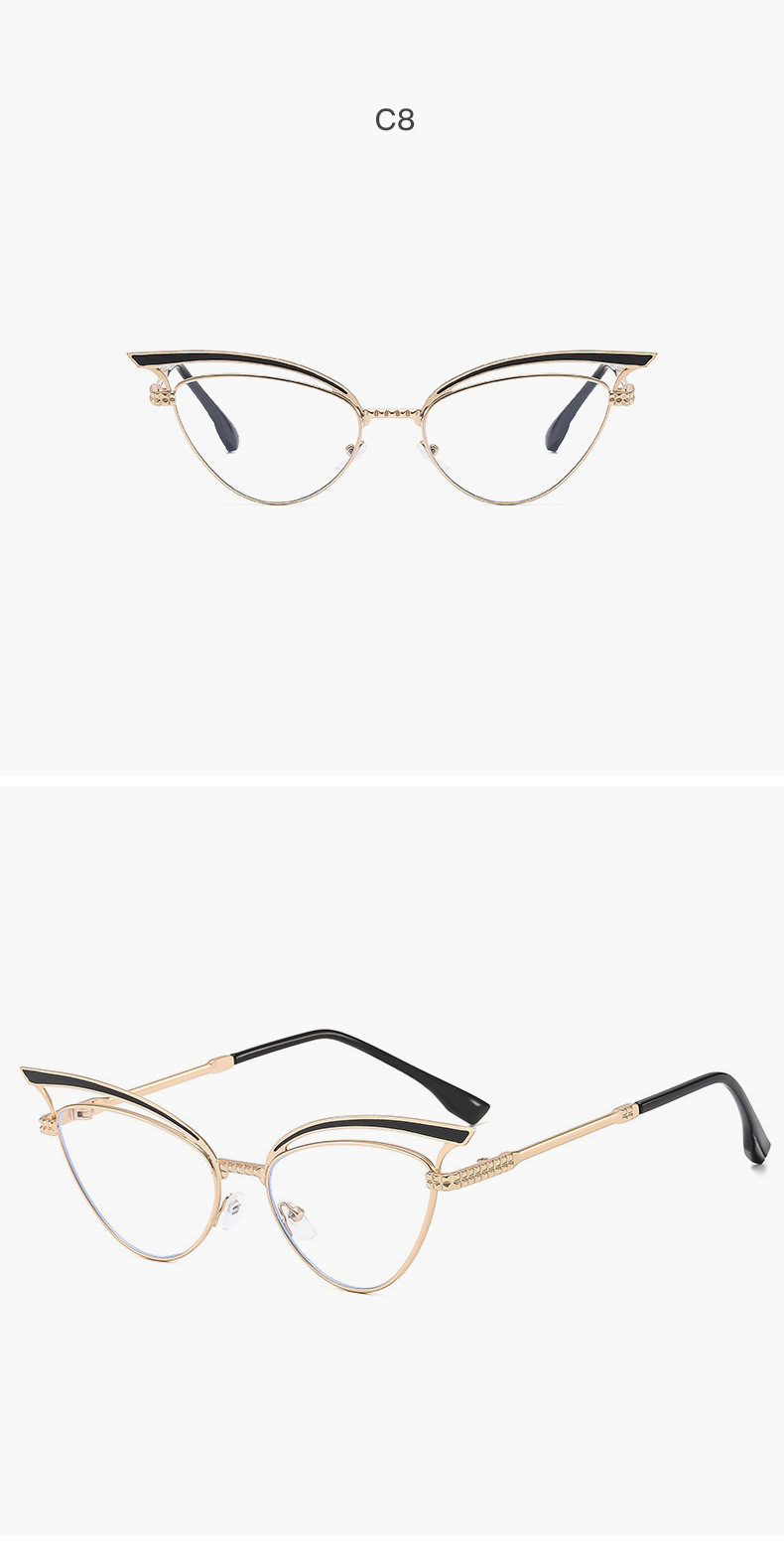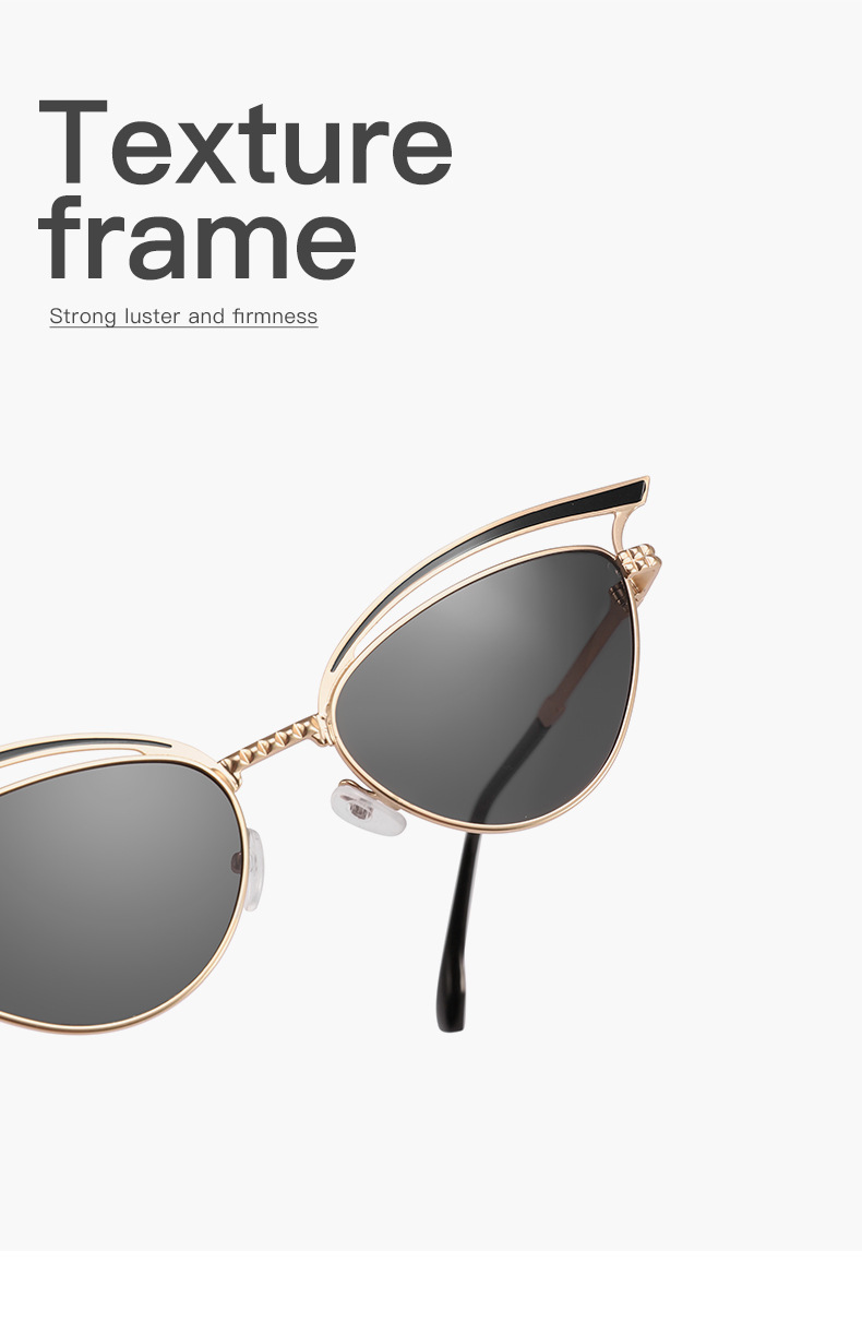 2024 nuevas gafas de sol de ojo de gato huecas de metal personalizadas, el mismo estilo, gafas de sol para exteriores esenciales de forma cóncava