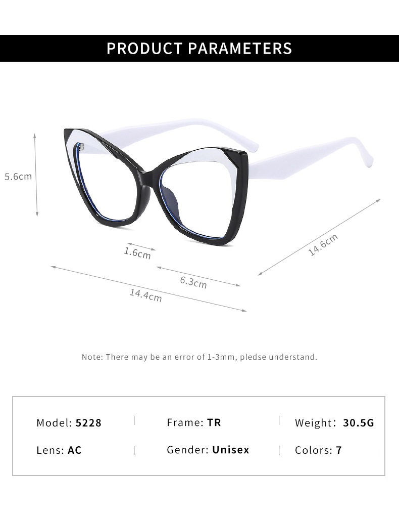 Nuevo troncal TR90 retro color en contraste ojo de gato espejo plano anti-luz azul