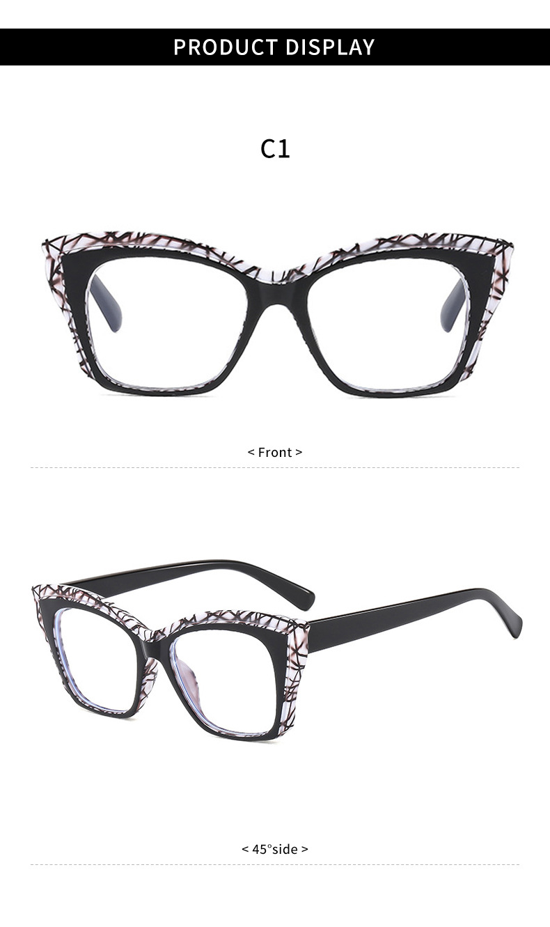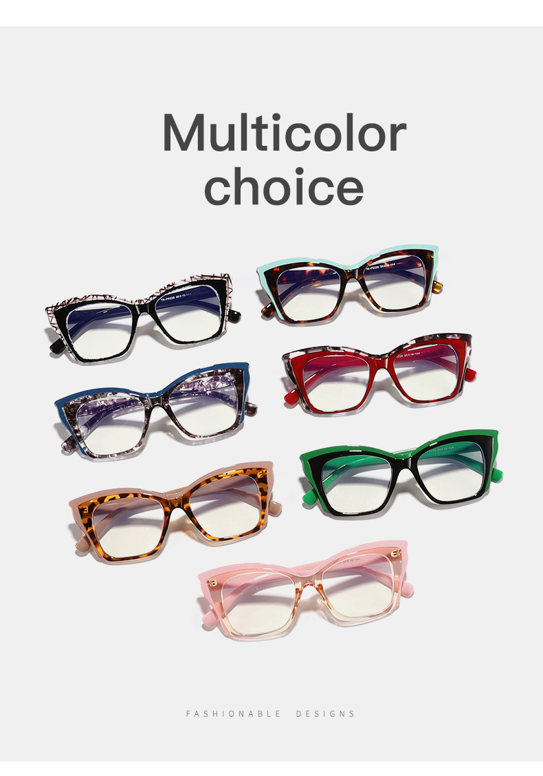 TR90 Bolsa de cercanías de moda europea y americana Flower Cat Eye Lentes planos anti-luz azul ins La moda se puede equipar con gafas de montura de miopía