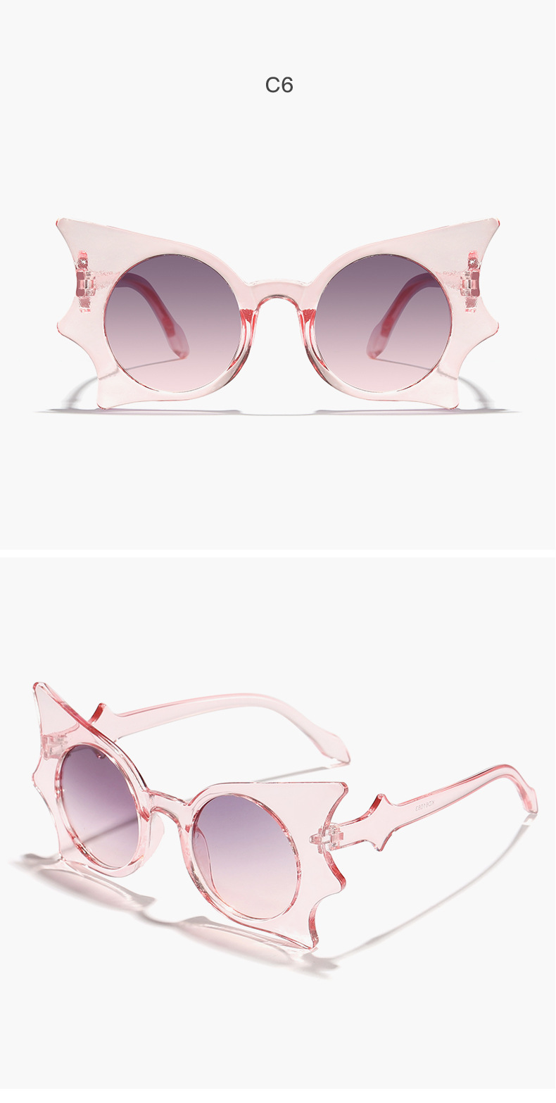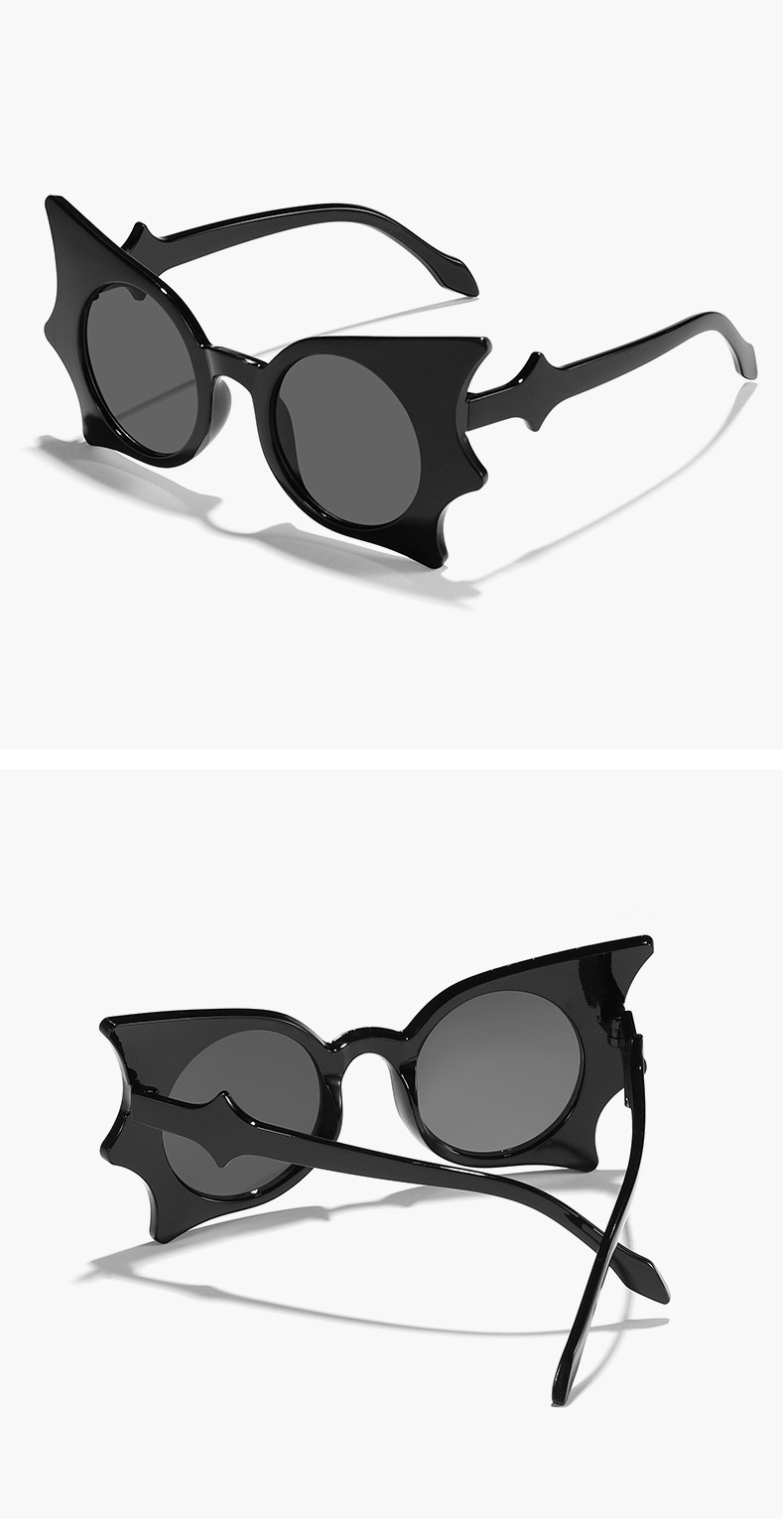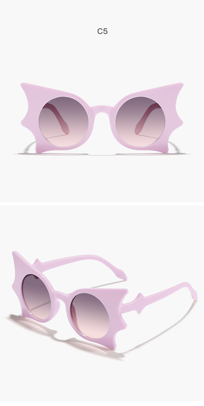2024 Gafas de sol navideñas con marco de murciélago de personalidad divertida para niños, personalidad europea y americana, espejo de hip-hop de moda Y2K