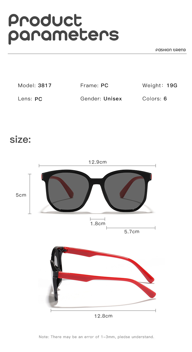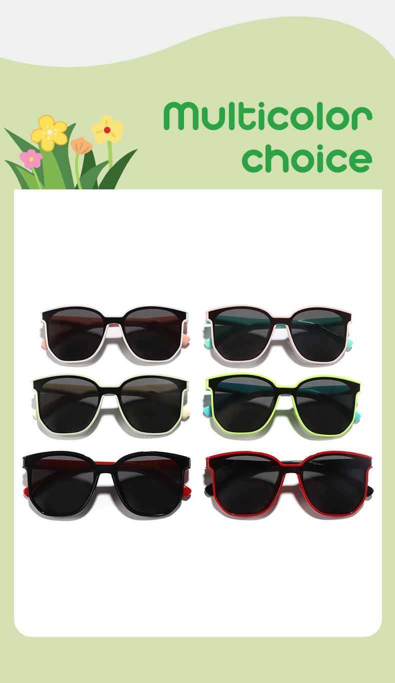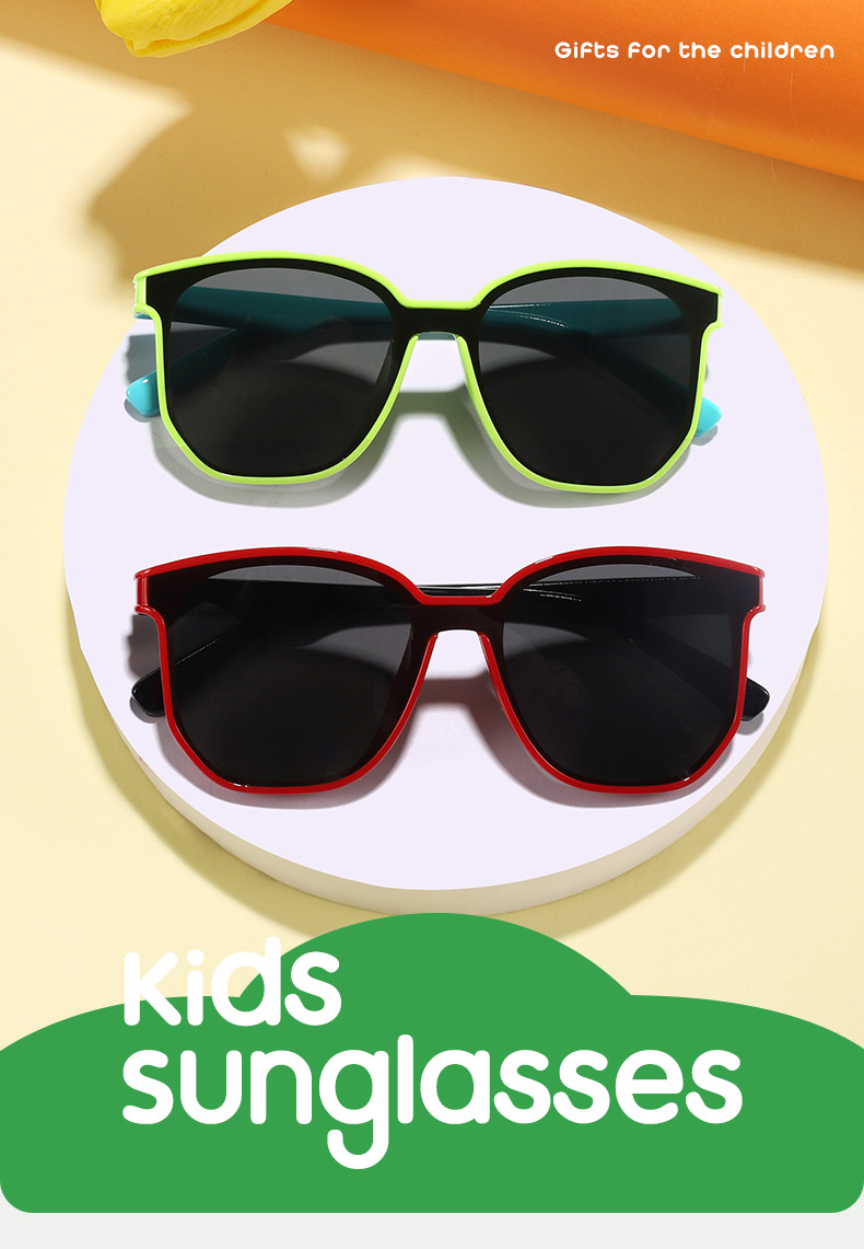 Nuevos colores en contraste para niños transfronterizos, gafas de sol para exteriores con marco cuadrado personalizado, gafas de sol esenciales de moda