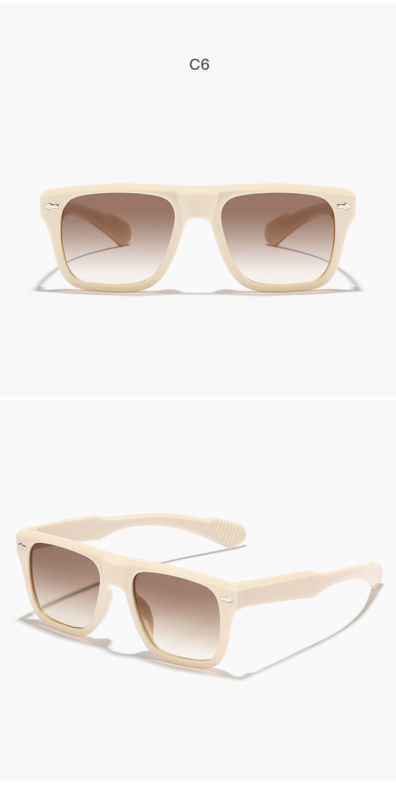 Nuevos hombres y mujeres de estilo europeo y americano elegante Marco de moda beige uñas llanura cara-mirando pequeña pasarela al aire libre sol protección sol