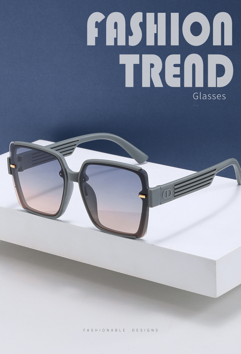 2024 nuevo personalizado a rayas de ala ancha marco elegante cara de aspecto pequeño sol protección gafas de sol moda desgaste esencial gafas de sol