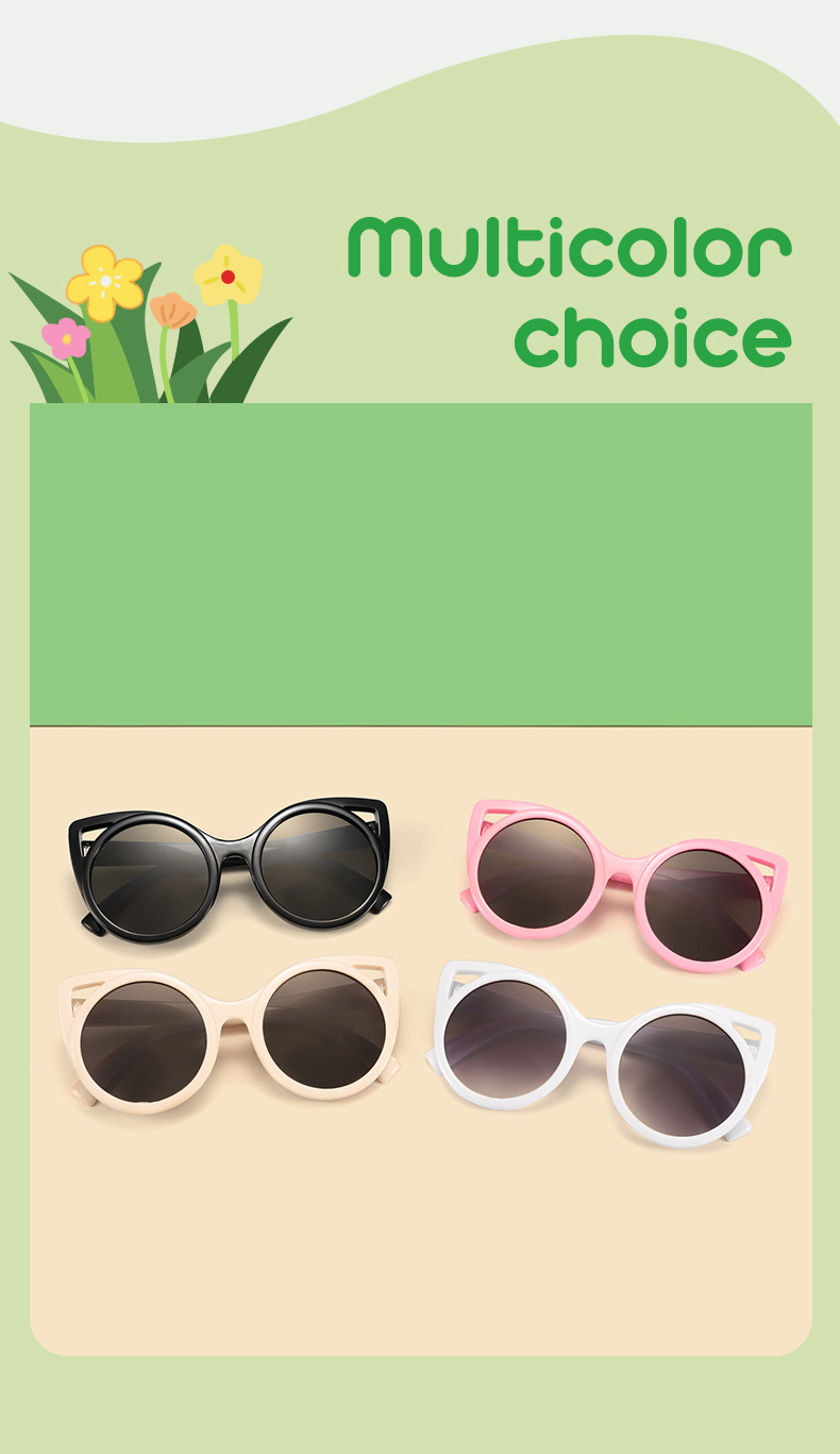 2023 nueva historieta Linda oreja de gato forma cóncava protección UV protección ocular bebé moda todo-fósforo gafas de sol para niños