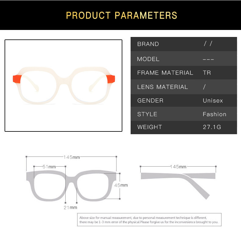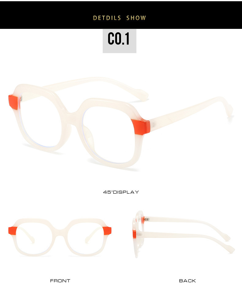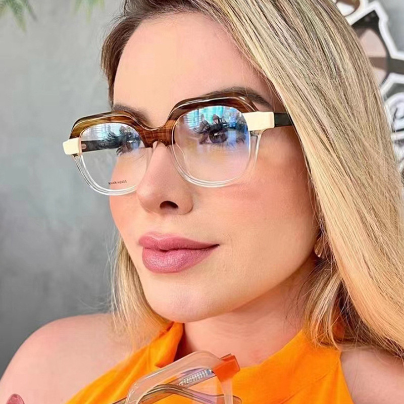 Gafas INS de alto grado marco cuadrado costura contraste color anti-azul gafas de luz Marco de las mujeres nuevas gafas lisas TR90 europeas y americanas