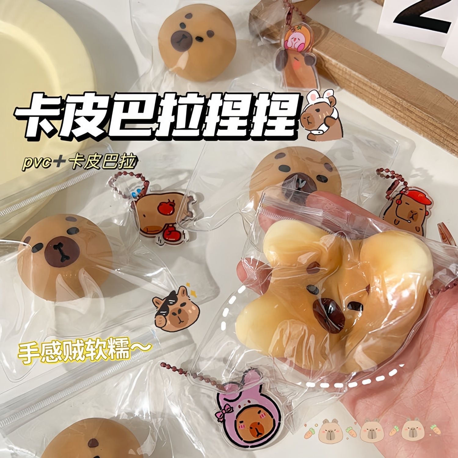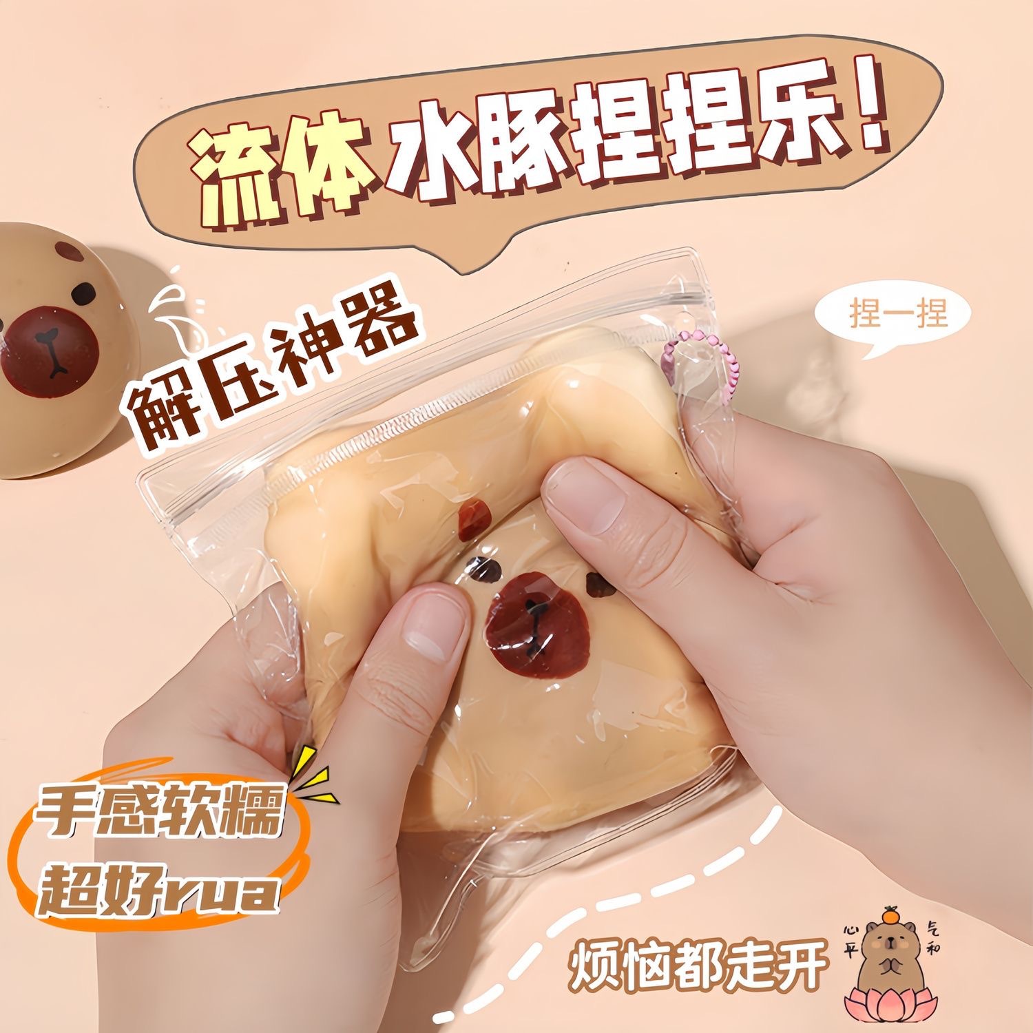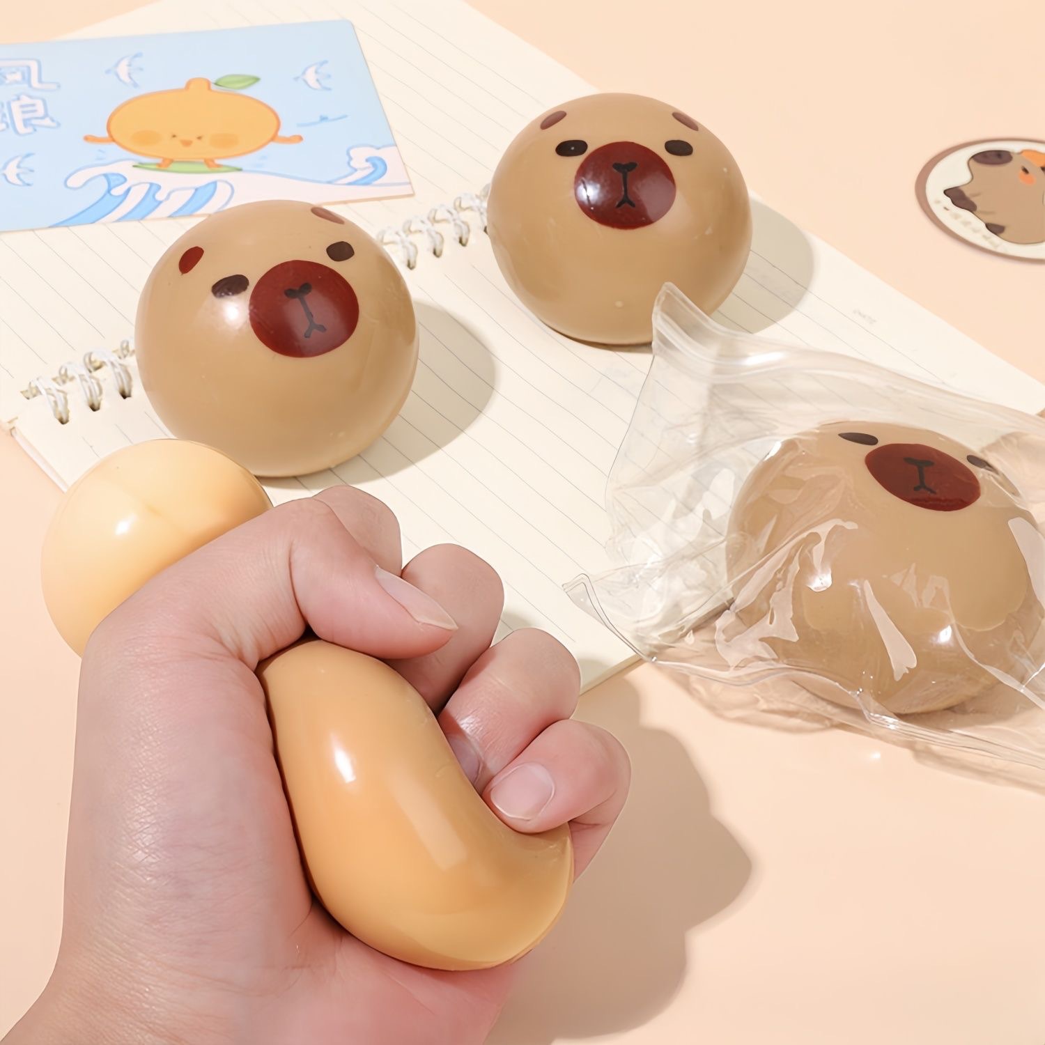 Desahogue la tarta de huevo de mochi fluida de rebote lento, pellizque, descompresión creativa, comida de imitación, carpincho de dibujos animados, Kapibala