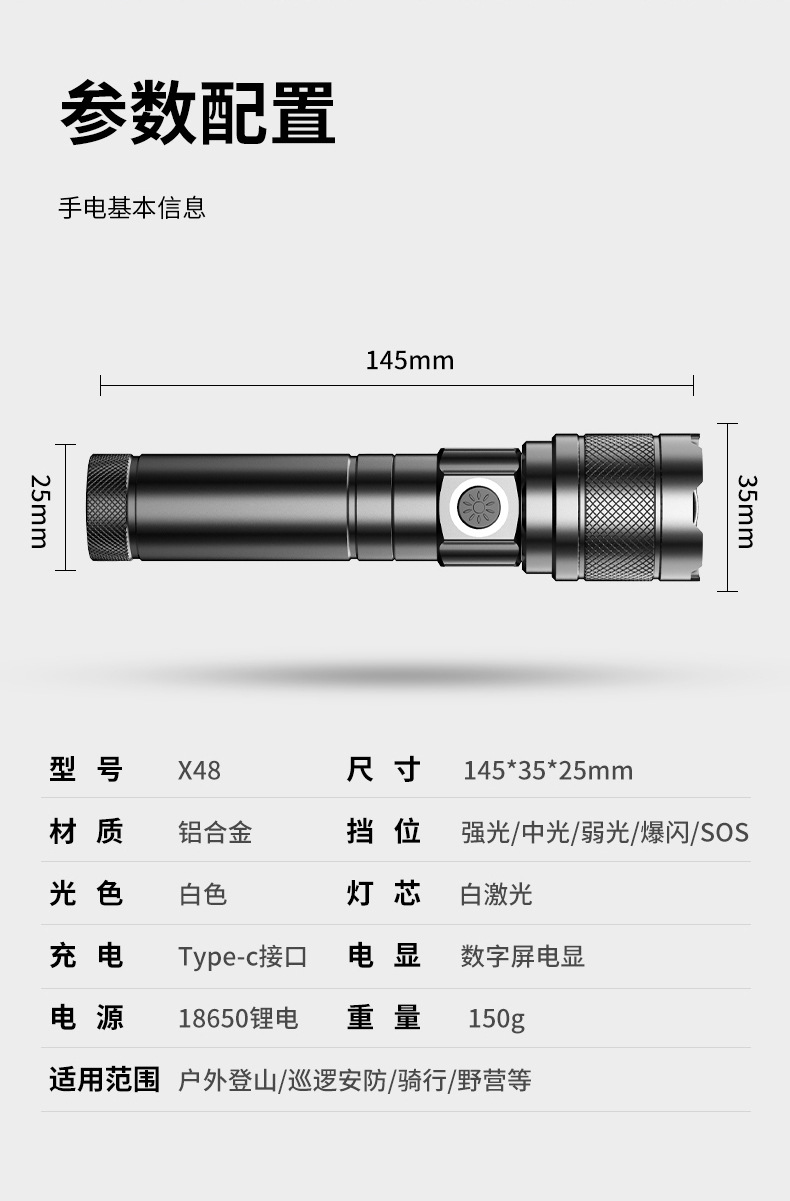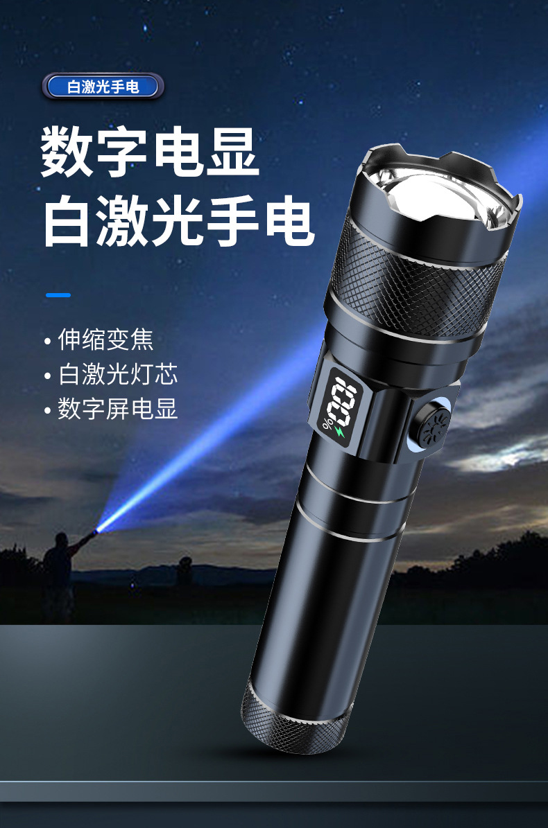 Transfronteriza nueva pantalla digital LCD linterna oculta carga rápida aleación de aluminio pistola láser de largo alcance entrega de una sola pieza