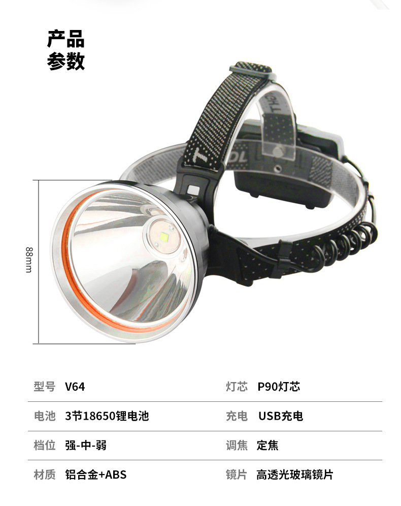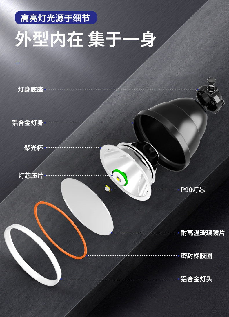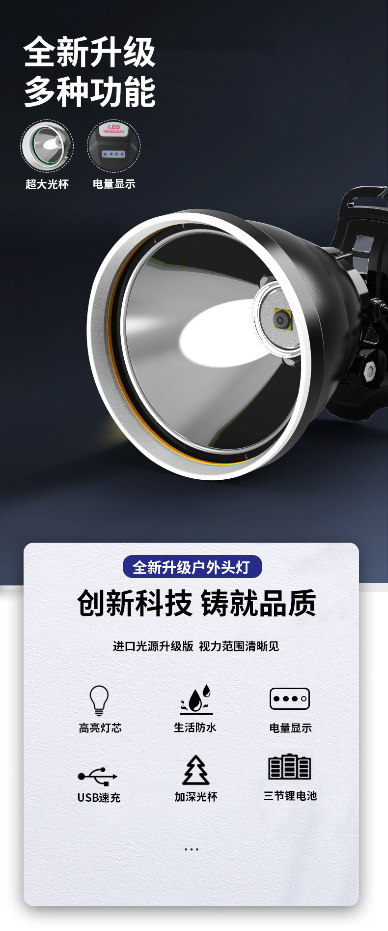 Gran taza de luz faro acampar al aire libre aleación de aluminio fuerte luz de largo alcance faro Gran Reflector linterna de carga para teléfono móvil al por mayor