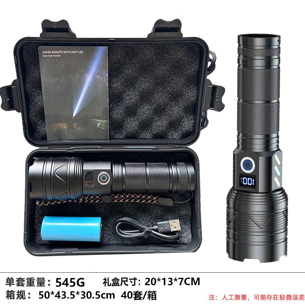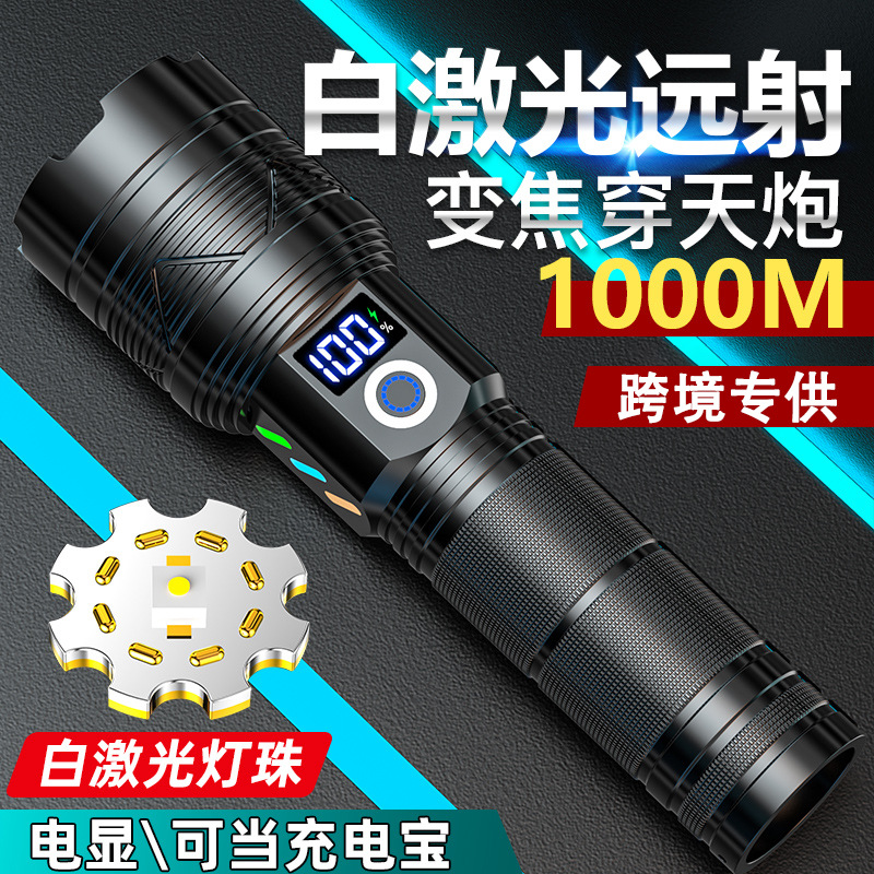 Actualización de zoom de pantalla de potencia digital de luz intensa transfronteriza A06A, carga TYPE-C, linterna de emergencia de larga distancia con láser blanco