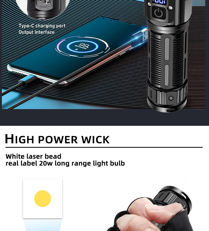 Linterna de pistola láser transfronteriza nueva Linterna táctica de carga láser blanca portátil telescópica de largo alcance súper brillante para exteriores