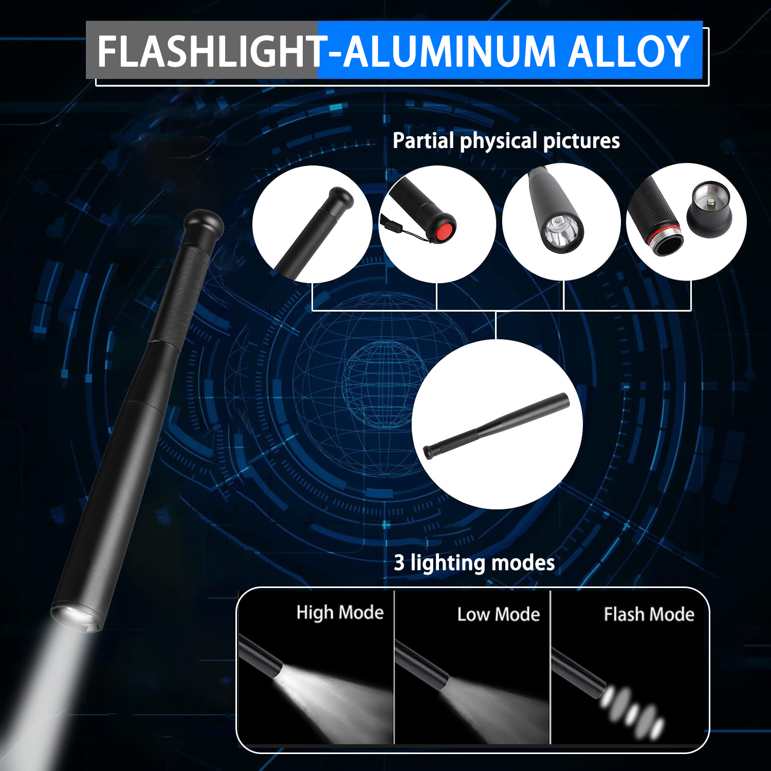 Venta directa de fábrica, bate de béisbol de patrulla al aire libre, linterna de luz fuerte, seguridad de autodefensa, linterna de aleación de aluminio multifuncional para automóvil