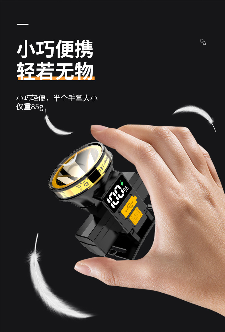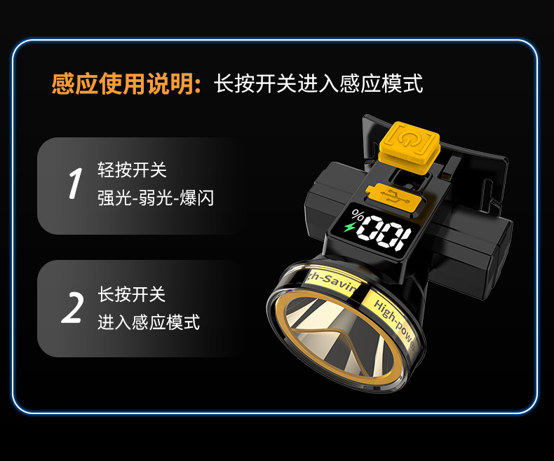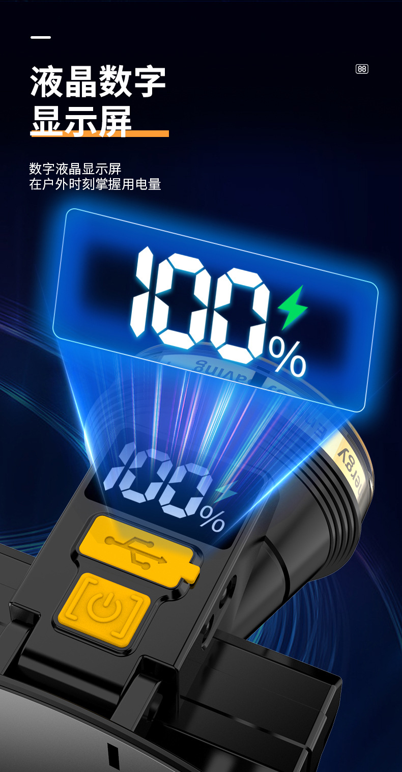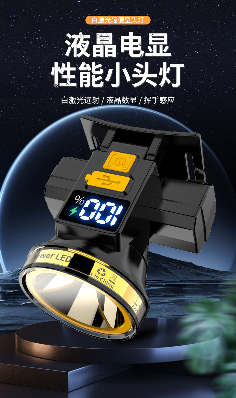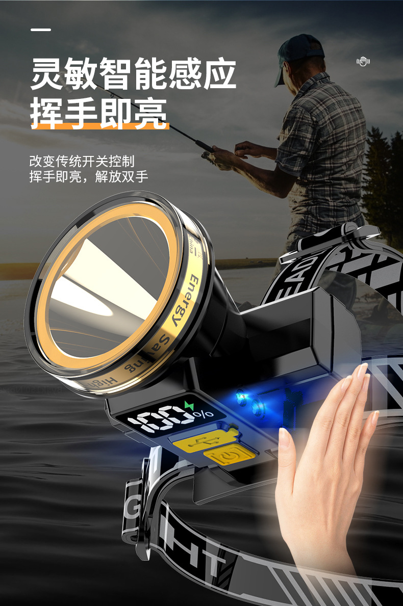 Pantalla eléctrica digital faro fuerte luz larga resistencia inducción faro al aire libre camping cabeza-montado linterna iluminación faro