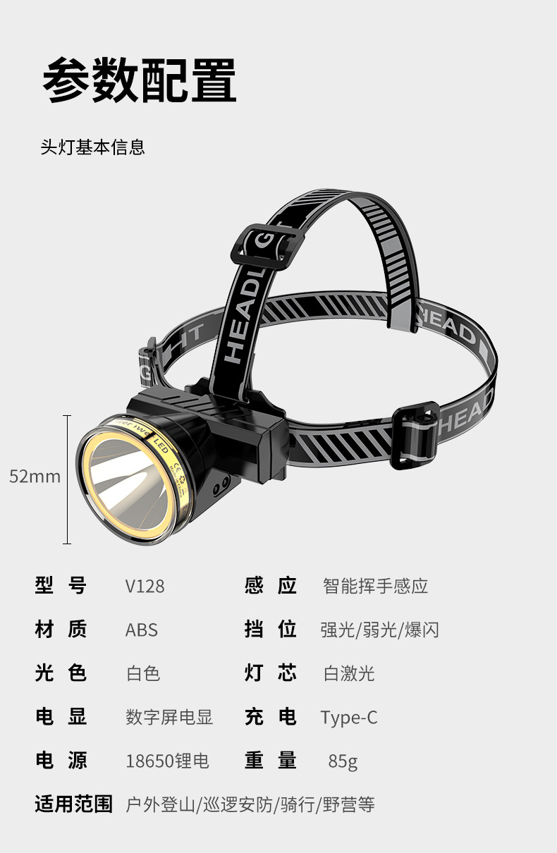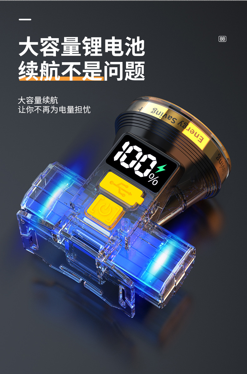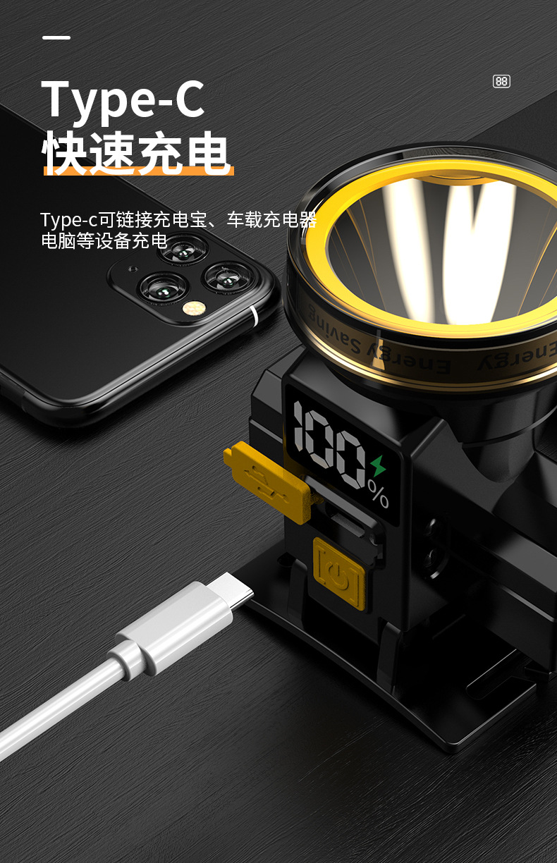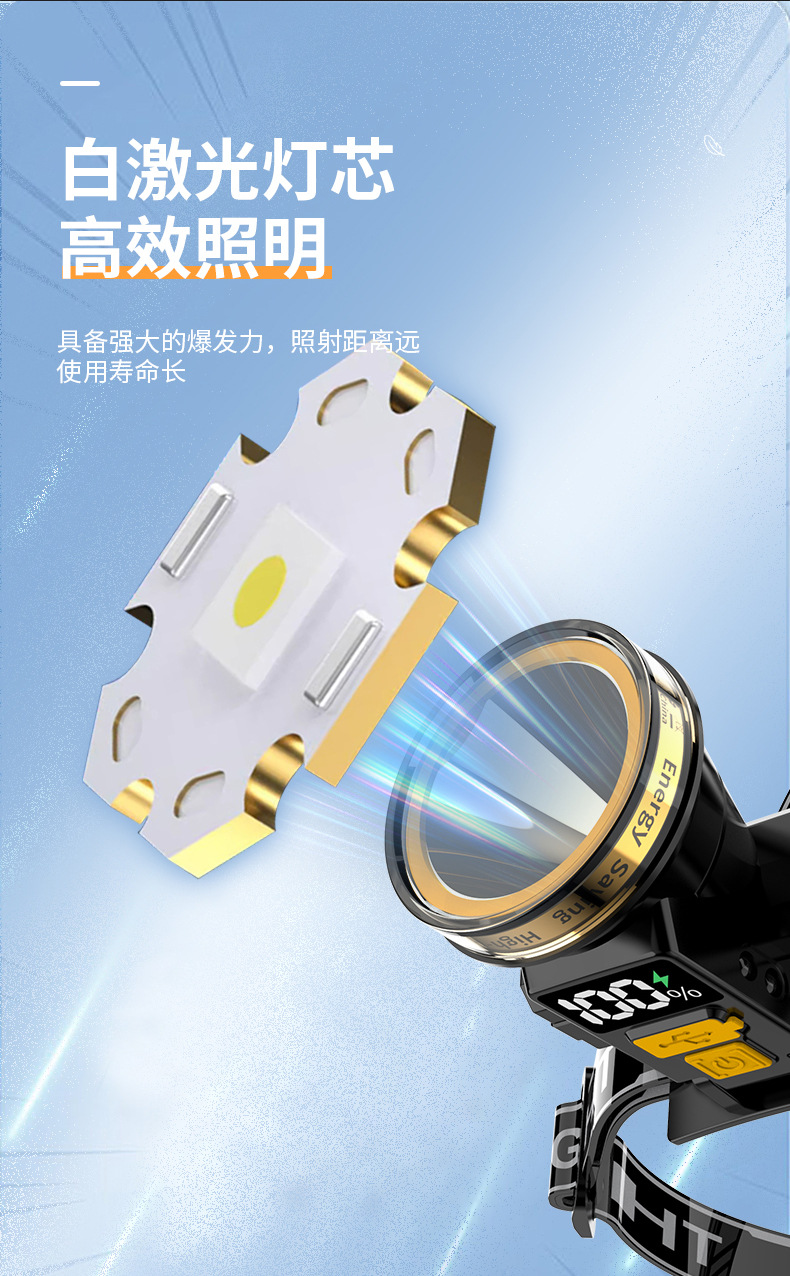 Pantalla eléctrica digital faro fuerte luz larga resistencia inducción faro al aire libre camping cabeza-montado linterna iluminación faro