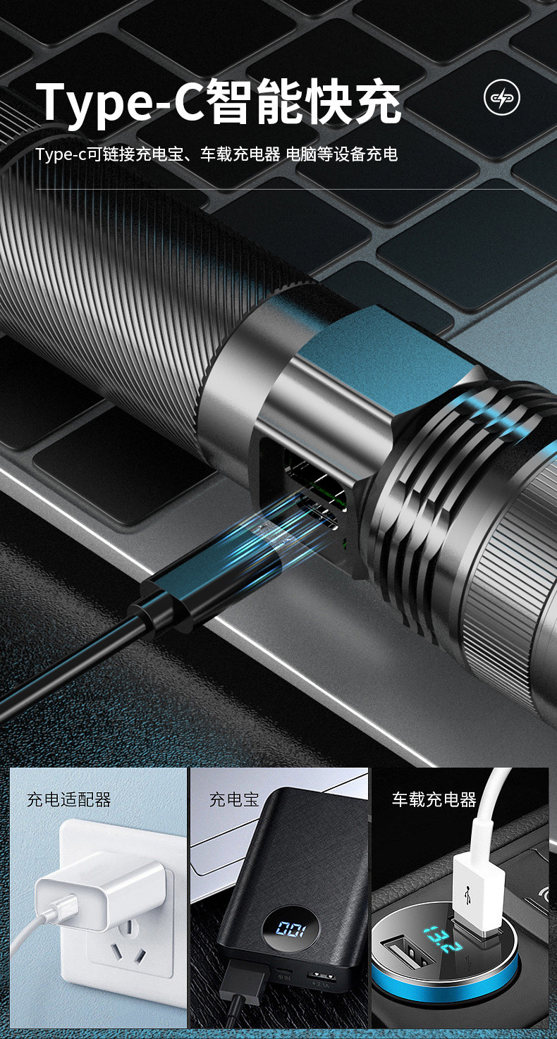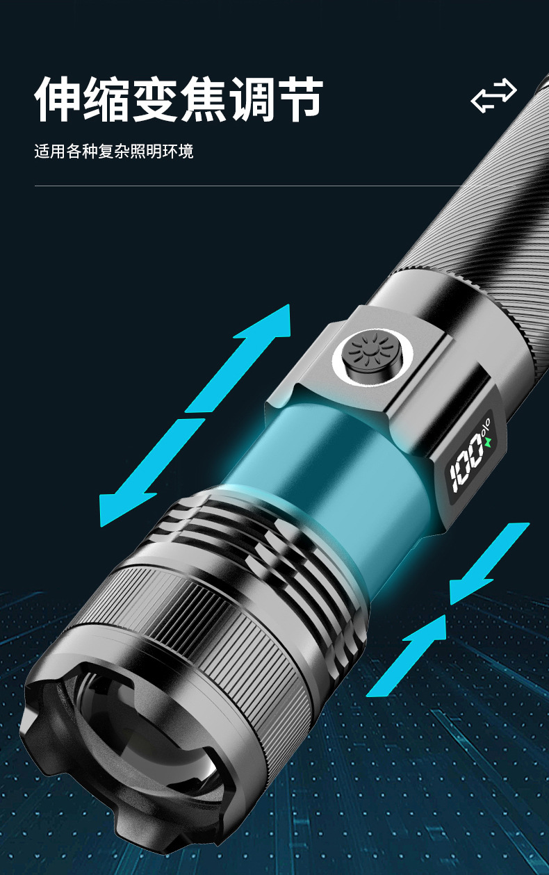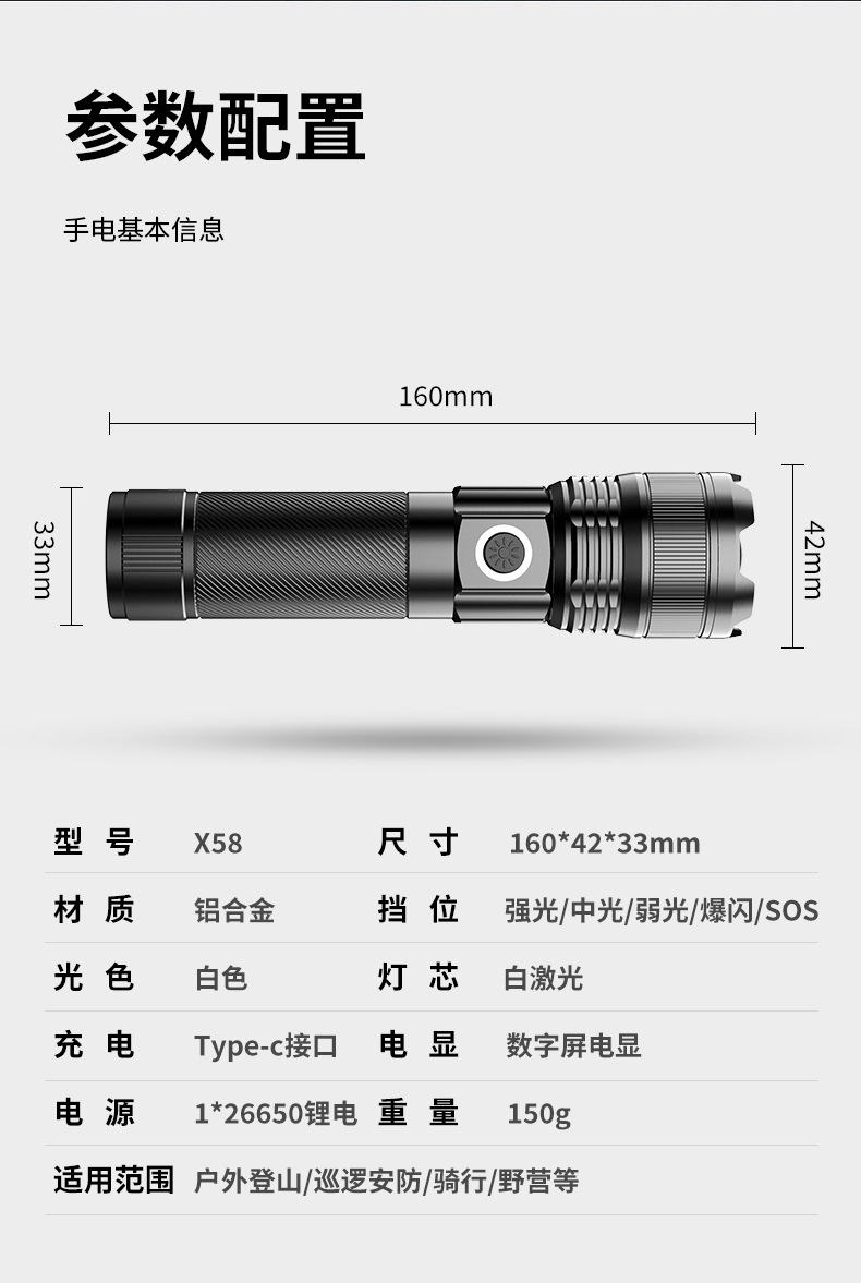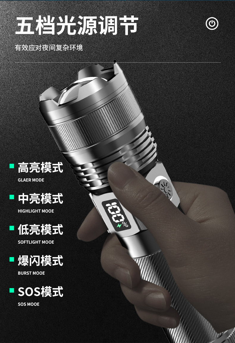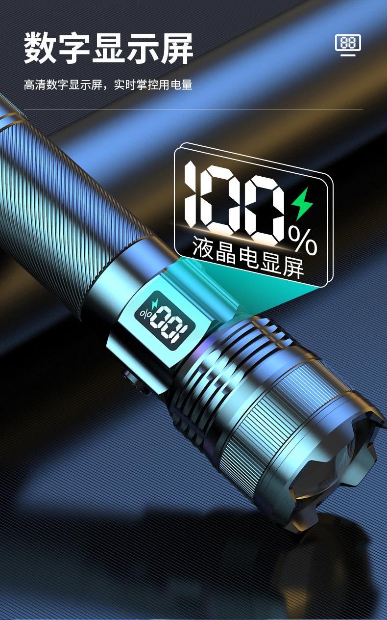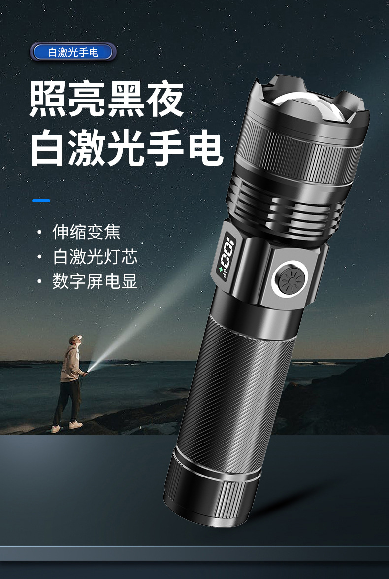 Nueva linterna eléctrica digital oculta de carga rápida de aleación de aluminio de tiro largo linterna láser blanco linterna de iluminación al aire libre