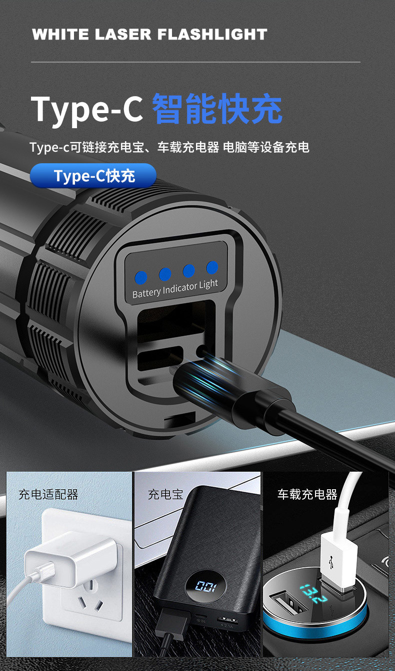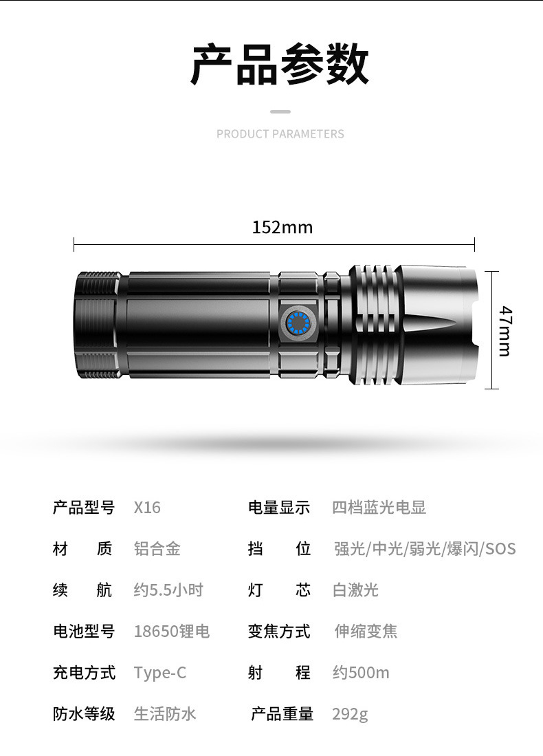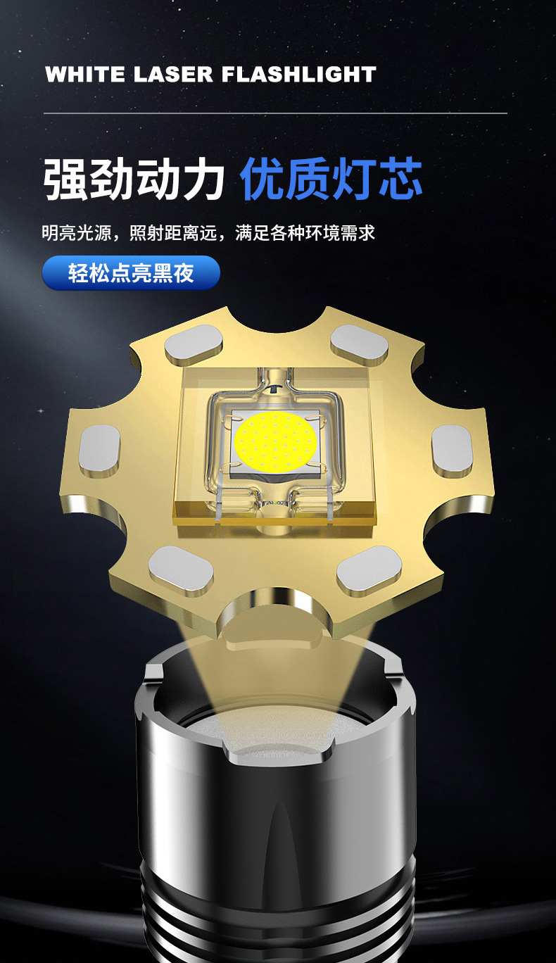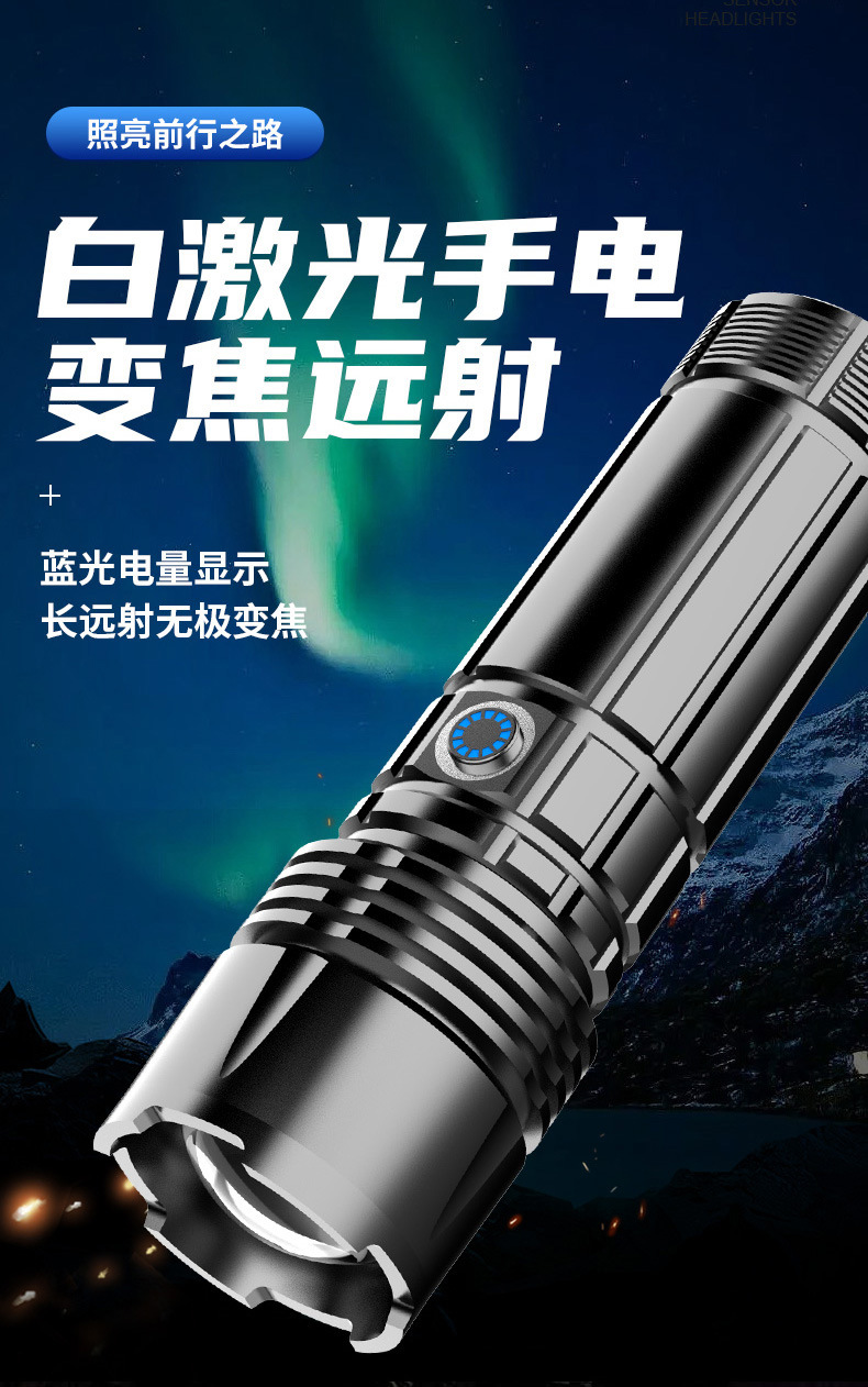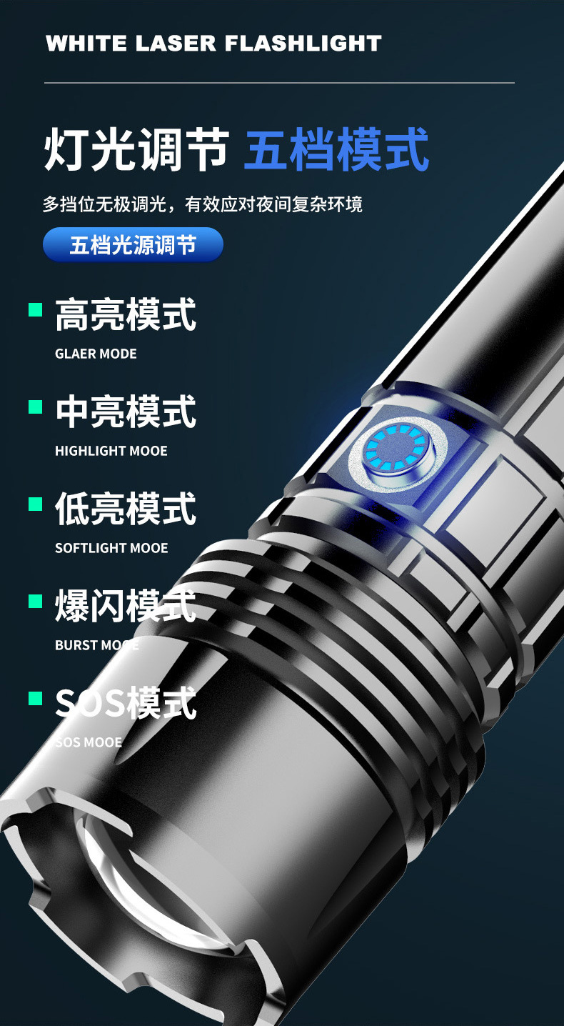 Linterna táctica láser, linterna telescópica de aleación de aluminio, linterna zoom para acampadas al aire libre, iluminación