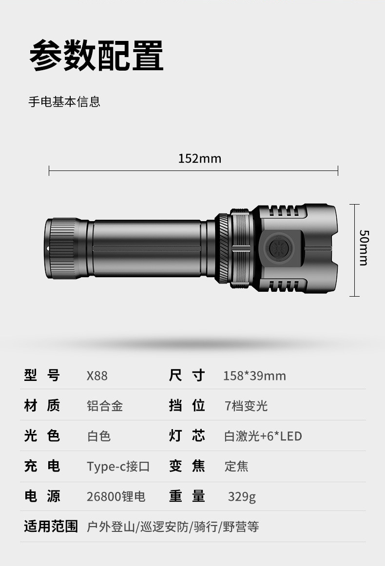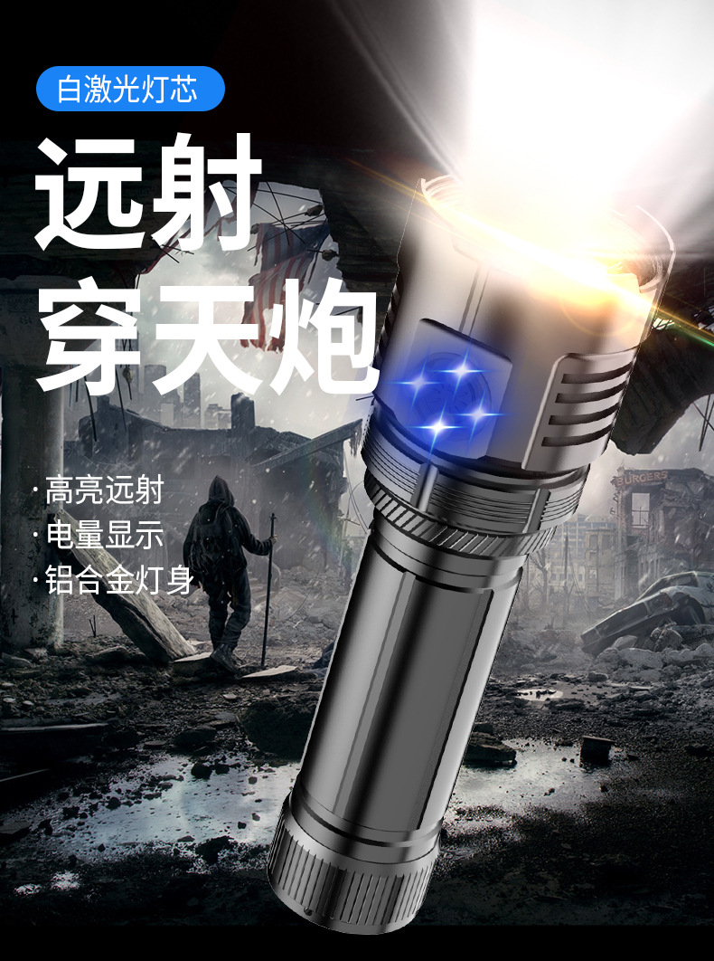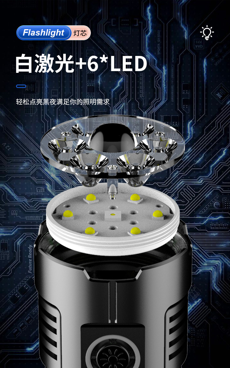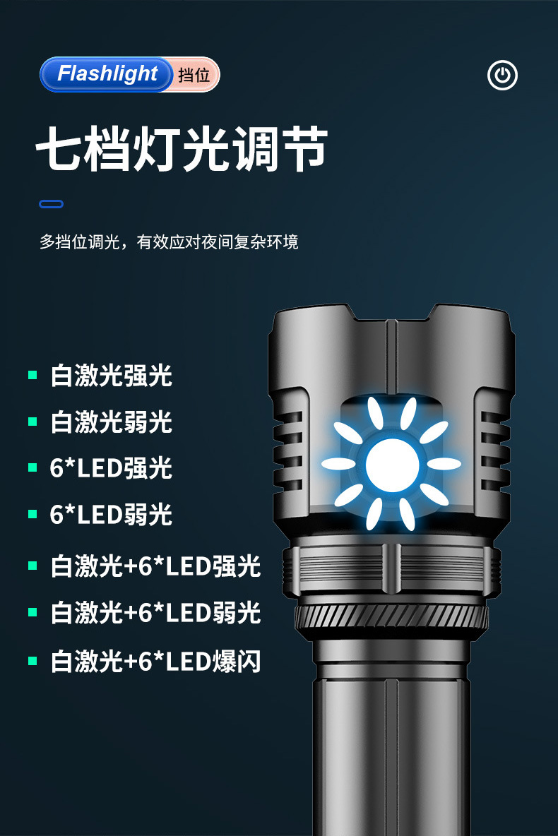 Linterna láser blanca, batería desmontable 26800 de alta potencia, linterna de aleación de aluminio, 7 perlas de lámpara, linterna de luz fuerte