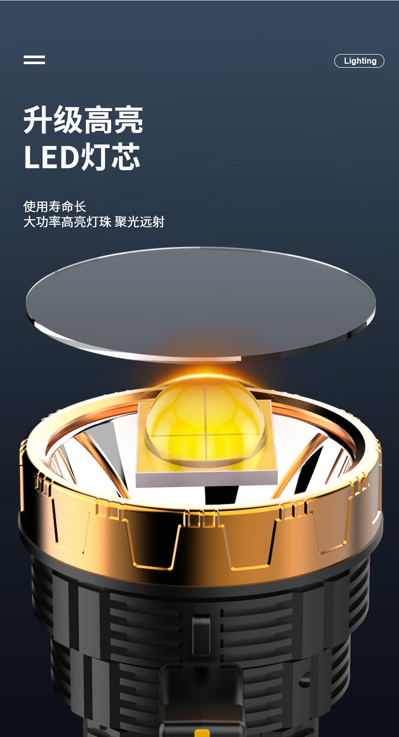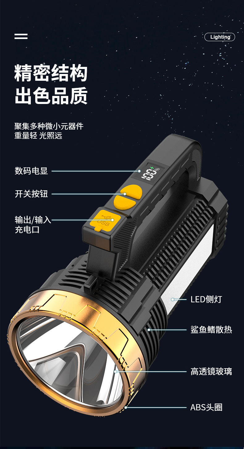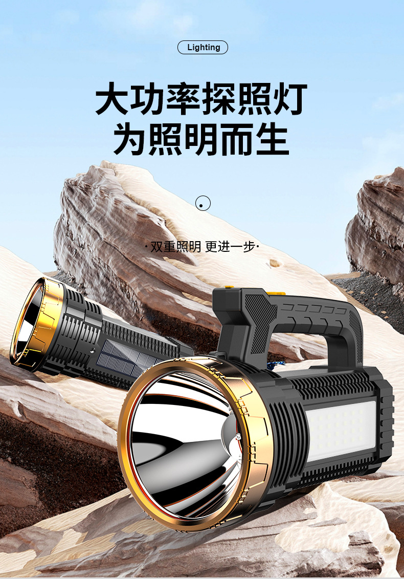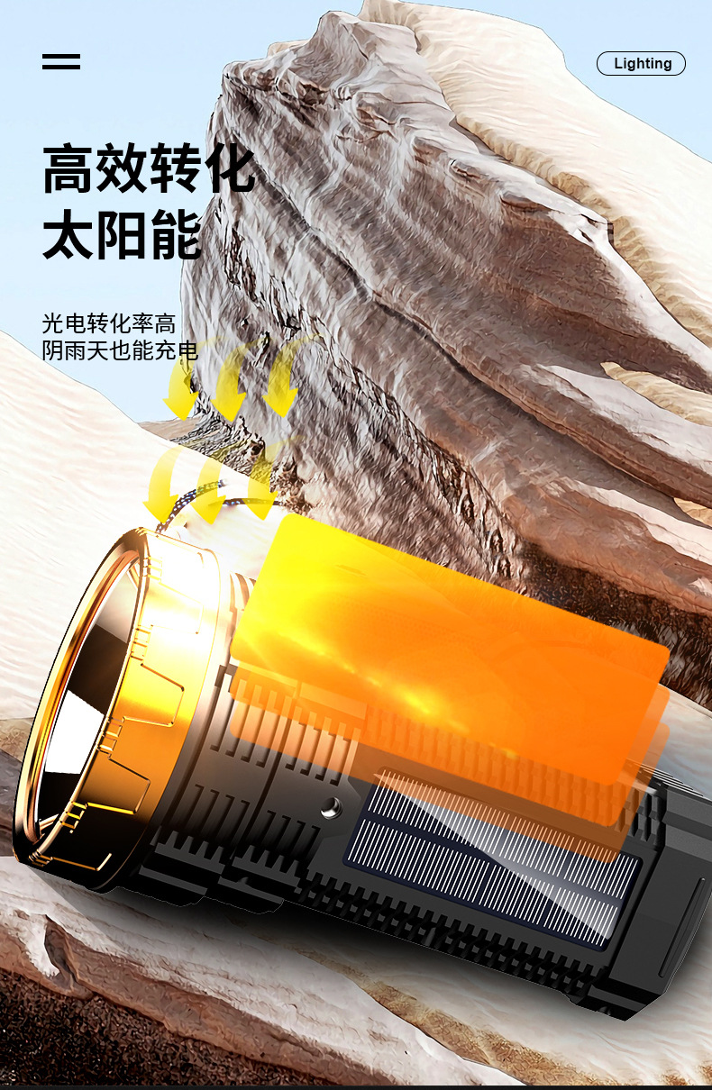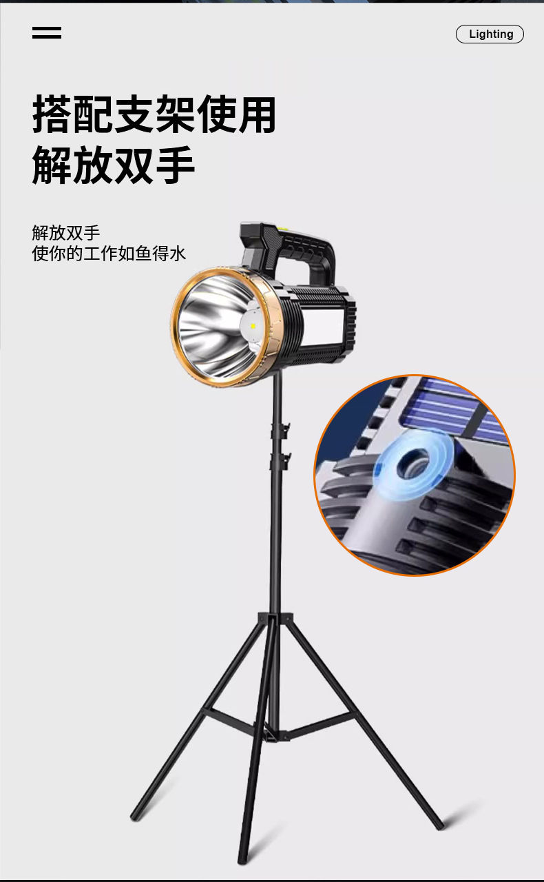Gran luz de inundación lámpara portátil LCD pantalla eléctrica digital linterna de luz fuerte reflector de aleación de aluminio de emergencia solar para exteriores