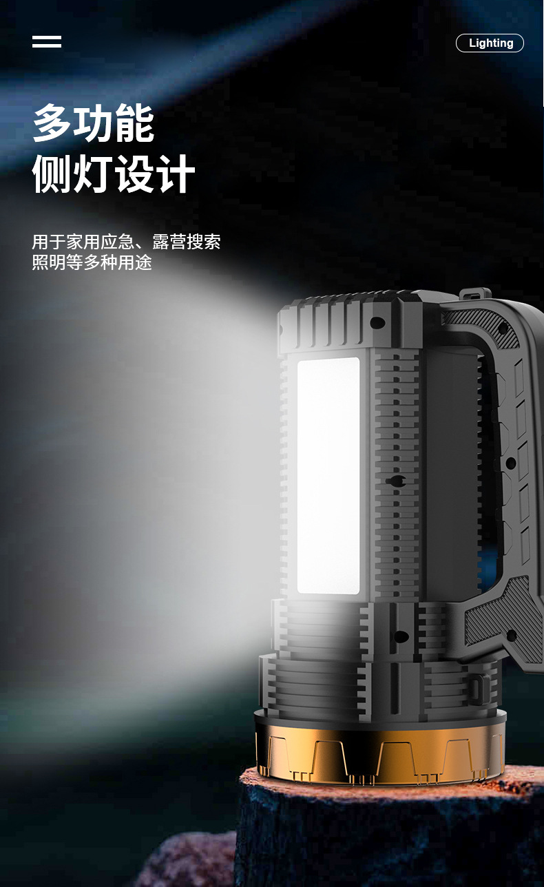 Salida de pantalla digital V10 3*1200 batería 96 tazas 55 mecha luz lateral de plástico dorado (blanco) luz de advertencia roja y azul