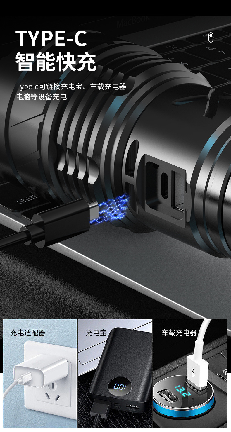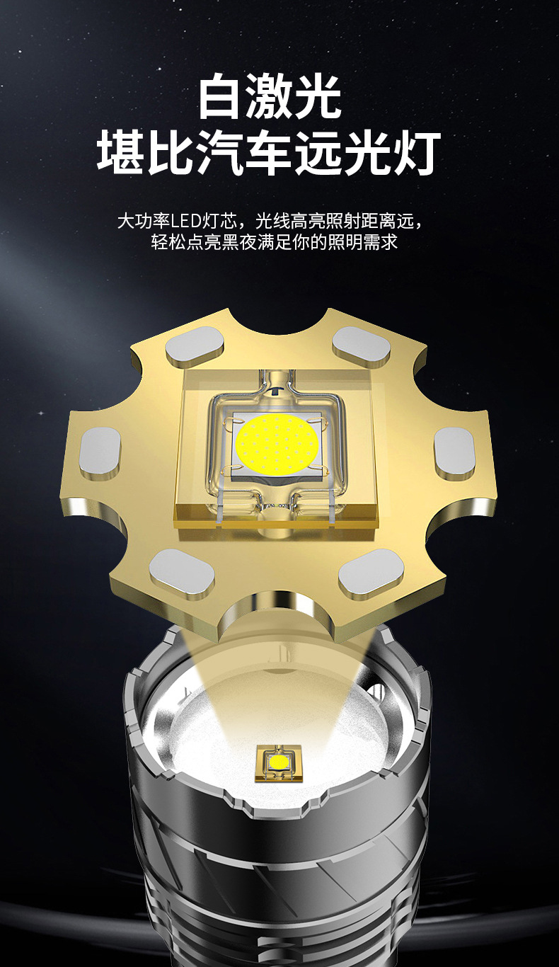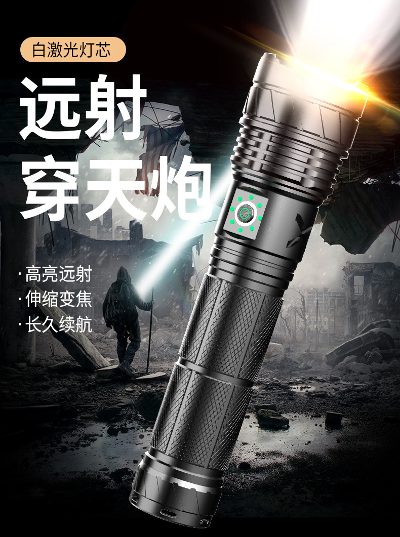 Linterna tipo C de luz fuerte, láser blanco, cañón penetrante de emergencia al aire libre, zoom telescópico, linterna de aleación de aluminio de largo alcance