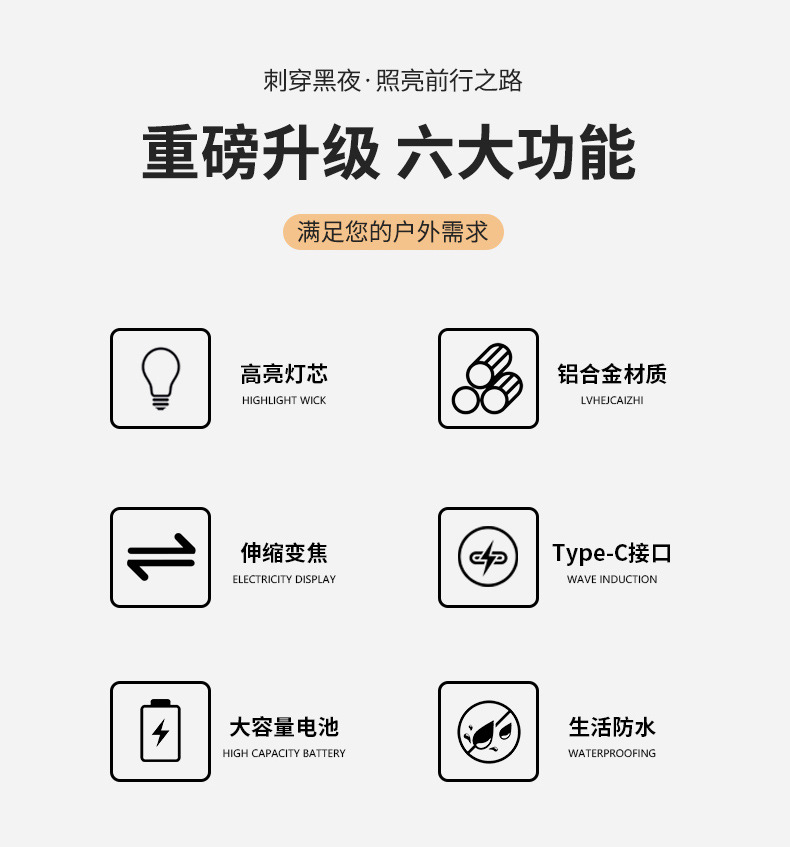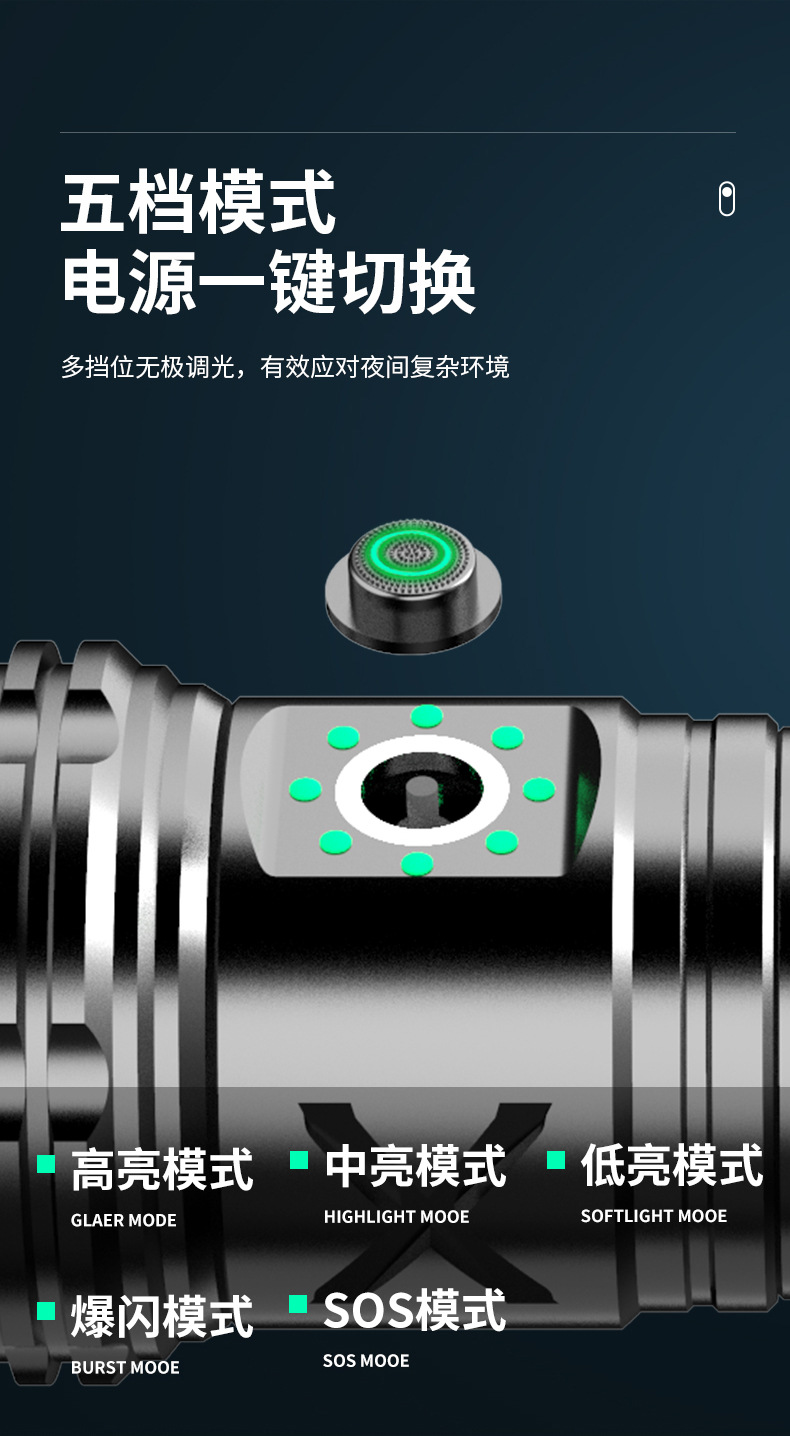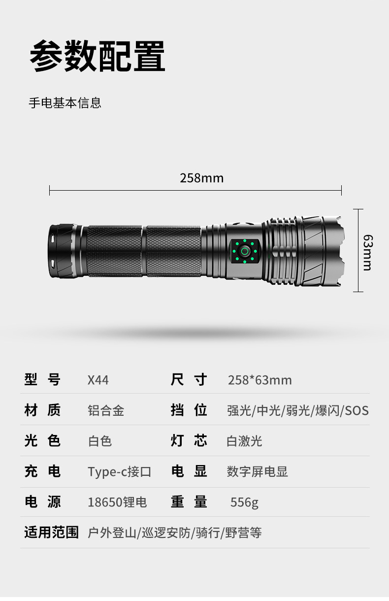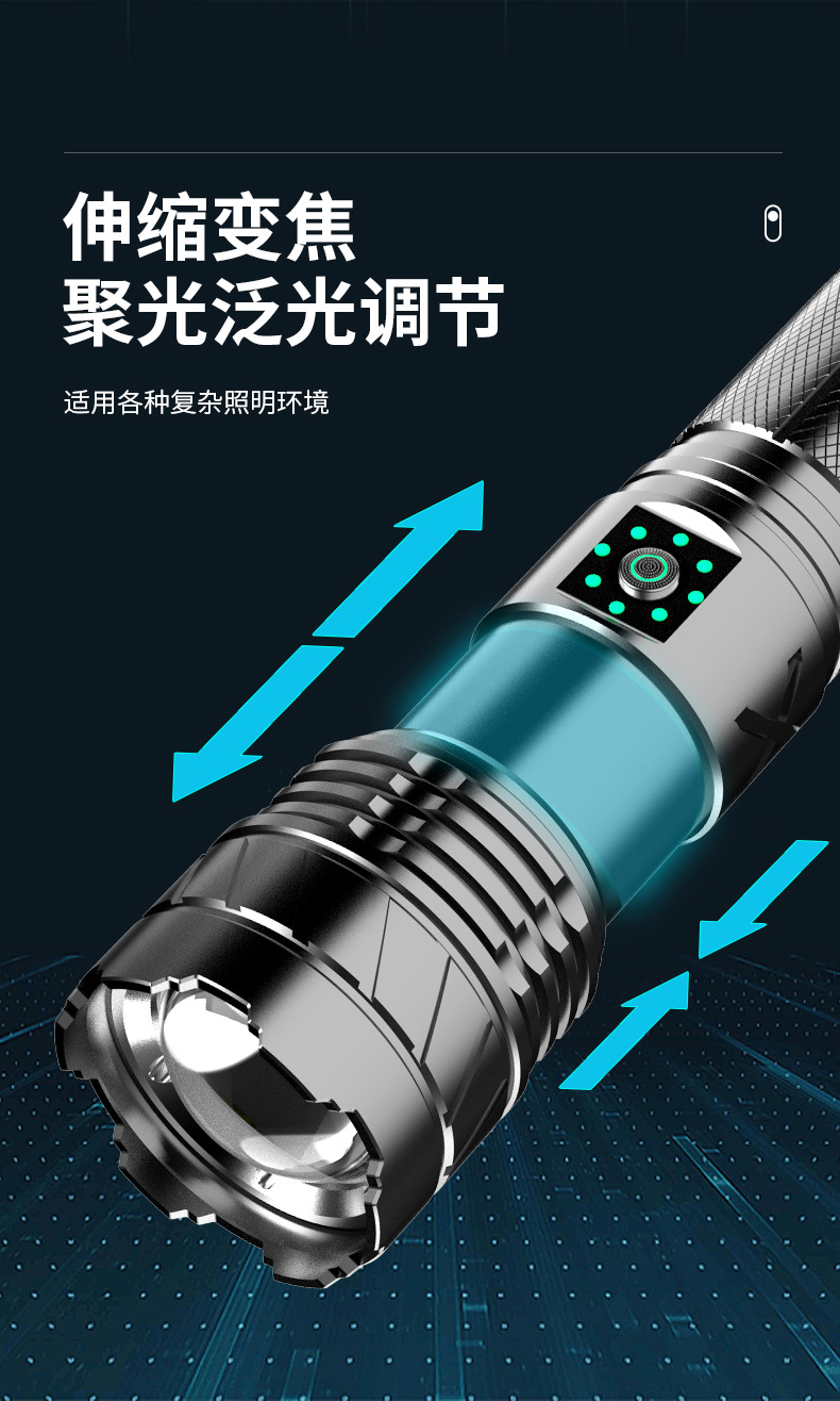 Linterna tipo C de luz fuerte, láser blanco, cañón penetrante de emergencia al aire libre, zoom telescópico, linterna de aleación de aluminio de largo alcance