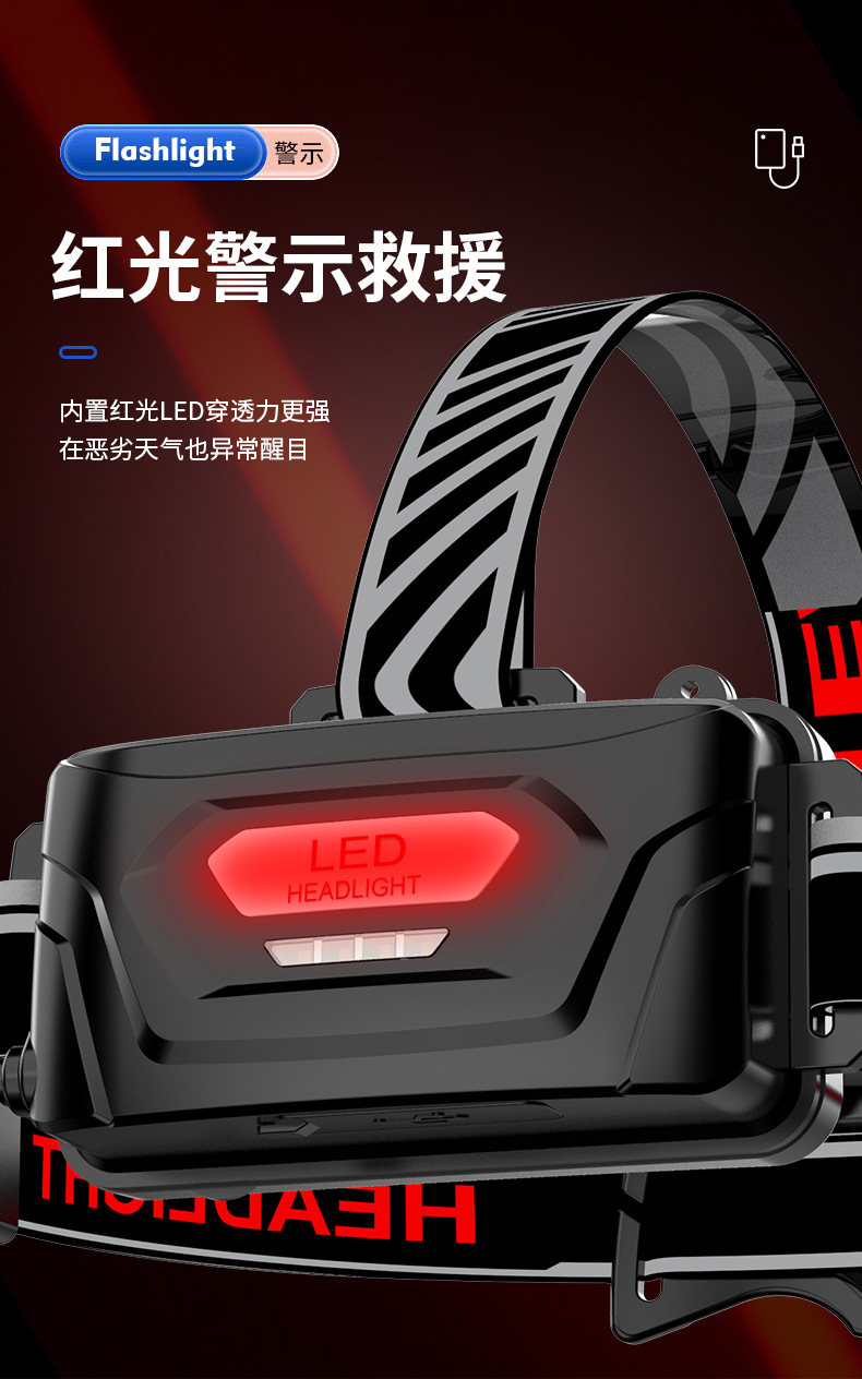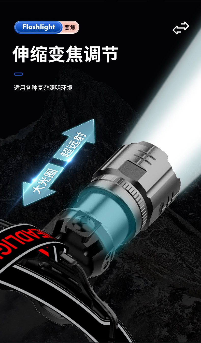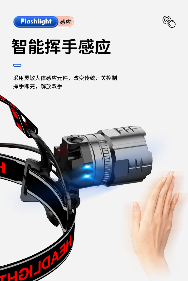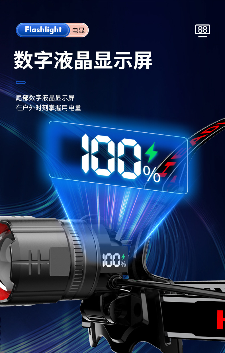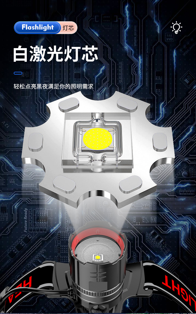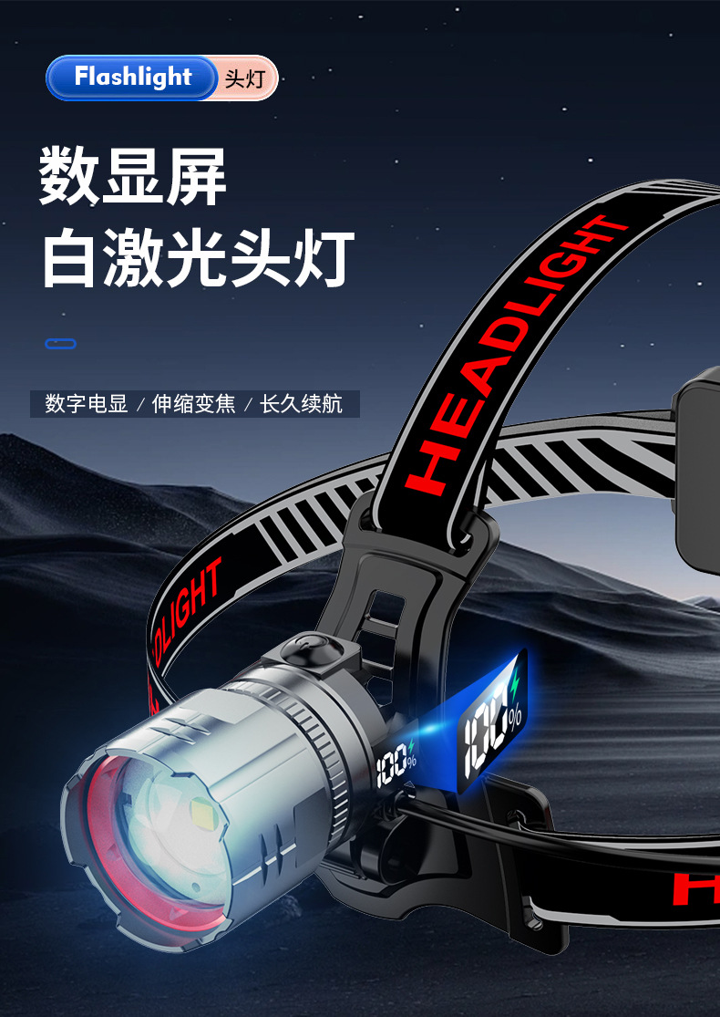 Nuevo faro de inducción Linterna de iluminación exterior con láser blanco de alta potencia Lado de la cabeza Pantalla de potencia digital Luz fuerte