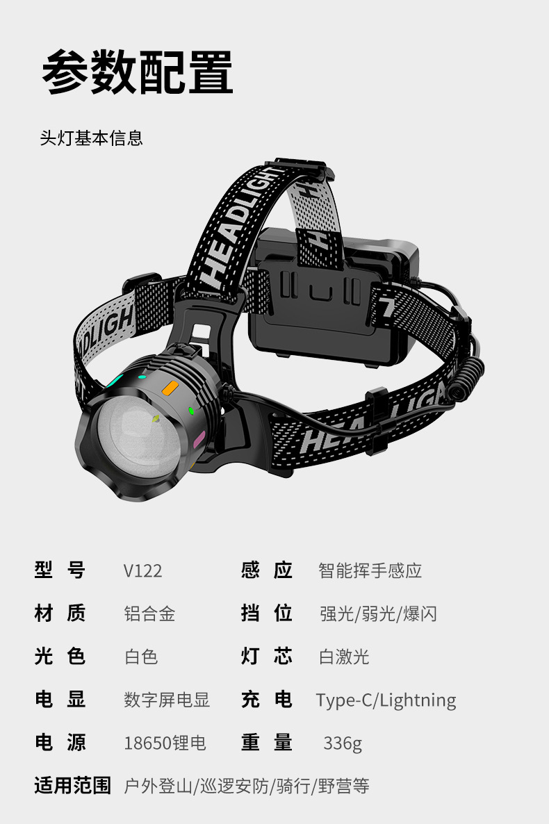 Nuevo blanco faro láser colorido aleación de aluminio al aire libre reflector tipo-C largo alcance resistencia inducción faro