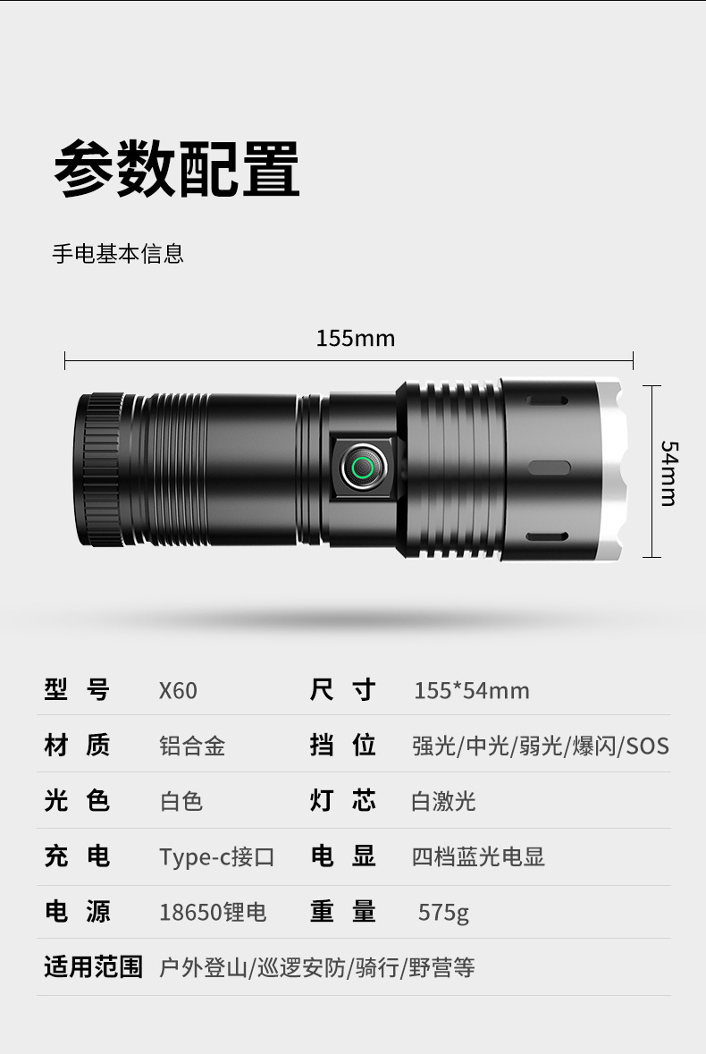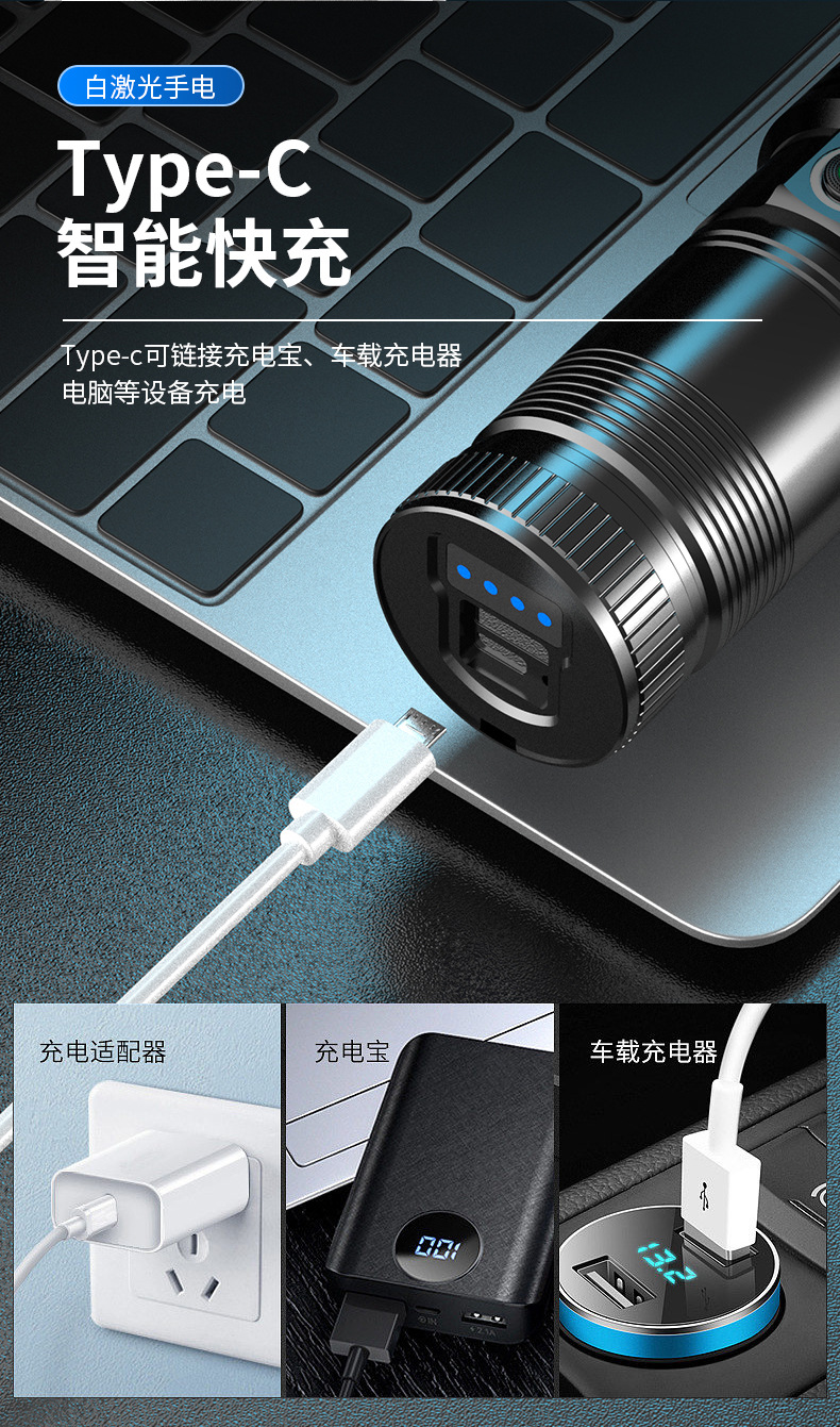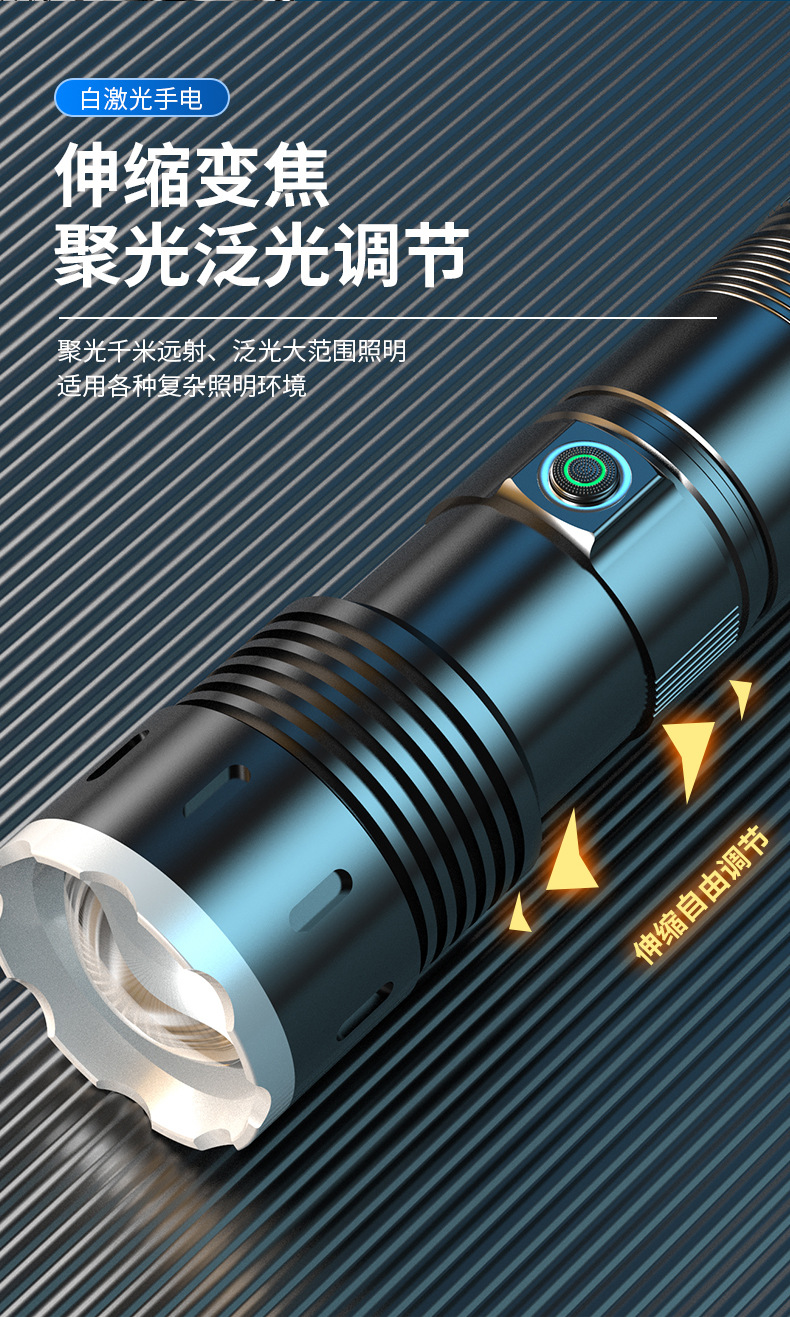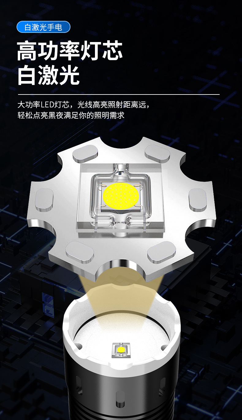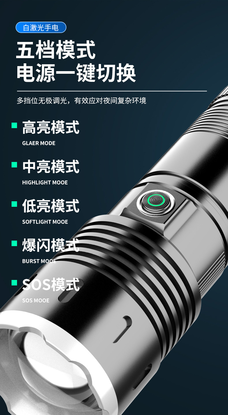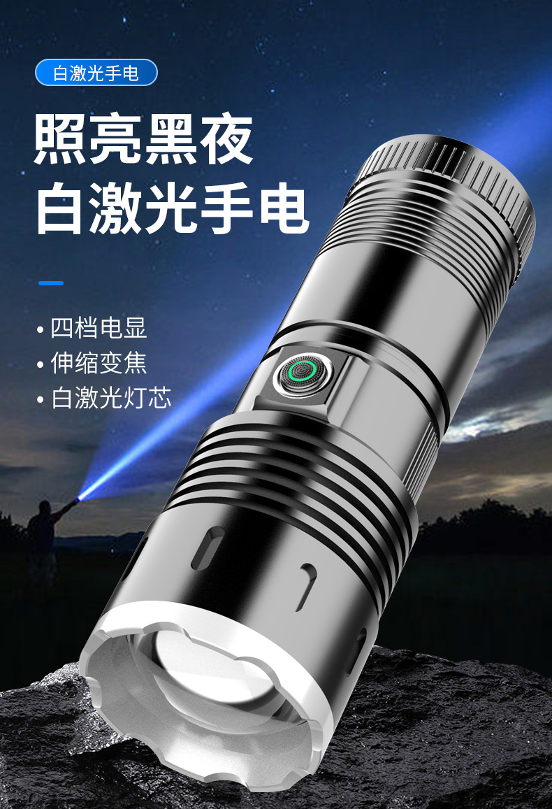 Fábrica generación blanco linterna láser al aire libre de largo alcance fuerte luz iluminación linterna de largo alcance zoom linterna de aleación de aluminio