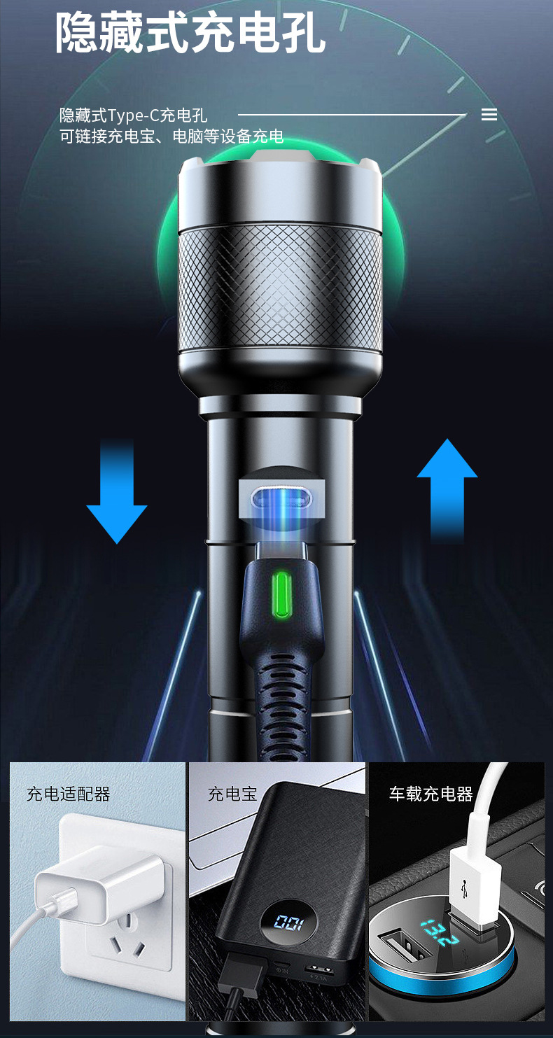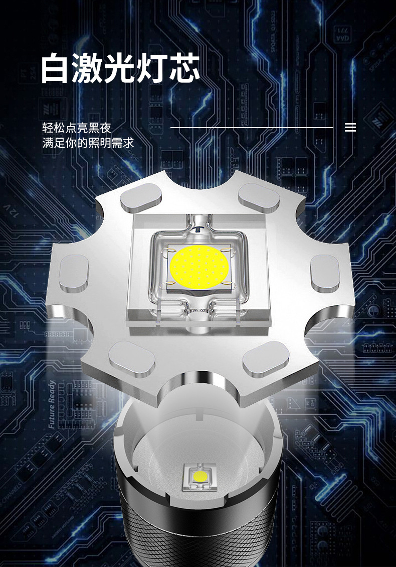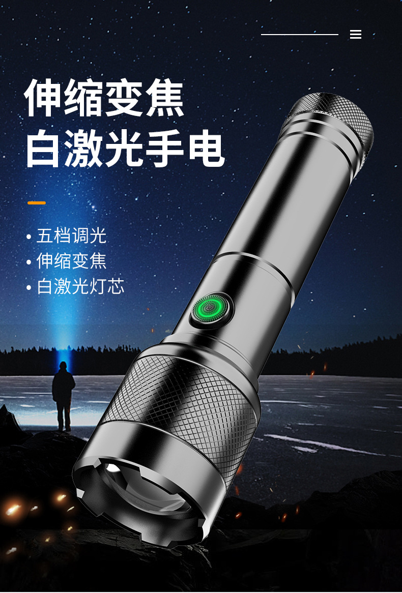 Linterna de nueva generación de carga rápida aleación de aluminio tiro largo linterna láser blanco batería desmontable linterna al aire libre al por mayor