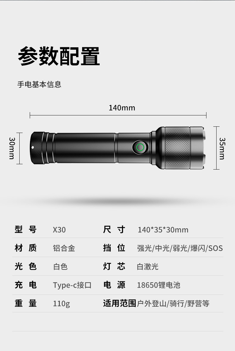 X30 láser blanco + 18650 batería