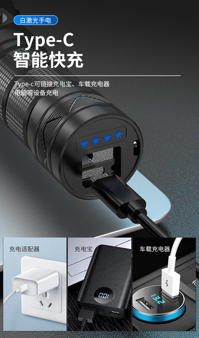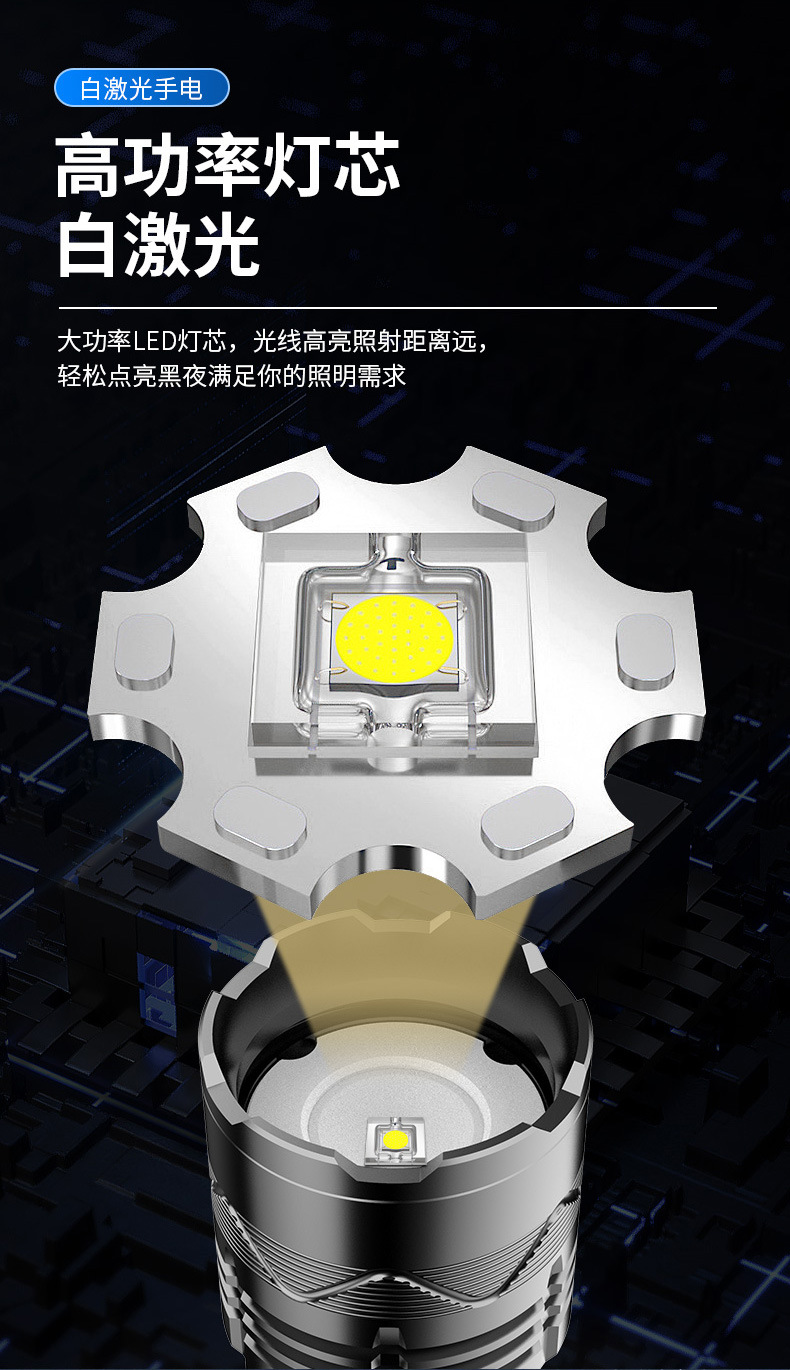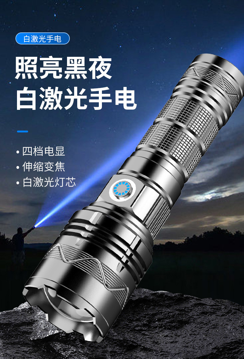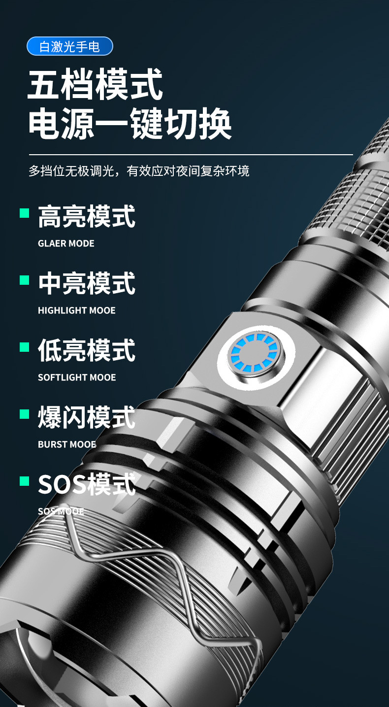 Nuevo producto transfronterizo linterna láser blanca pantalla de potencia de aleación de aluminio para eliminar luz fuerte linterna de largo alcance linterna de iluminación portátil