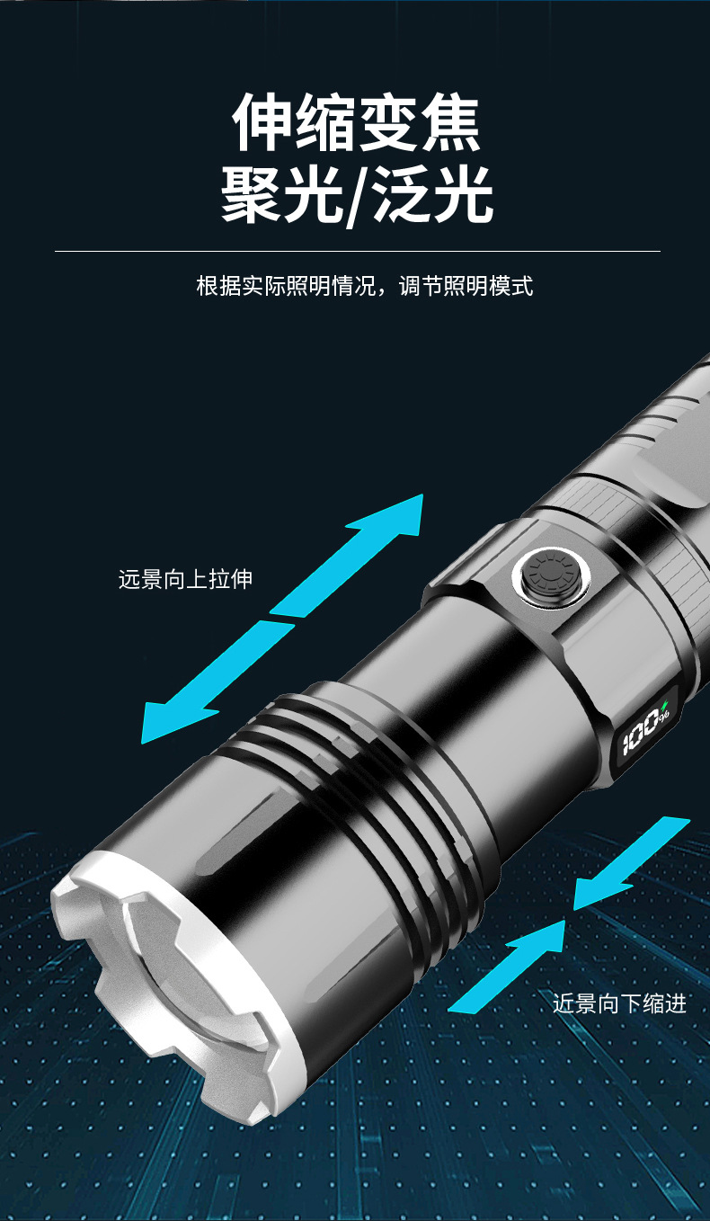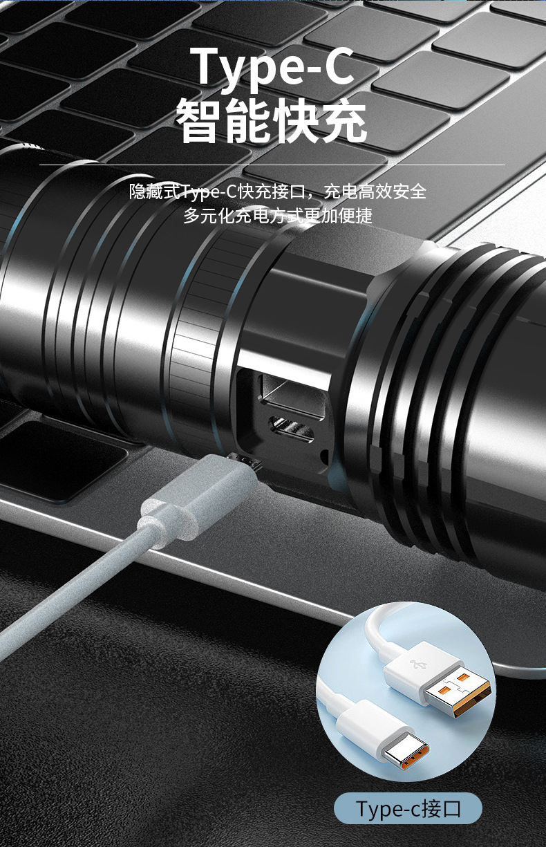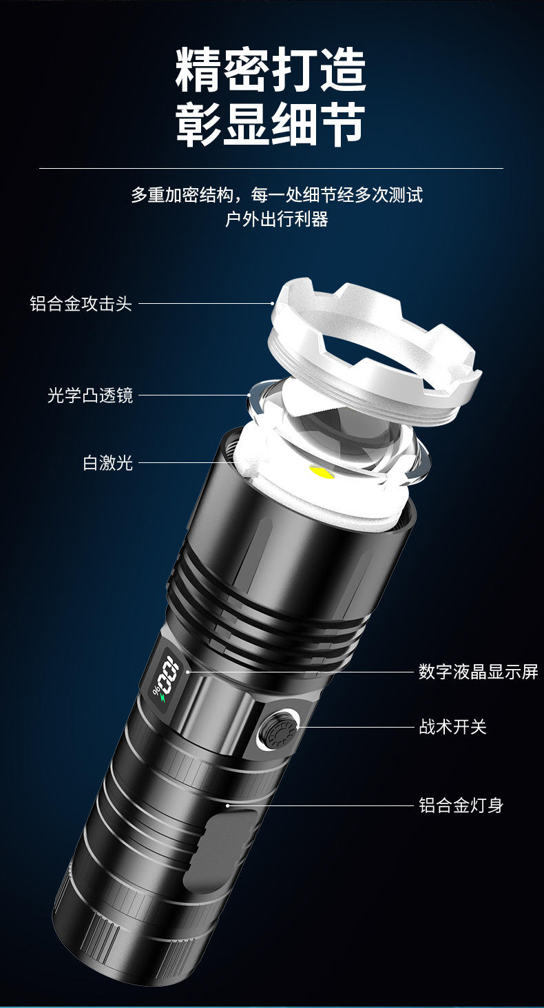 Generación LCD linterna láser tipo C carga rápida de tiro largo zoom telescópico linterna al aire libre linterna de luz fuerte