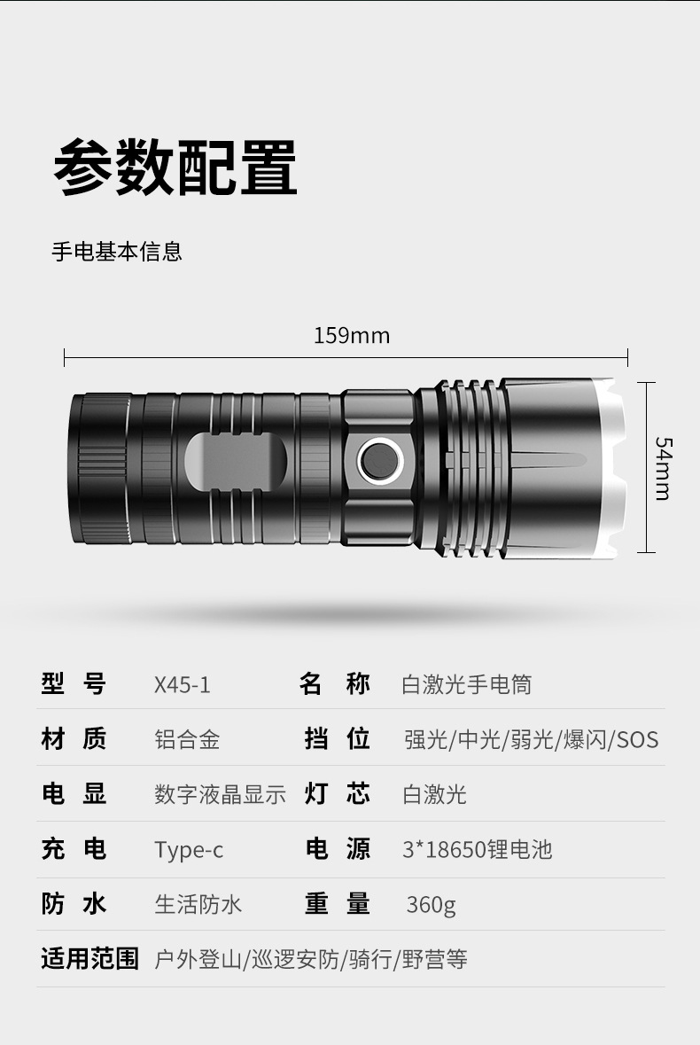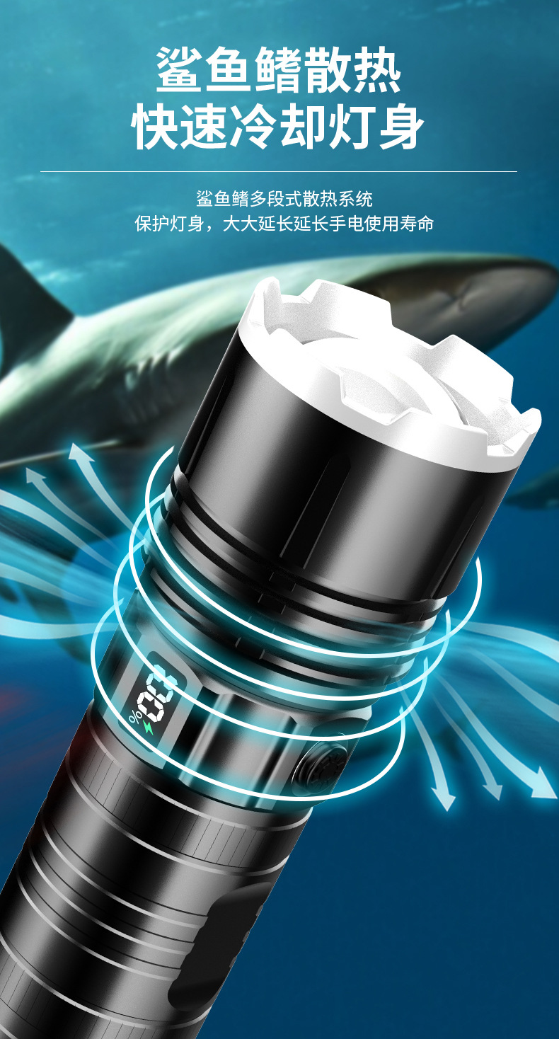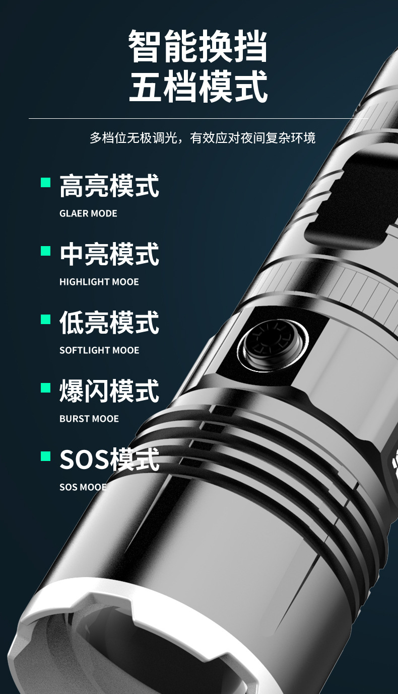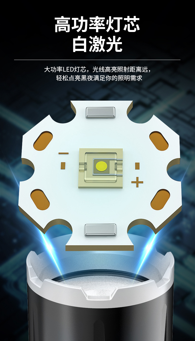 Generación LCD linterna láser tipo C carga rápida de tiro largo zoom telescópico linterna al aire libre linterna de luz fuerte