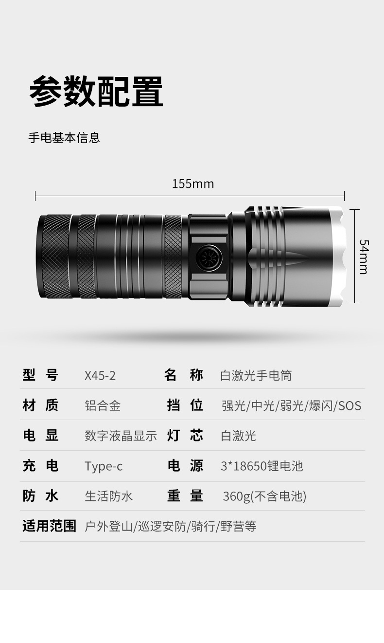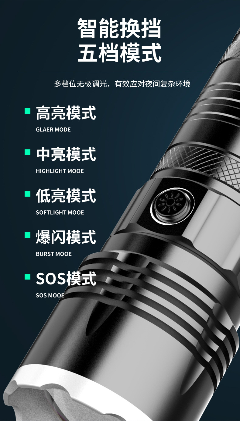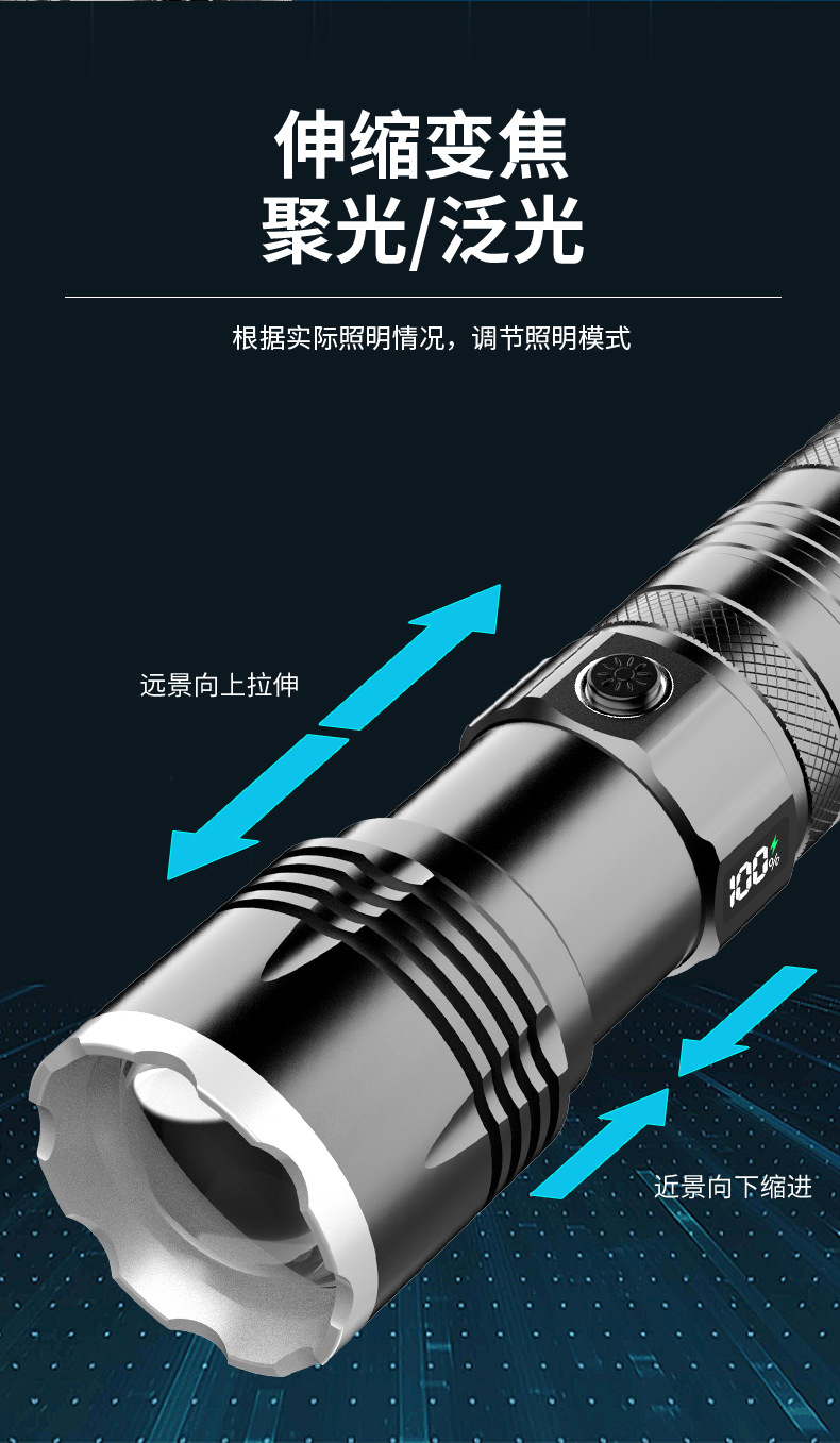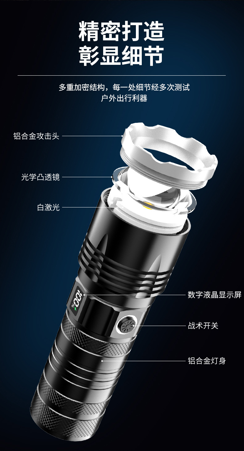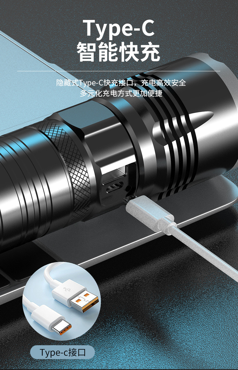 Nueva linterna láser eléctrica de tipo C de carga rápida de largo tiro telescópico zoom linterna acampar al aire libre linterna de luz fuerte