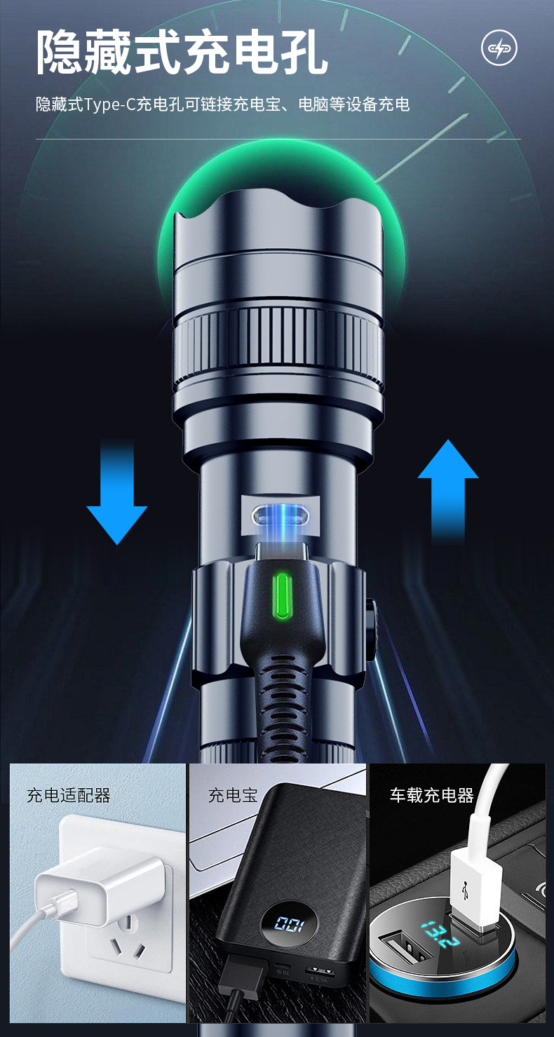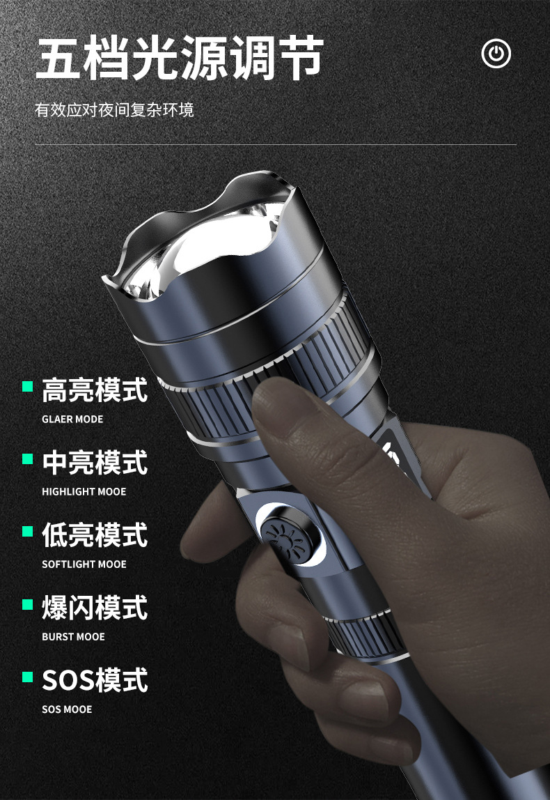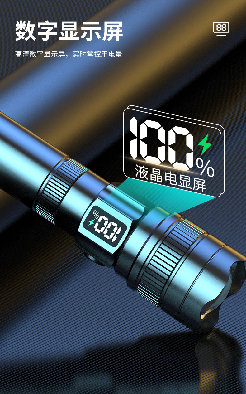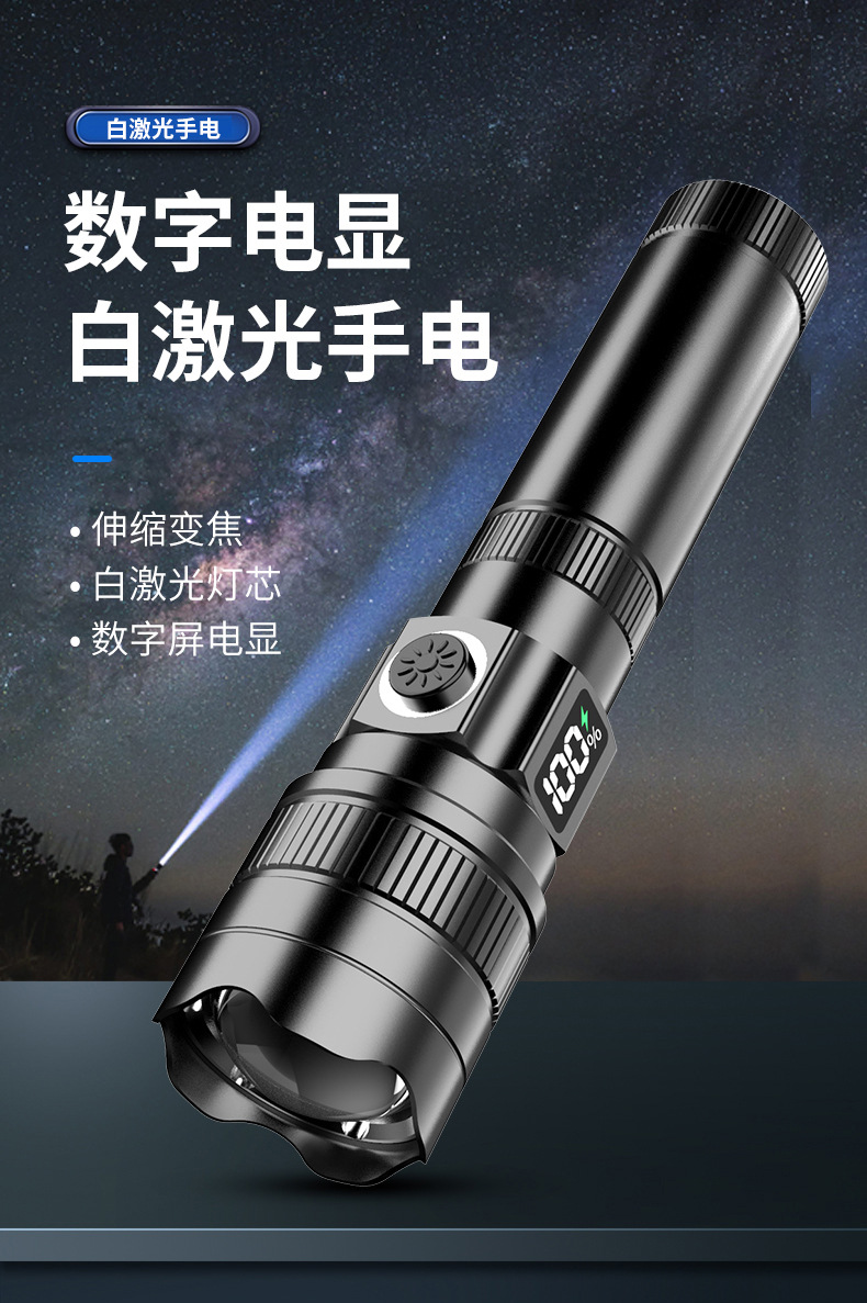 Nuevo LCD digital linterna eléctrica de carga rápida de aleación de aluminio de largo alcance pistola láser portátil linterna de iluminación al aire libre