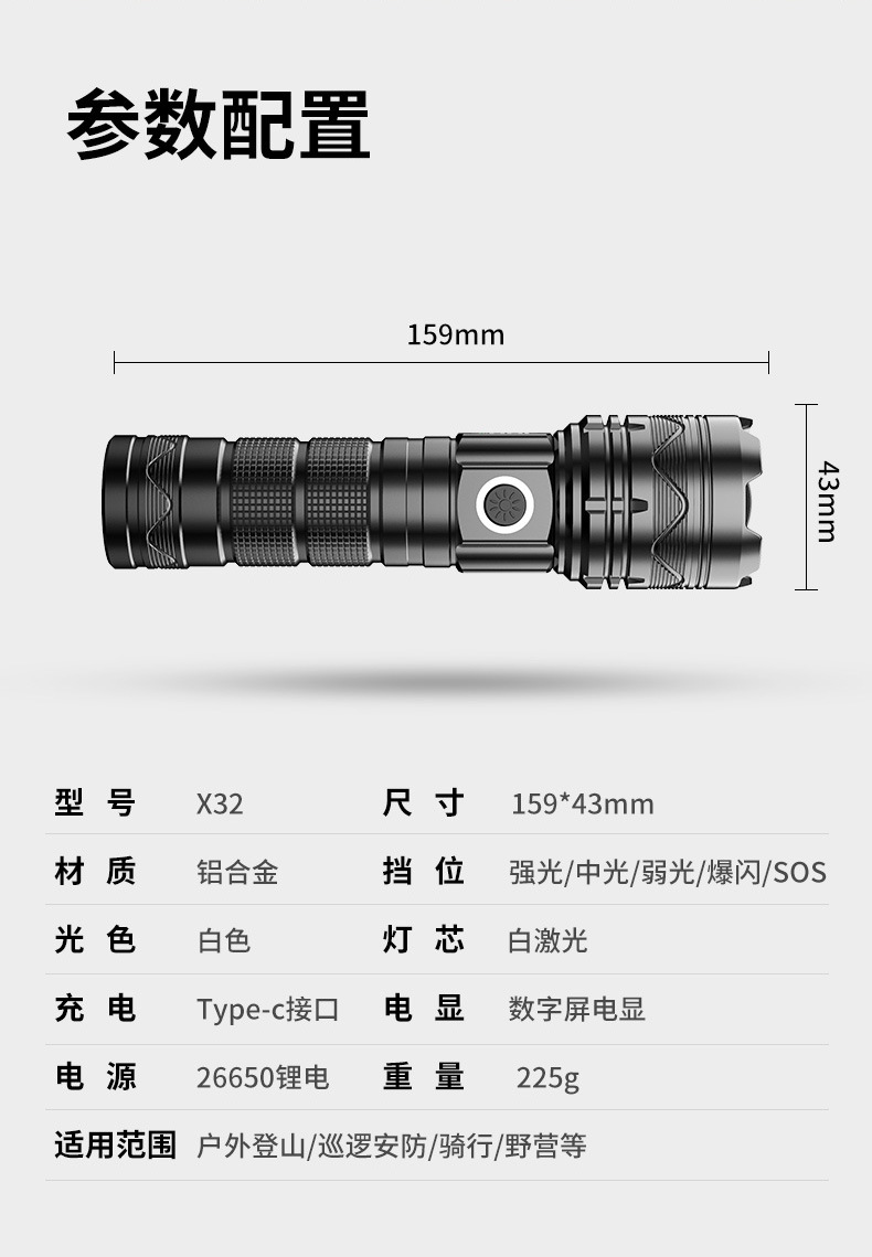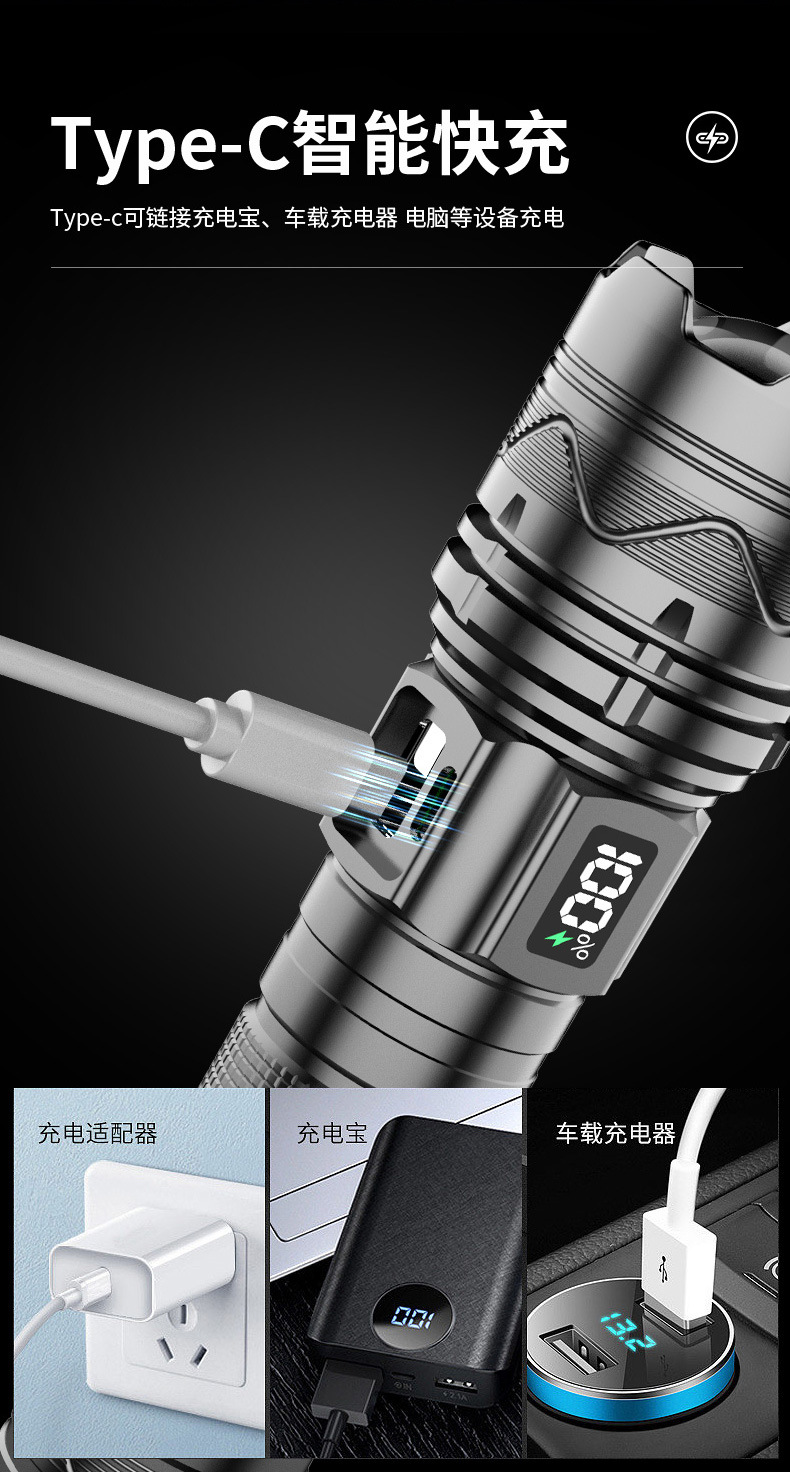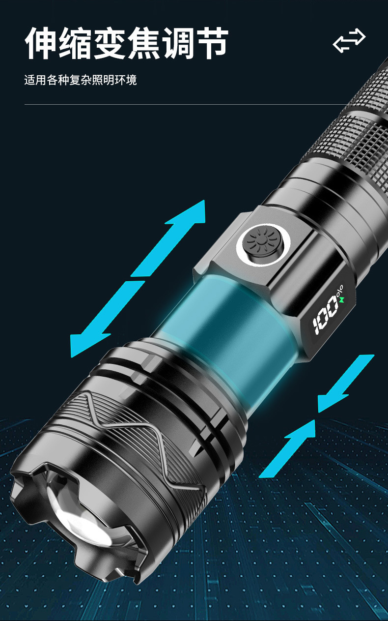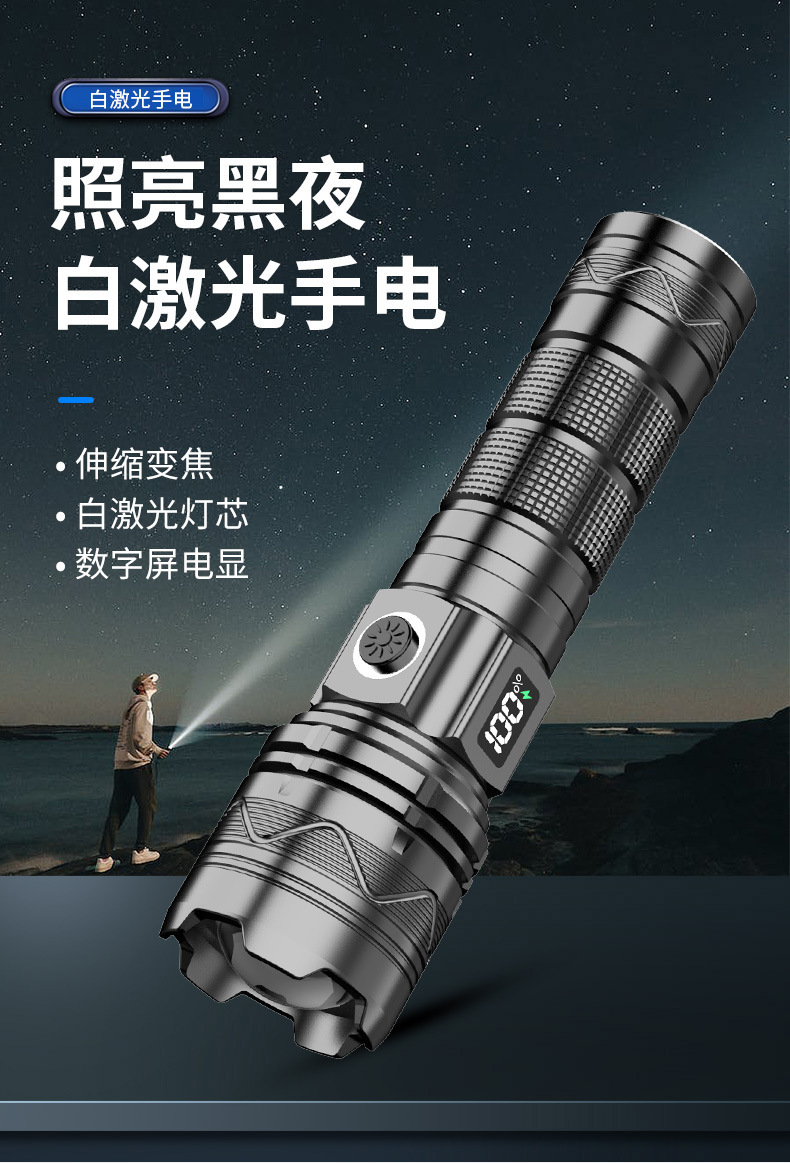 LCD pantalla digital linterna de aleación de aluminio telescópica zoom láser linterna de largo alcance brillante luz fuerte linterna portátil