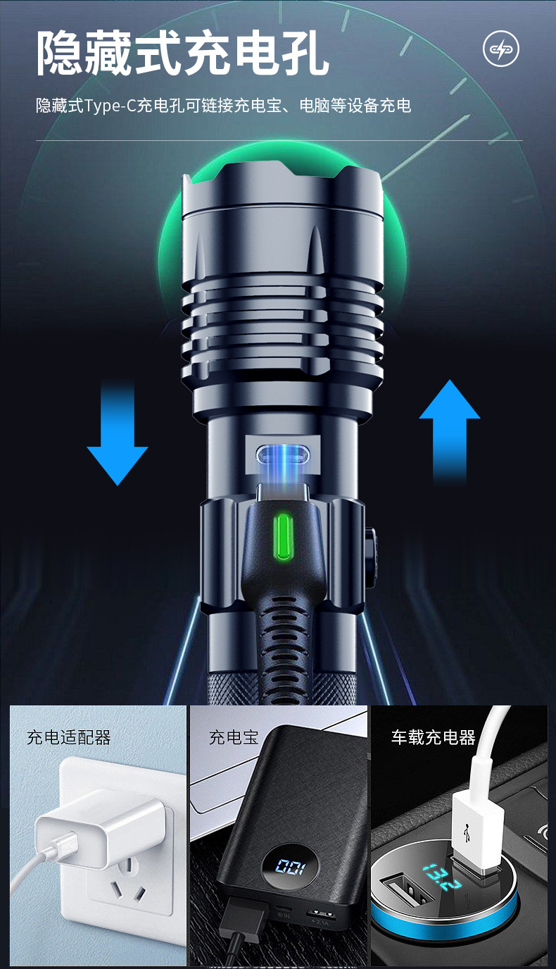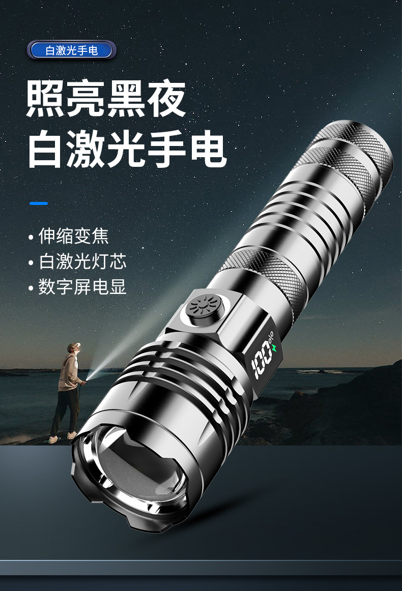 Transfronterizo LCD digital linterna eléctrica de carga rápida aleación de aluminio de largo alcance pistola láser portátil linterna de iluminación al aire libre lote