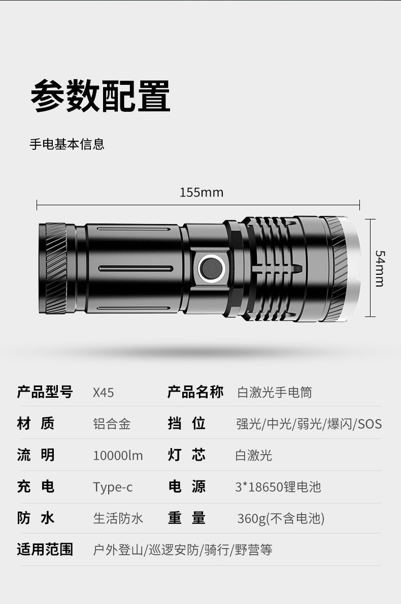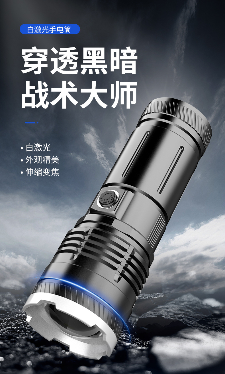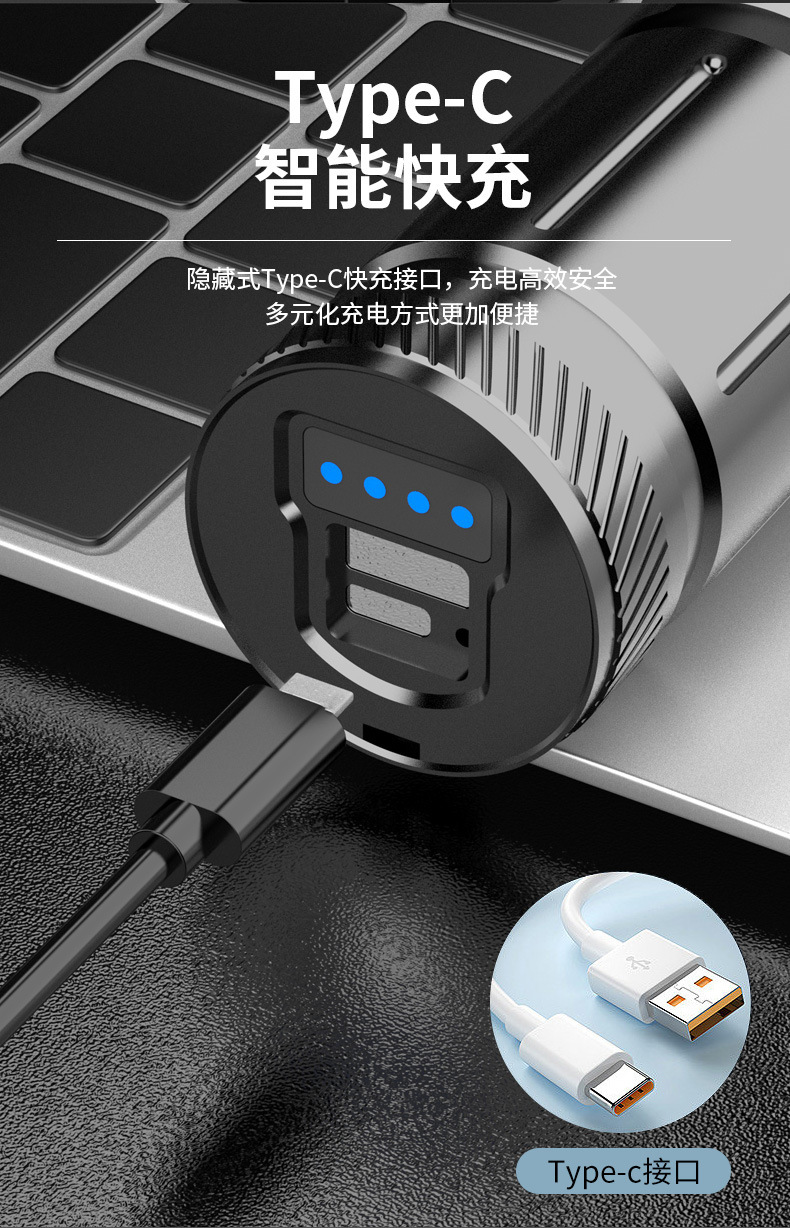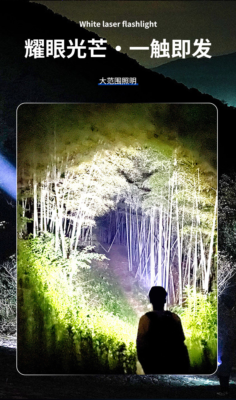 Nueva linterna láser al aire libre camping luz fuerte iluminación linterna tipo-C carga rápida tiro largo telescópica zoom linterna