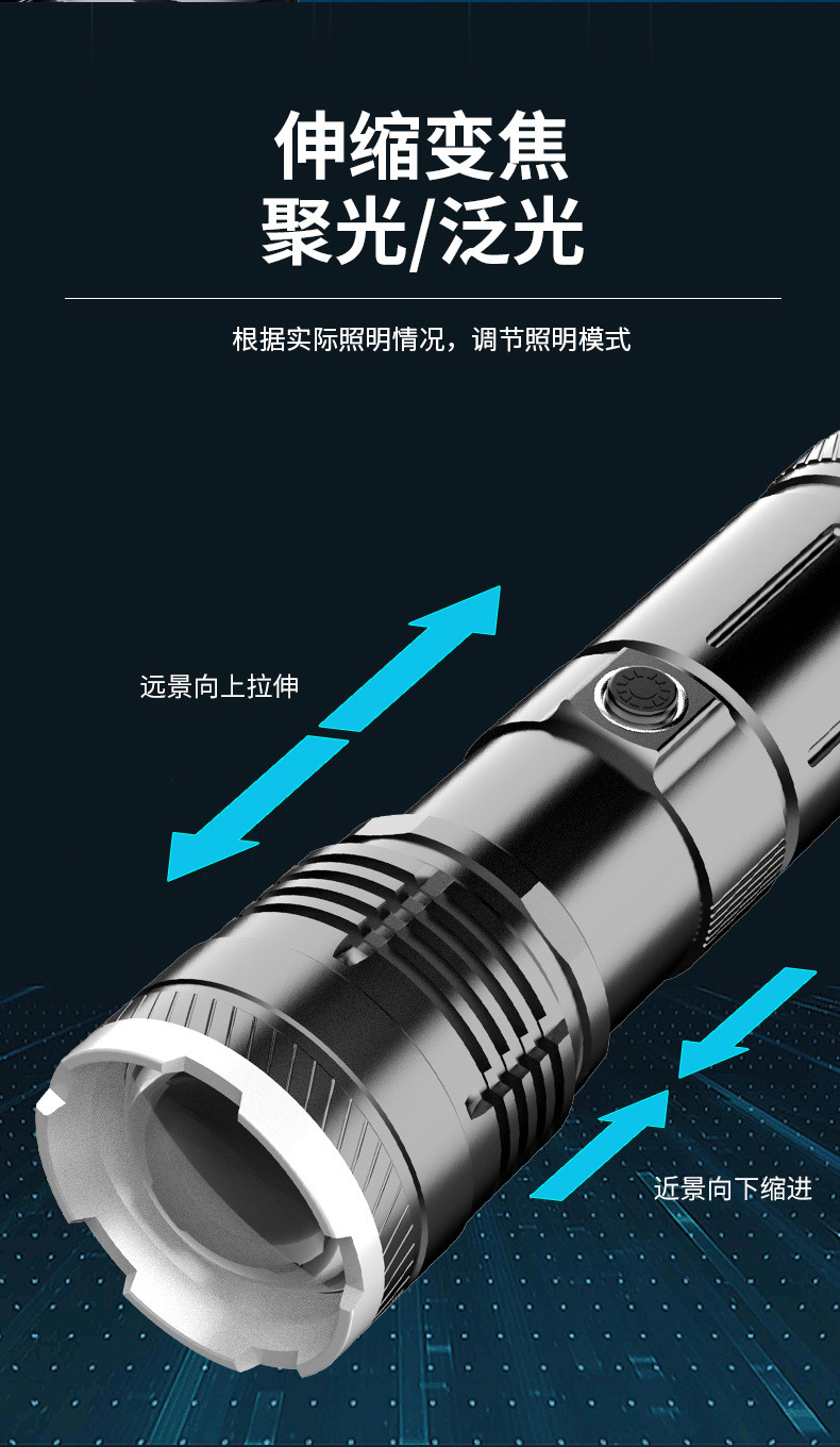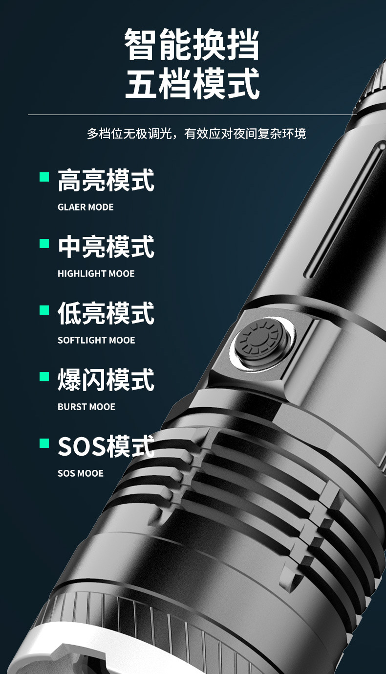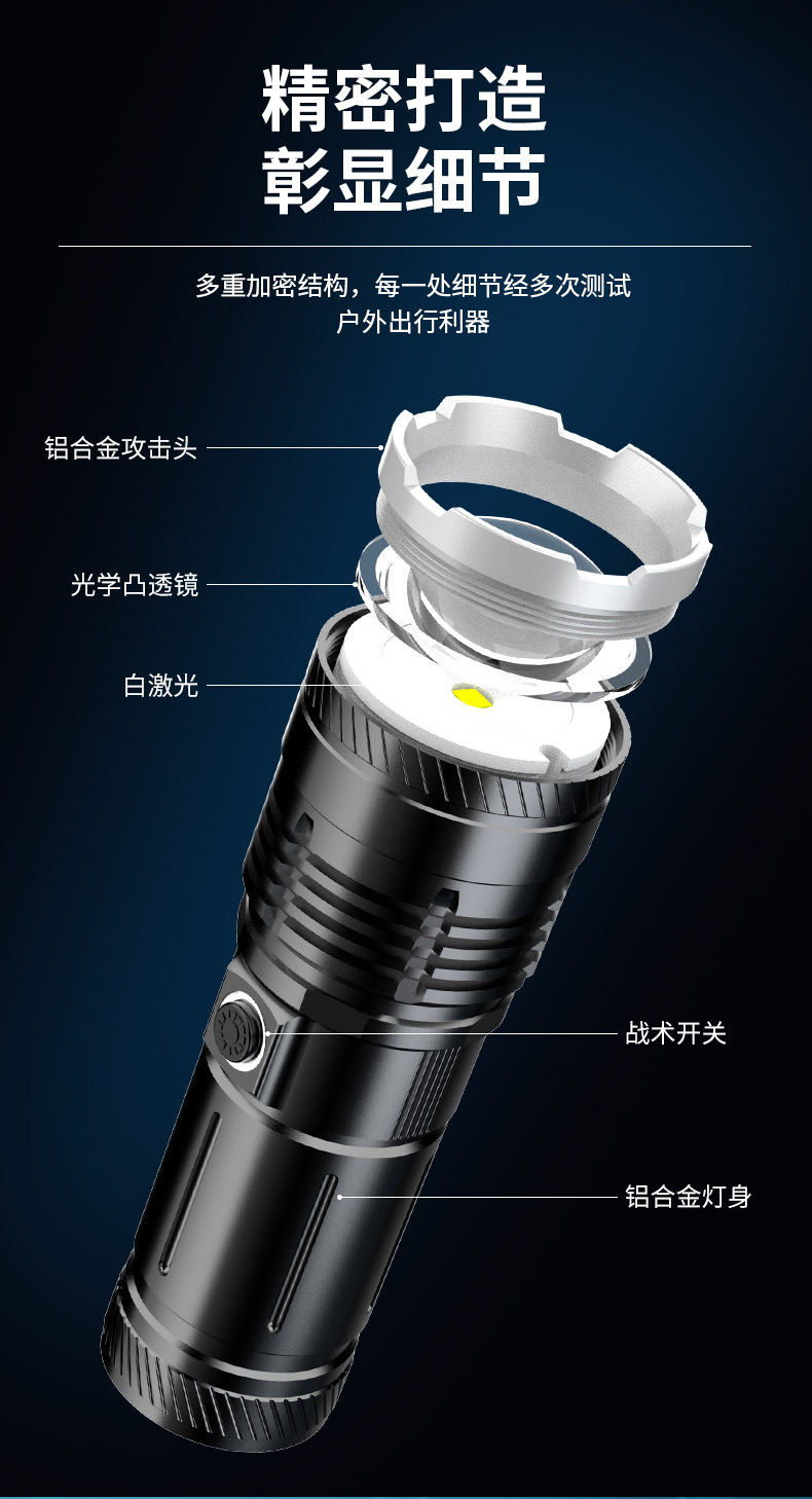 Nueva linterna láser al aire libre camping luz fuerte iluminación linterna tipo-C carga rápida tiro largo telescópica zoom linterna